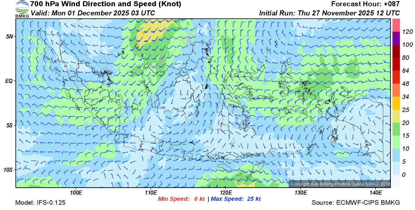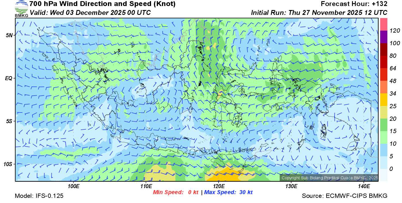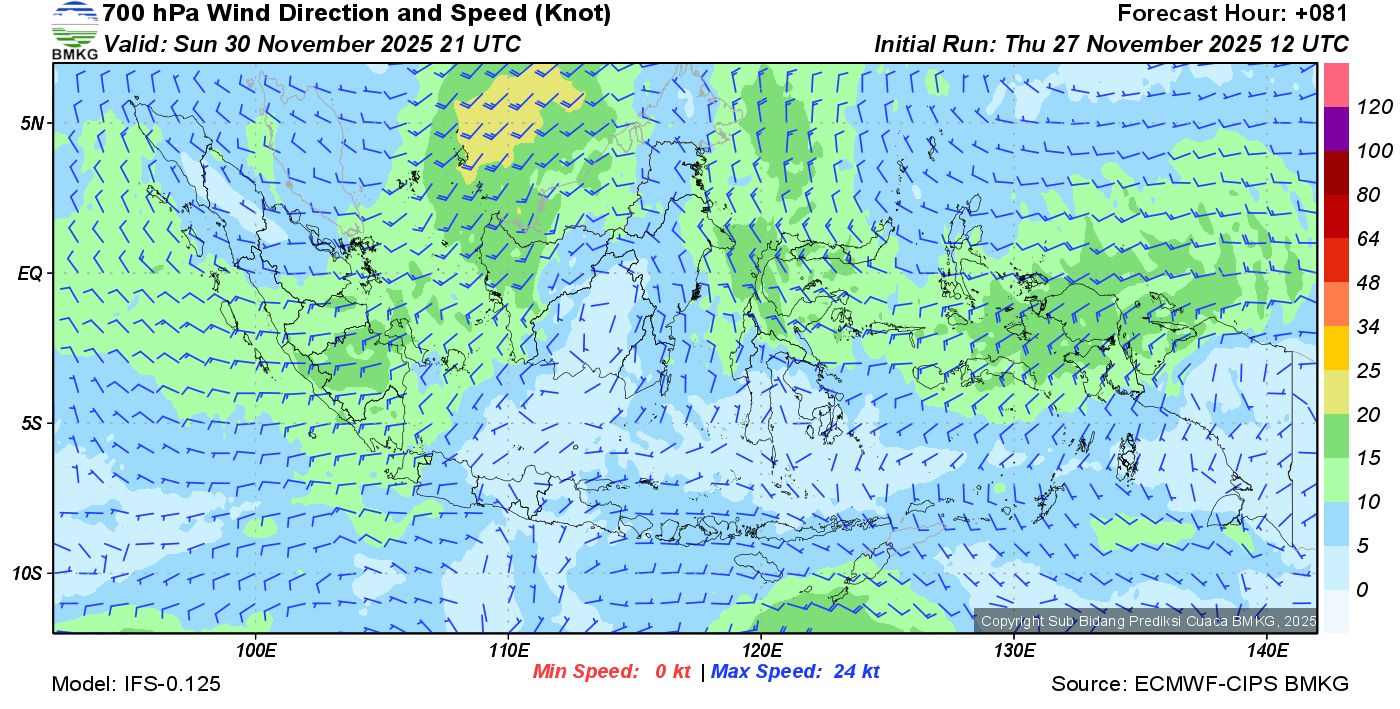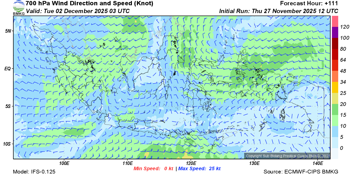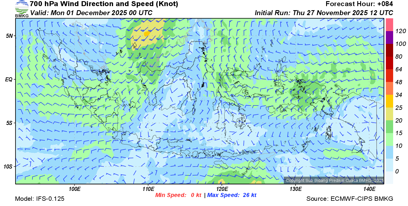 Prakiraan Angin Lapisan 700 Gunung Awu