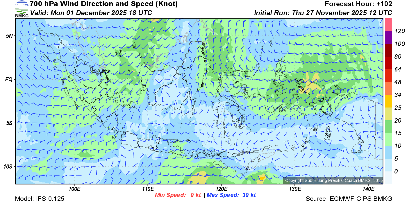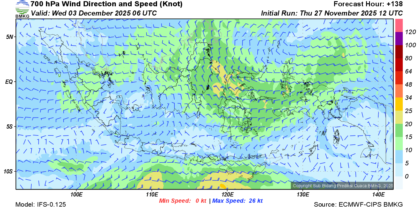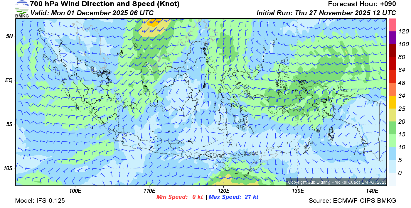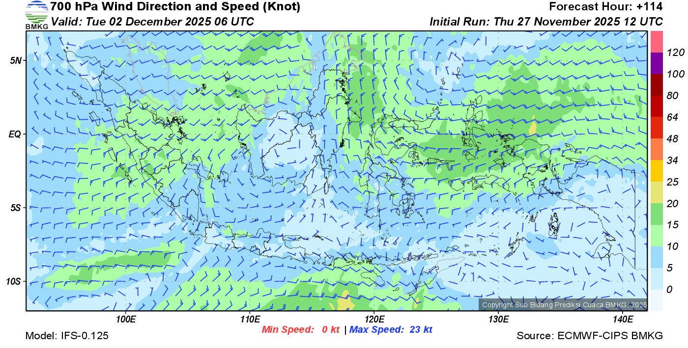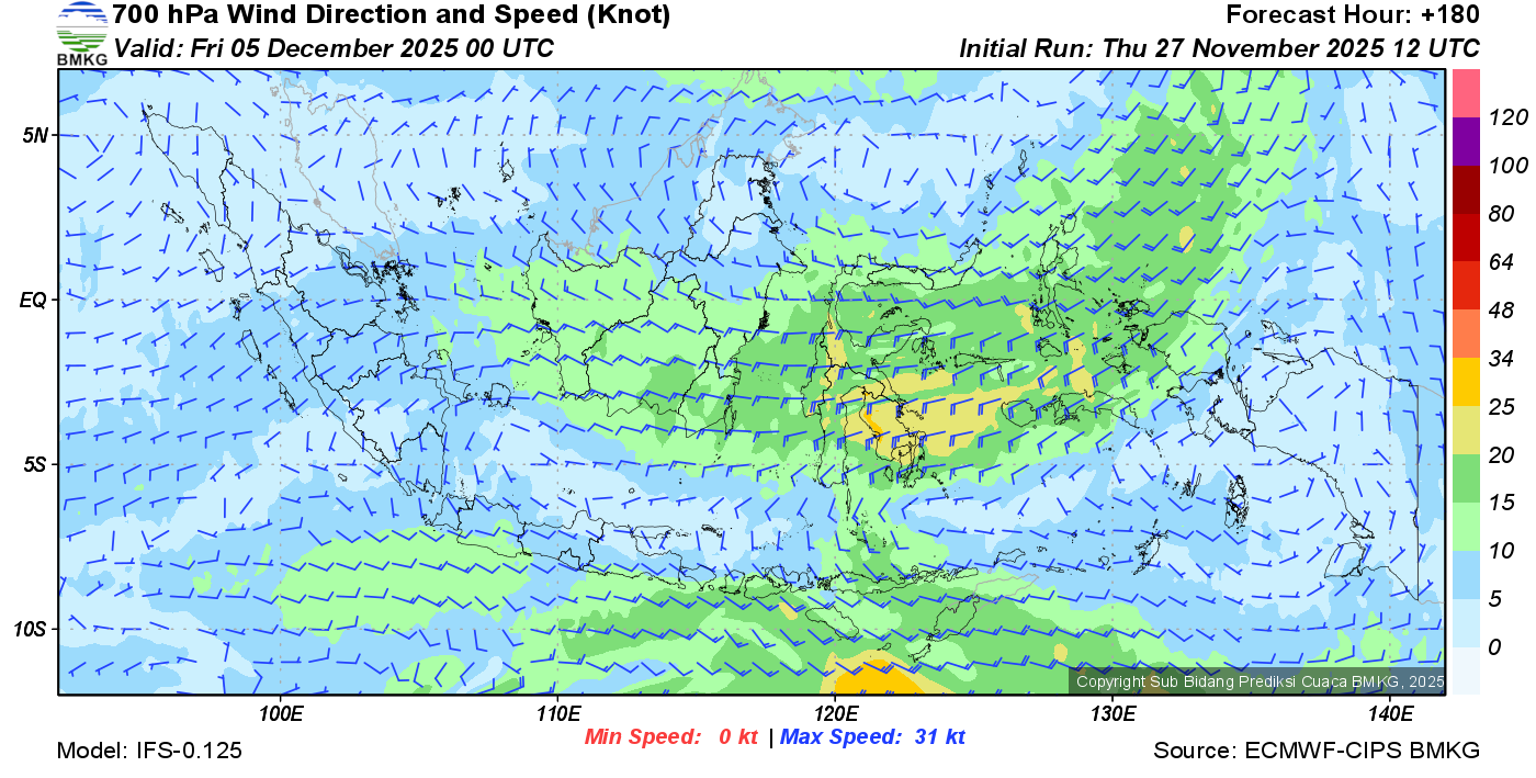 Prakiraan Angin Lapisan 700 Gunung Awu