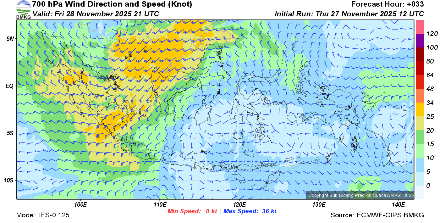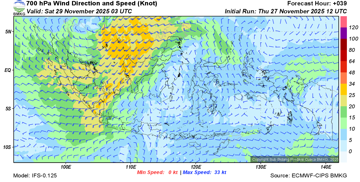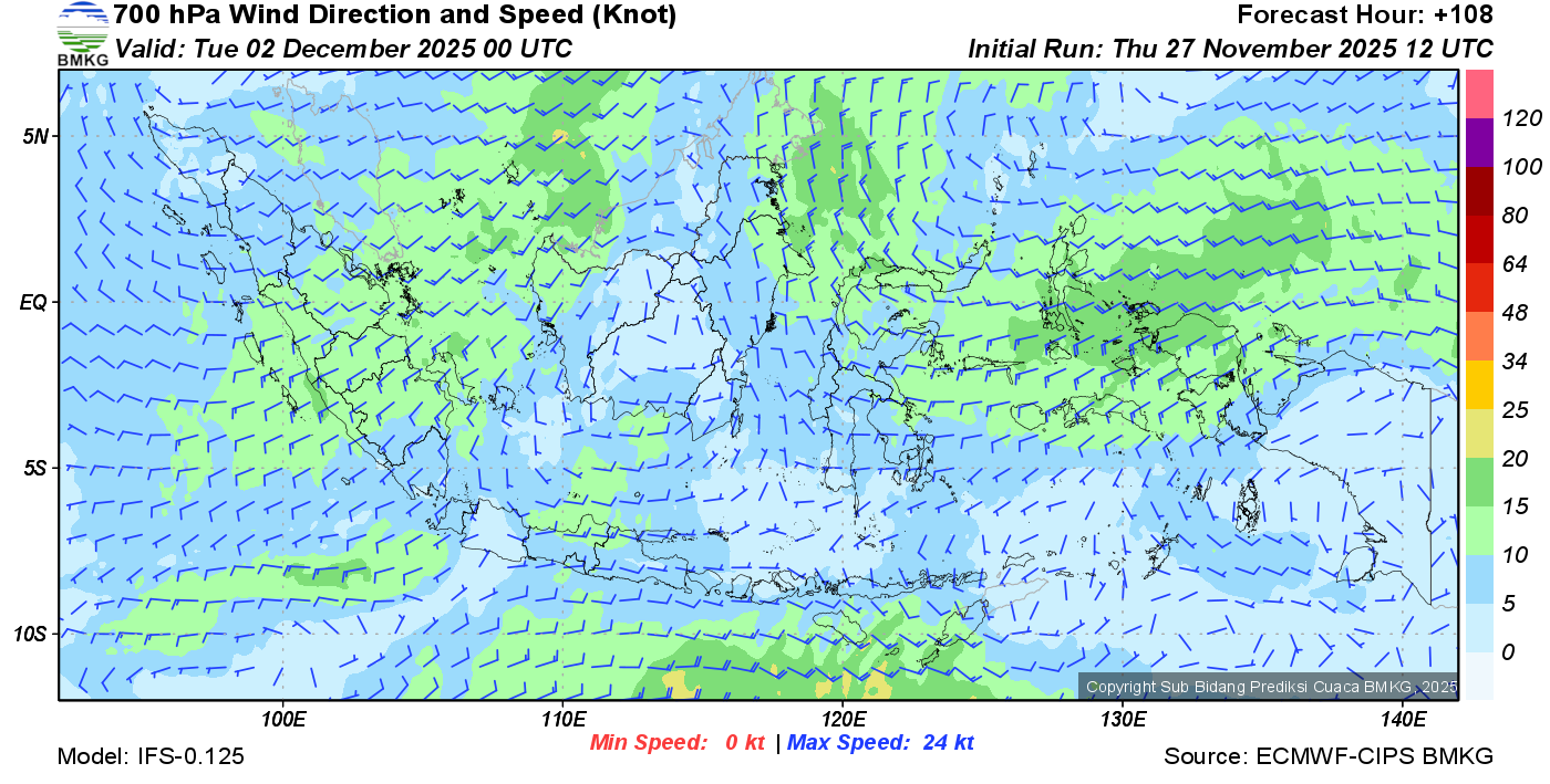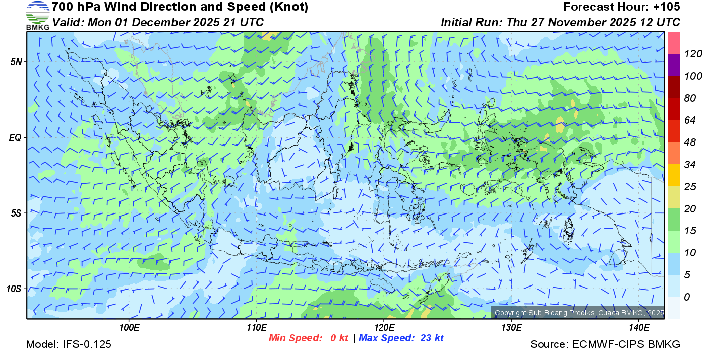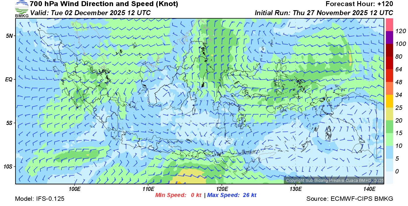 Prakiraan Angin Lapisan 700 Gunung Awu