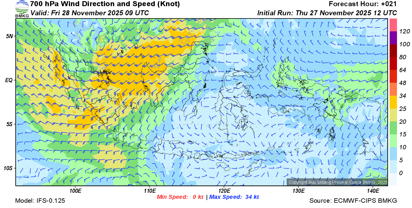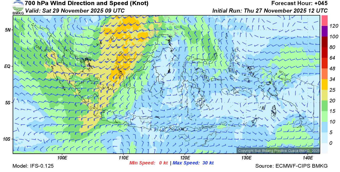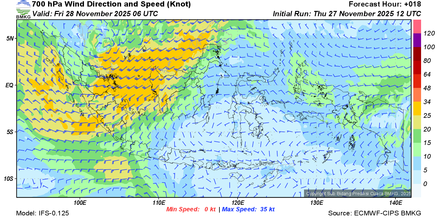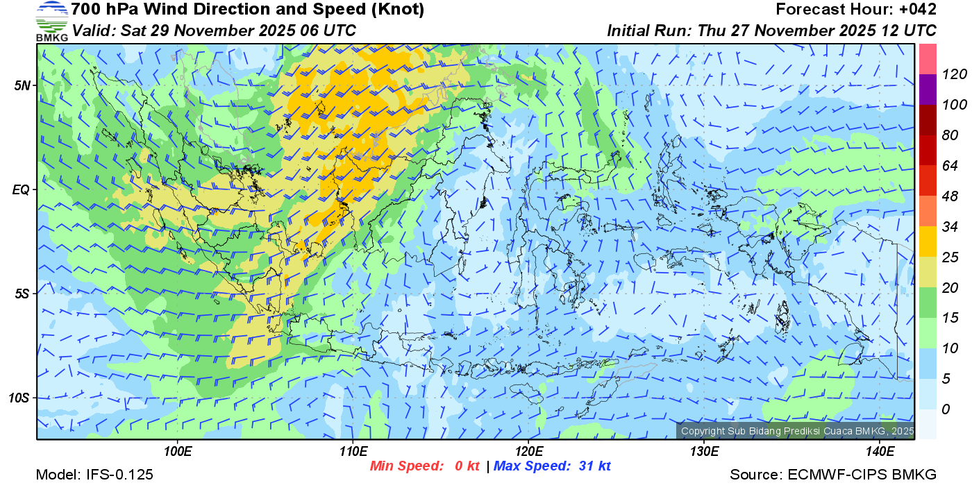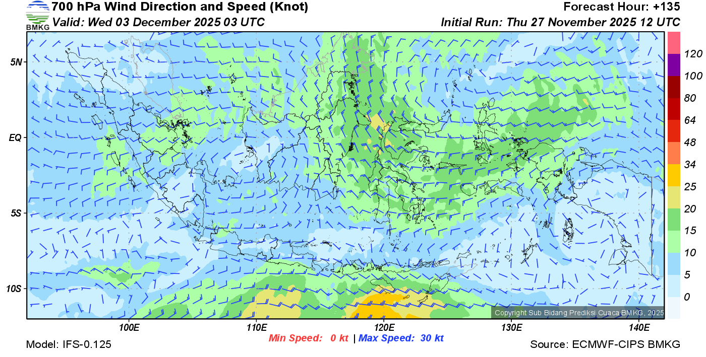 Prakiraan Angin Lapisan 700 Gunung Awu