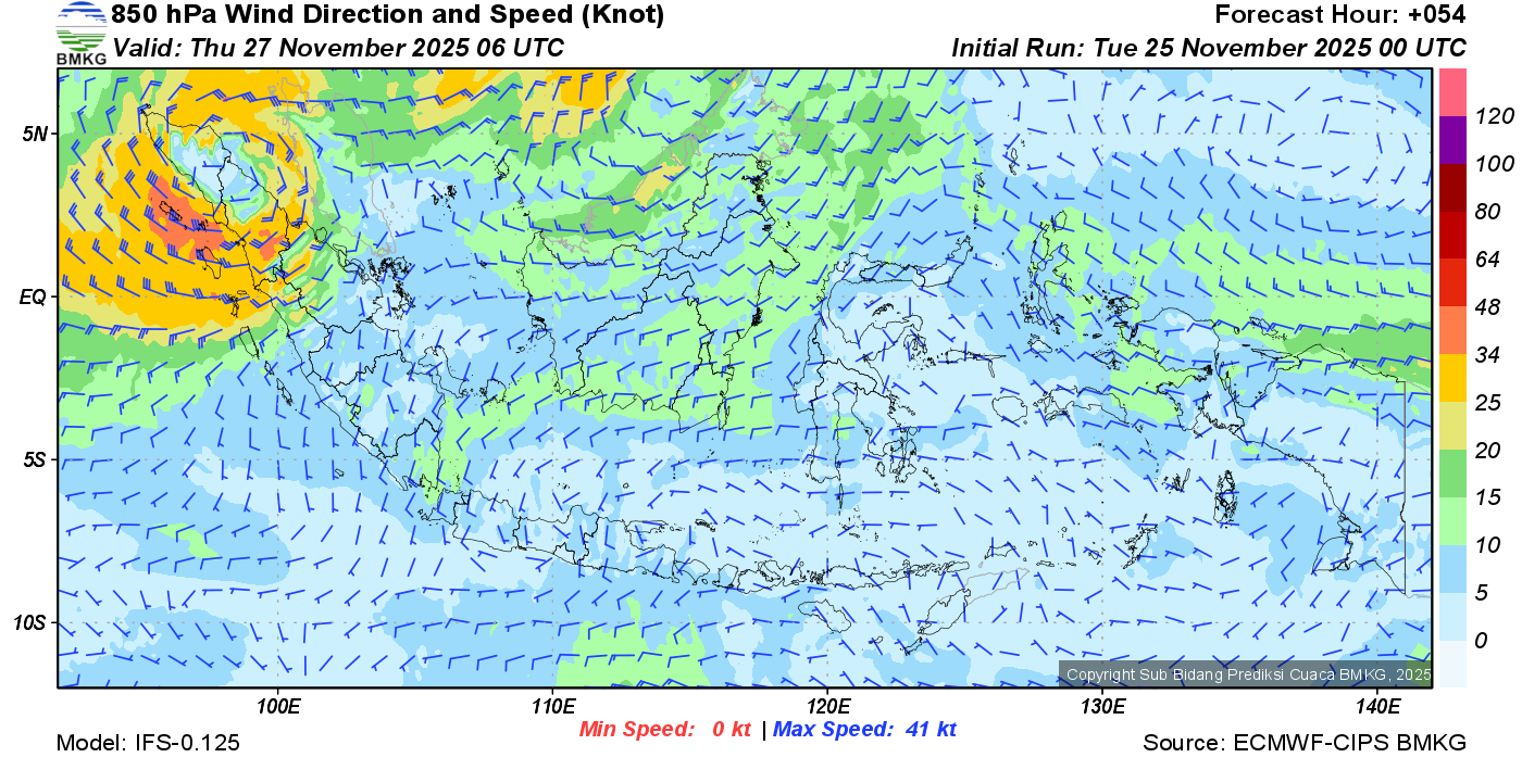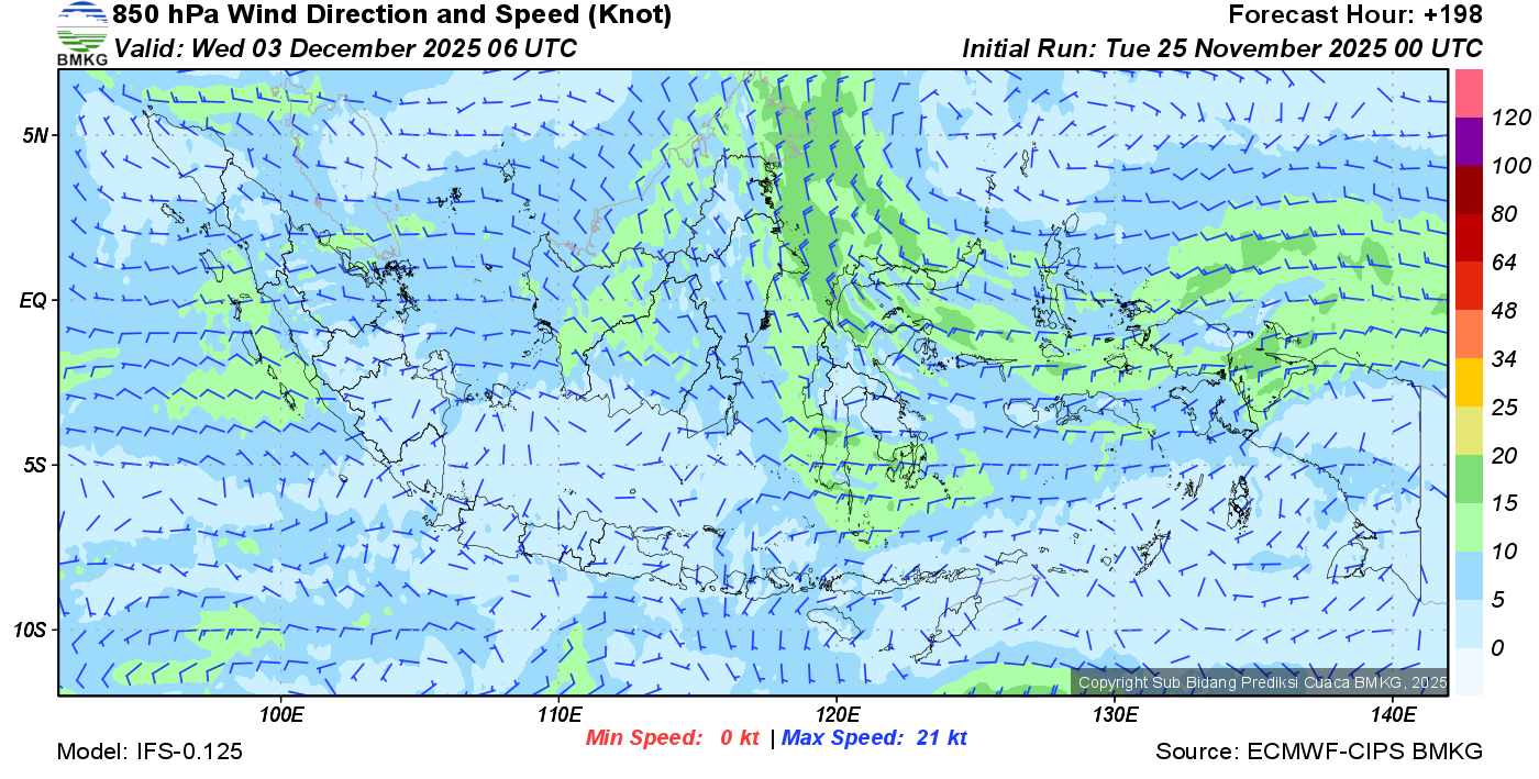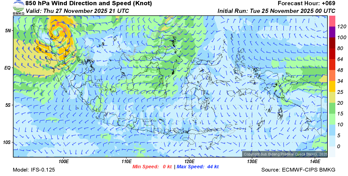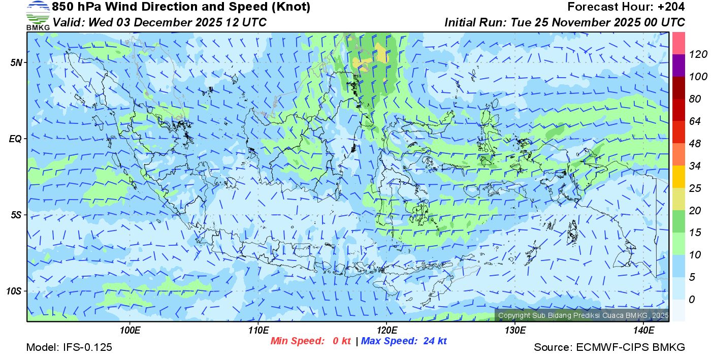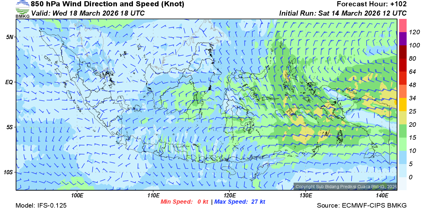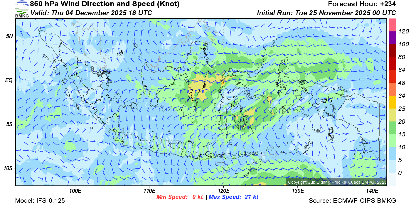 Prakiraan Angin Lapisan 850 Gunung Awu