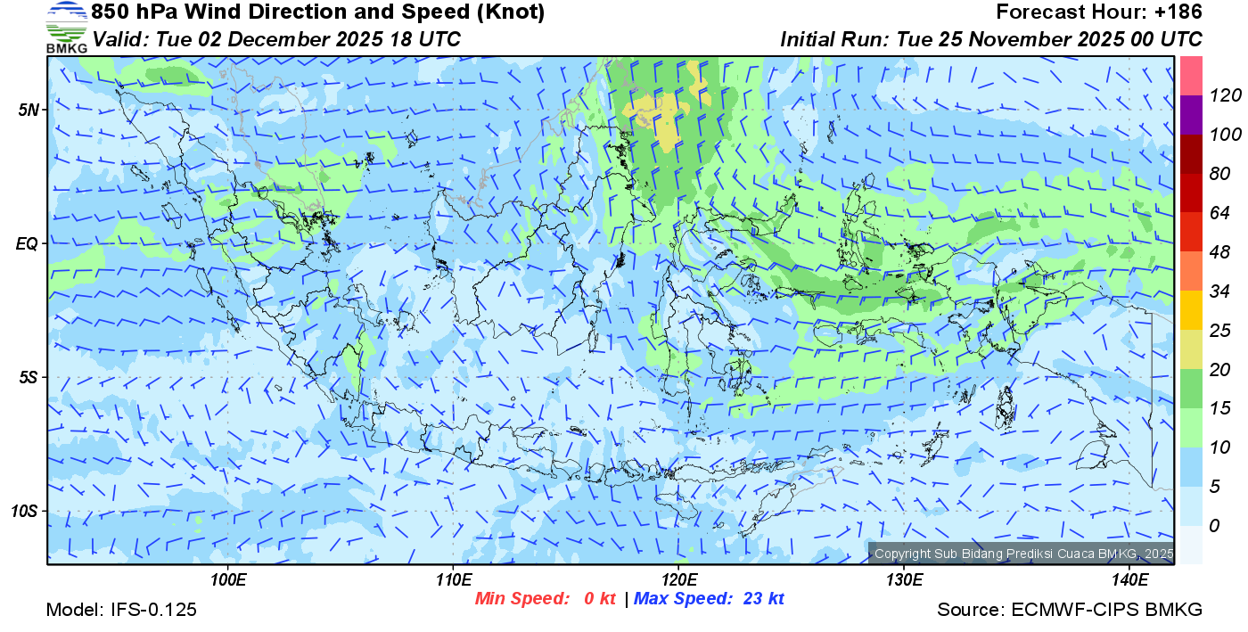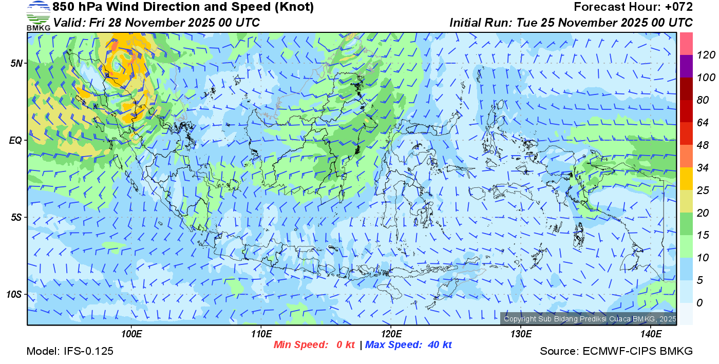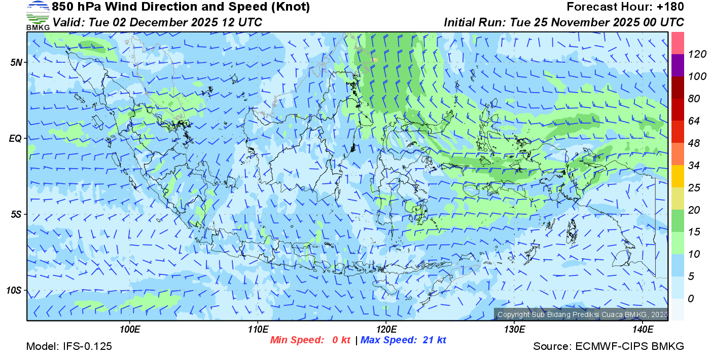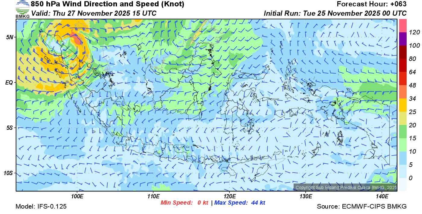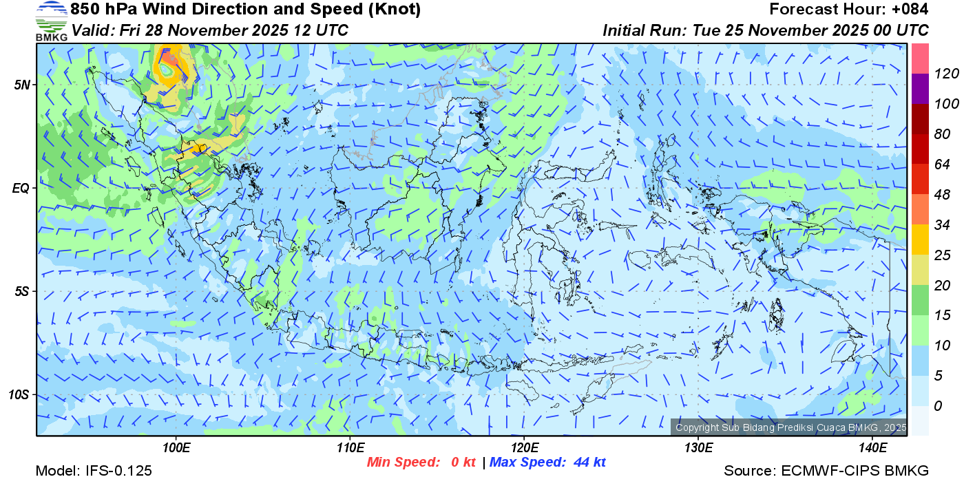 Prakiraan Angin Lapisan 850 Gunung Awu