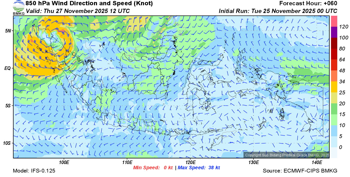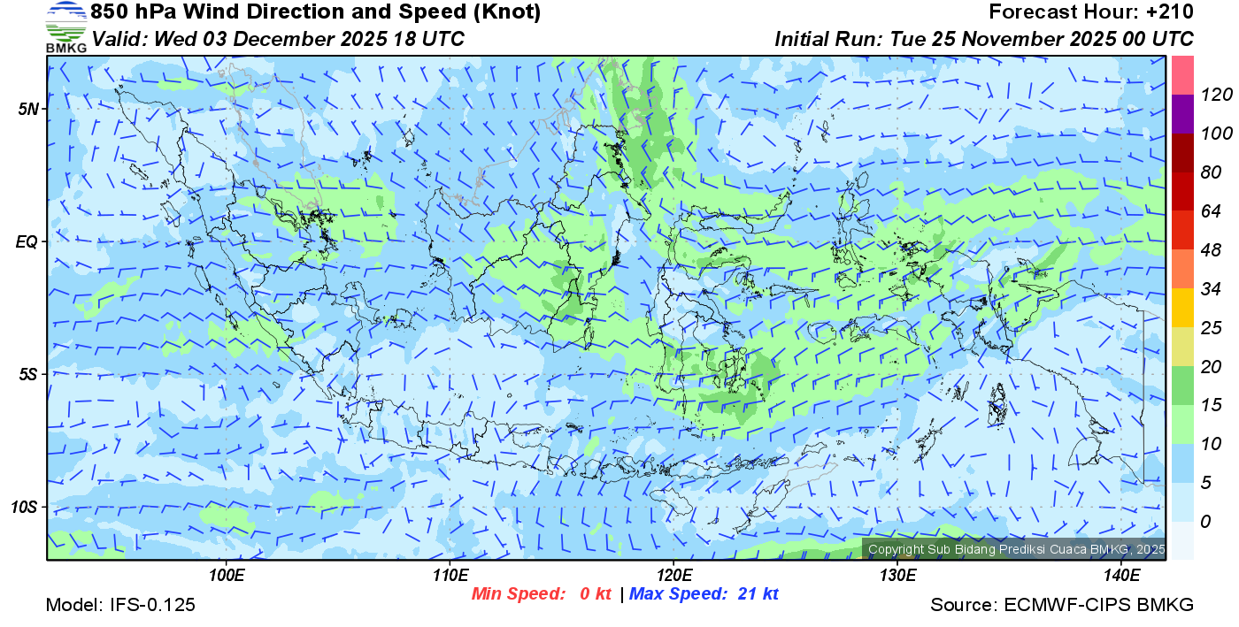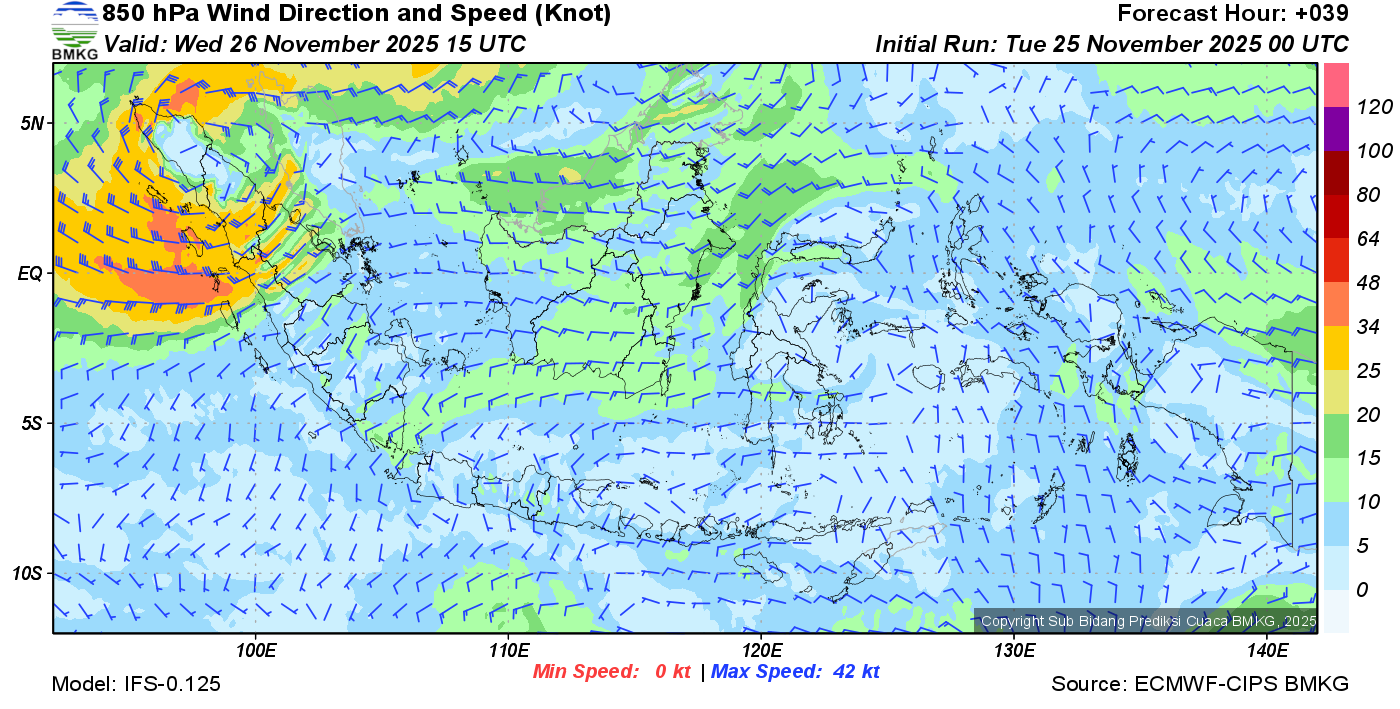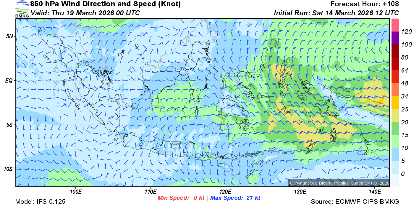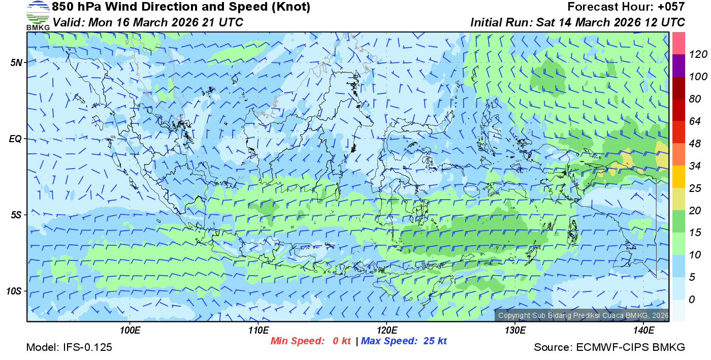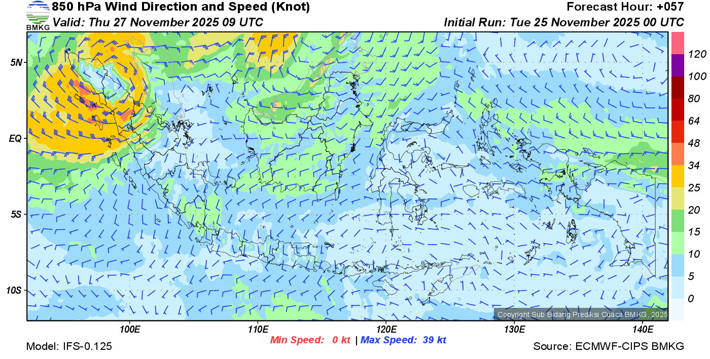 Prakiraan Angin Lapisan 850 Gunung Awu