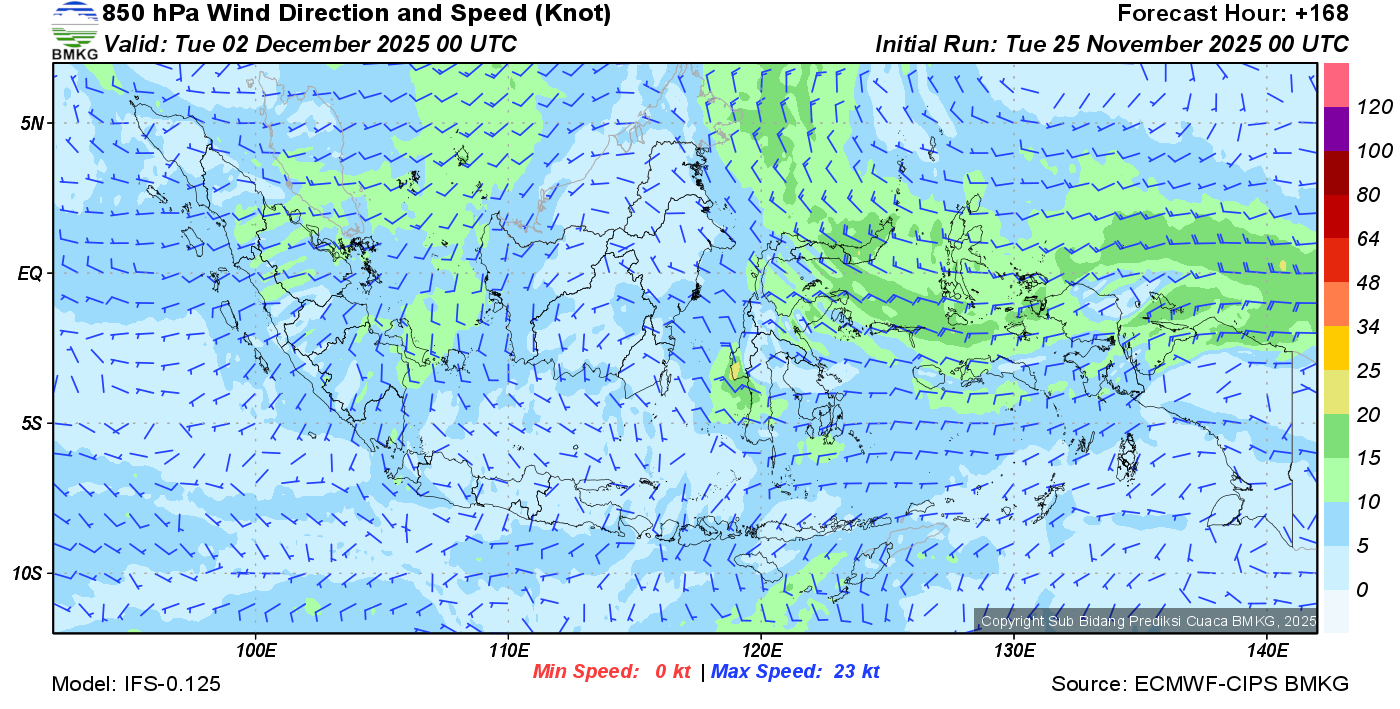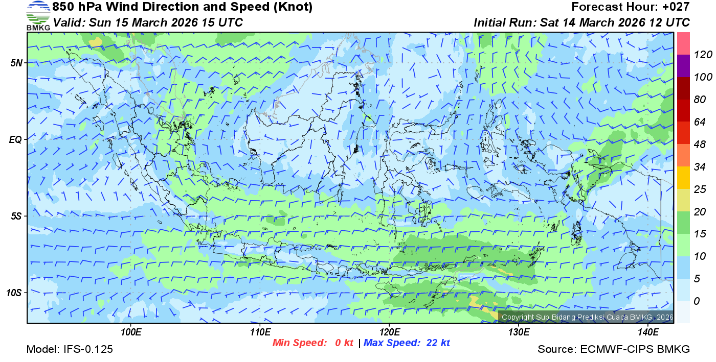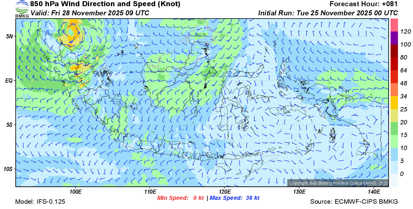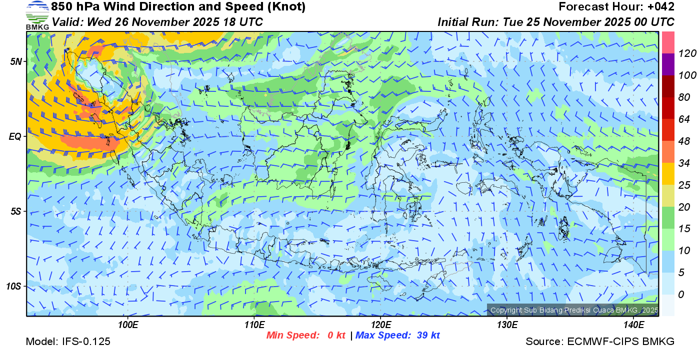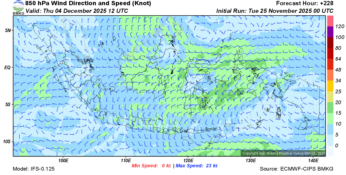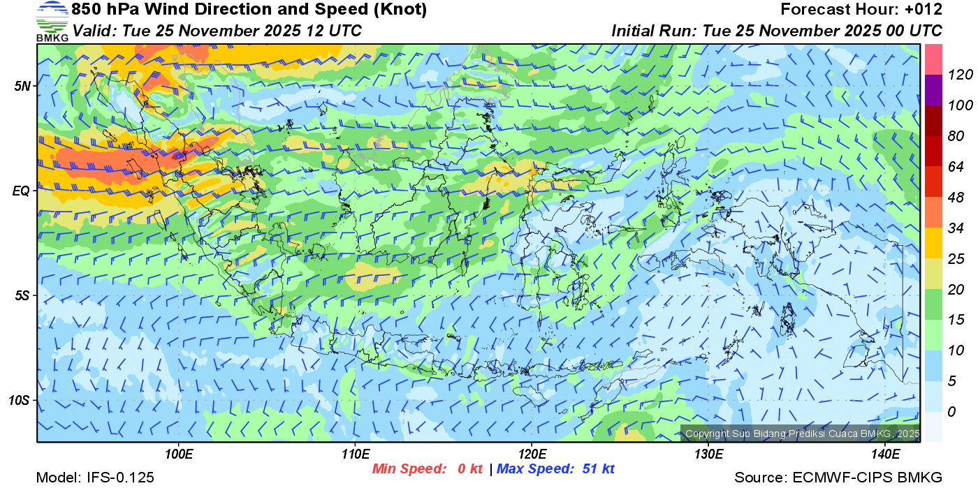 Prakiraan Angin Lapisan 850 Gunung Awu
