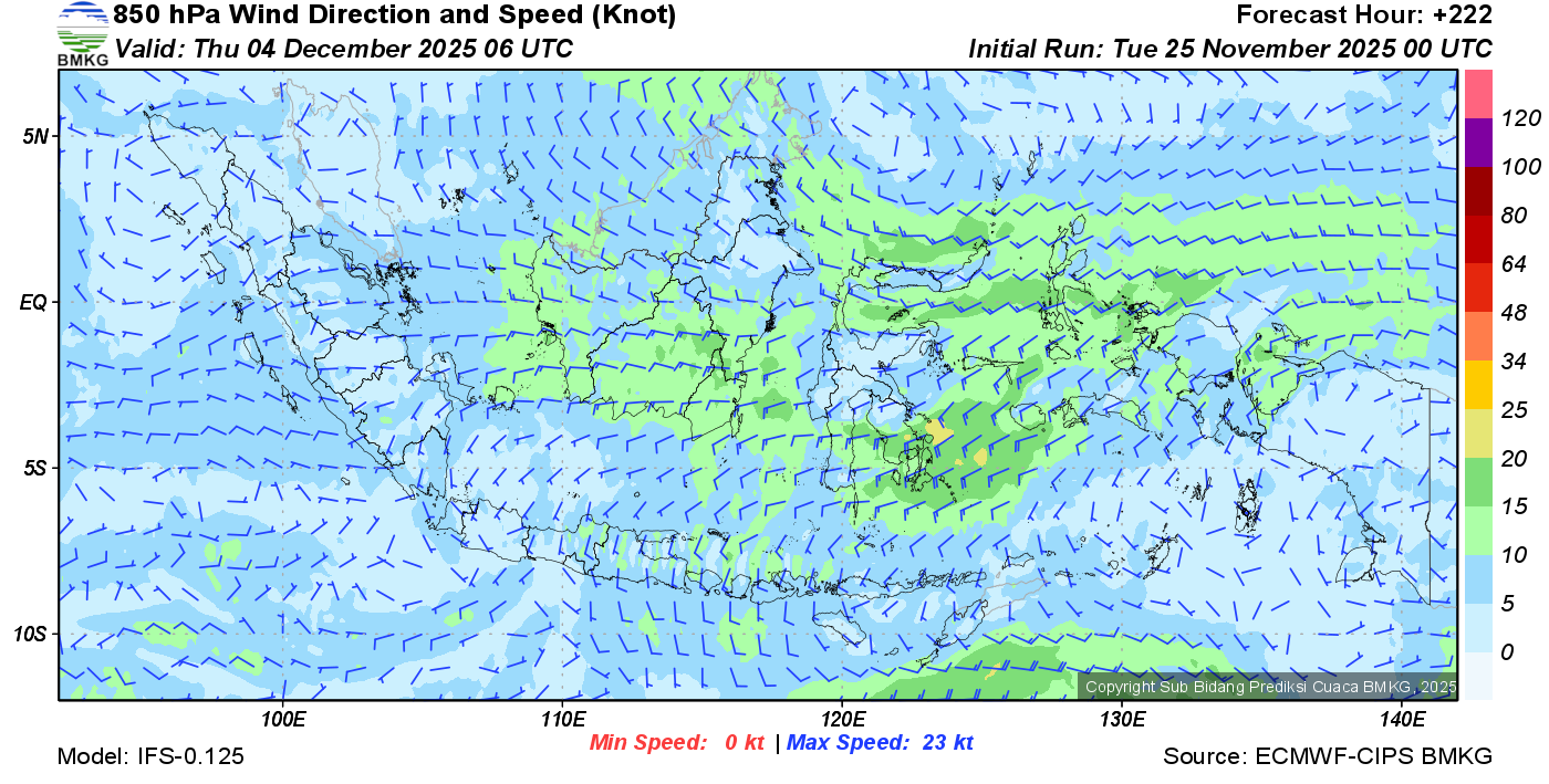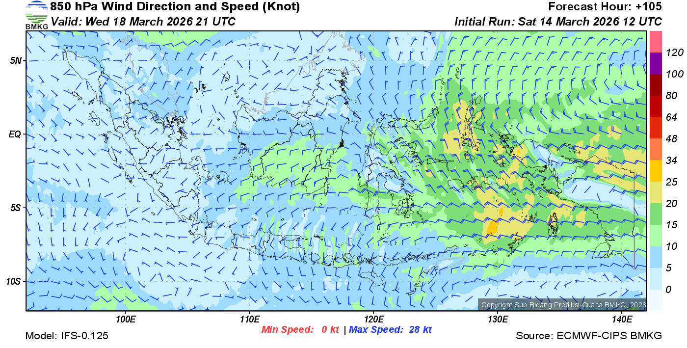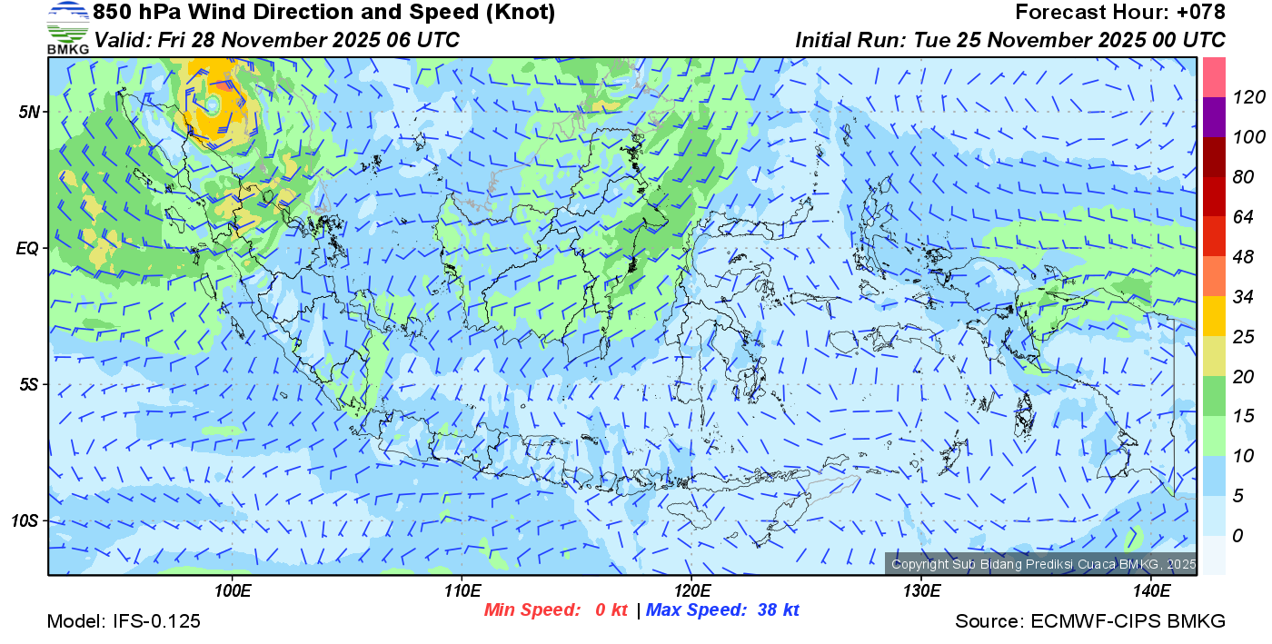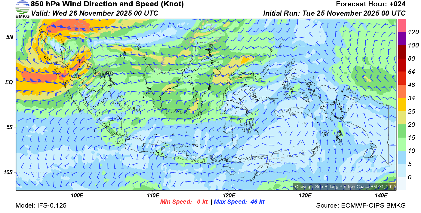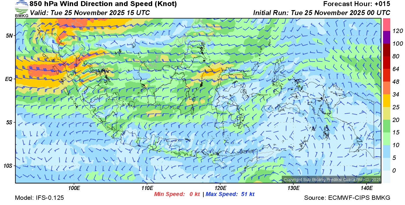 Prakiraan Angin Lapisan 850 Gunung Awu