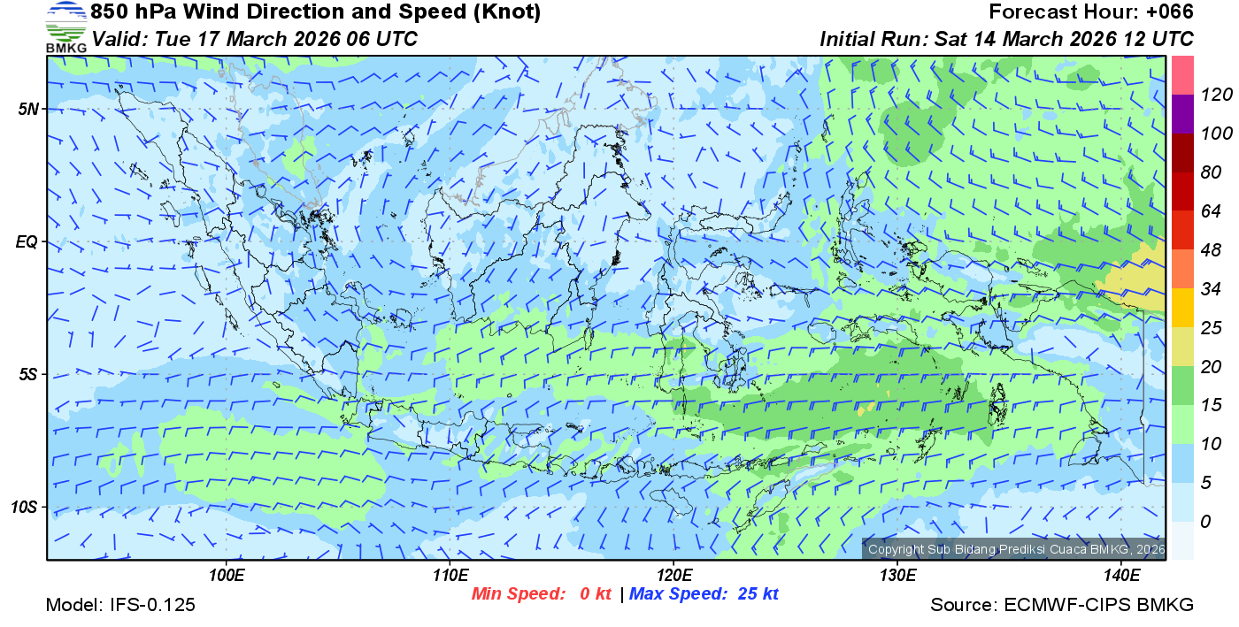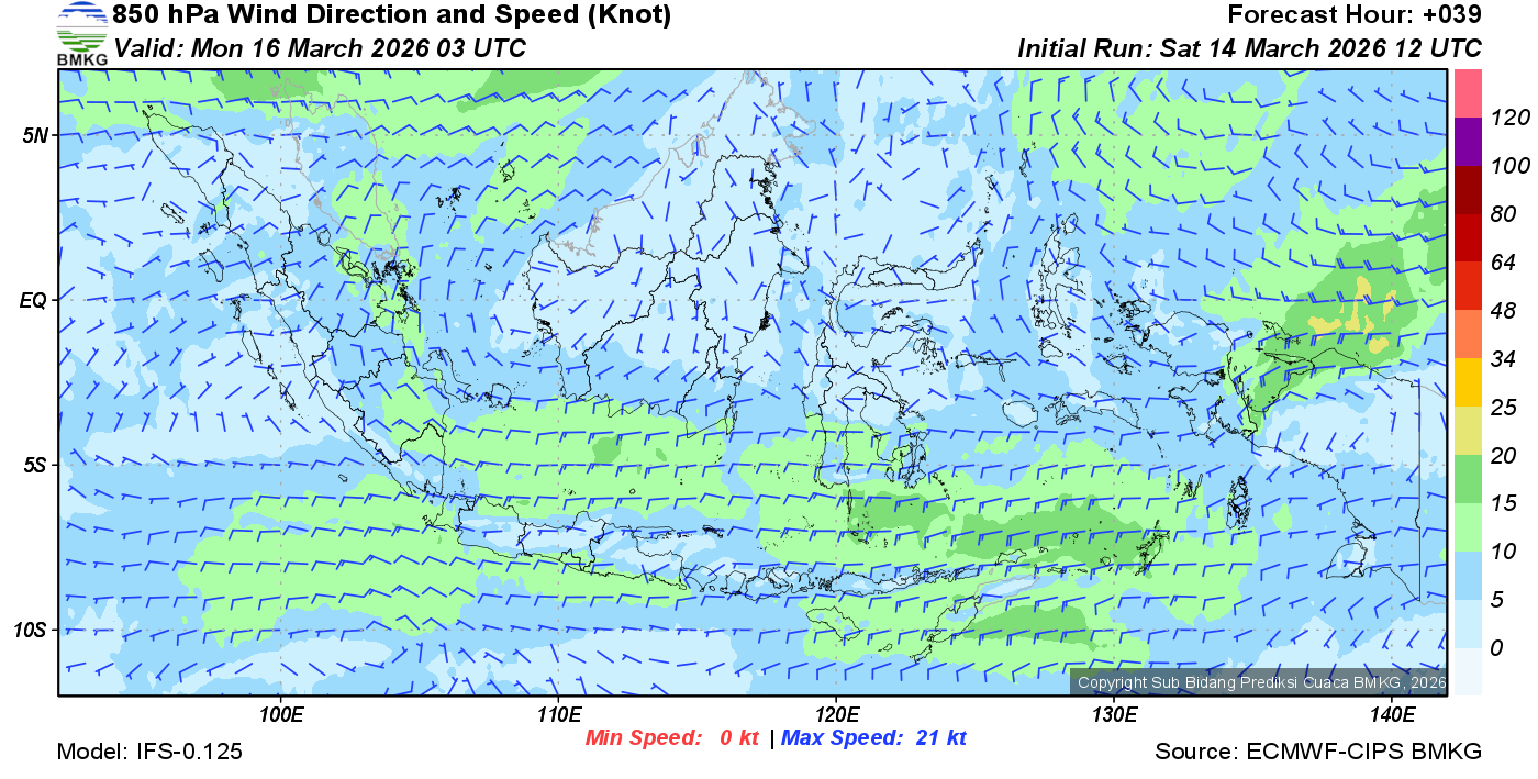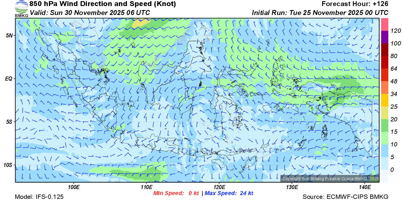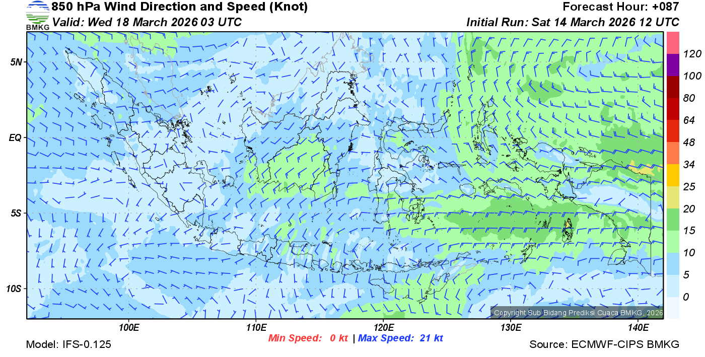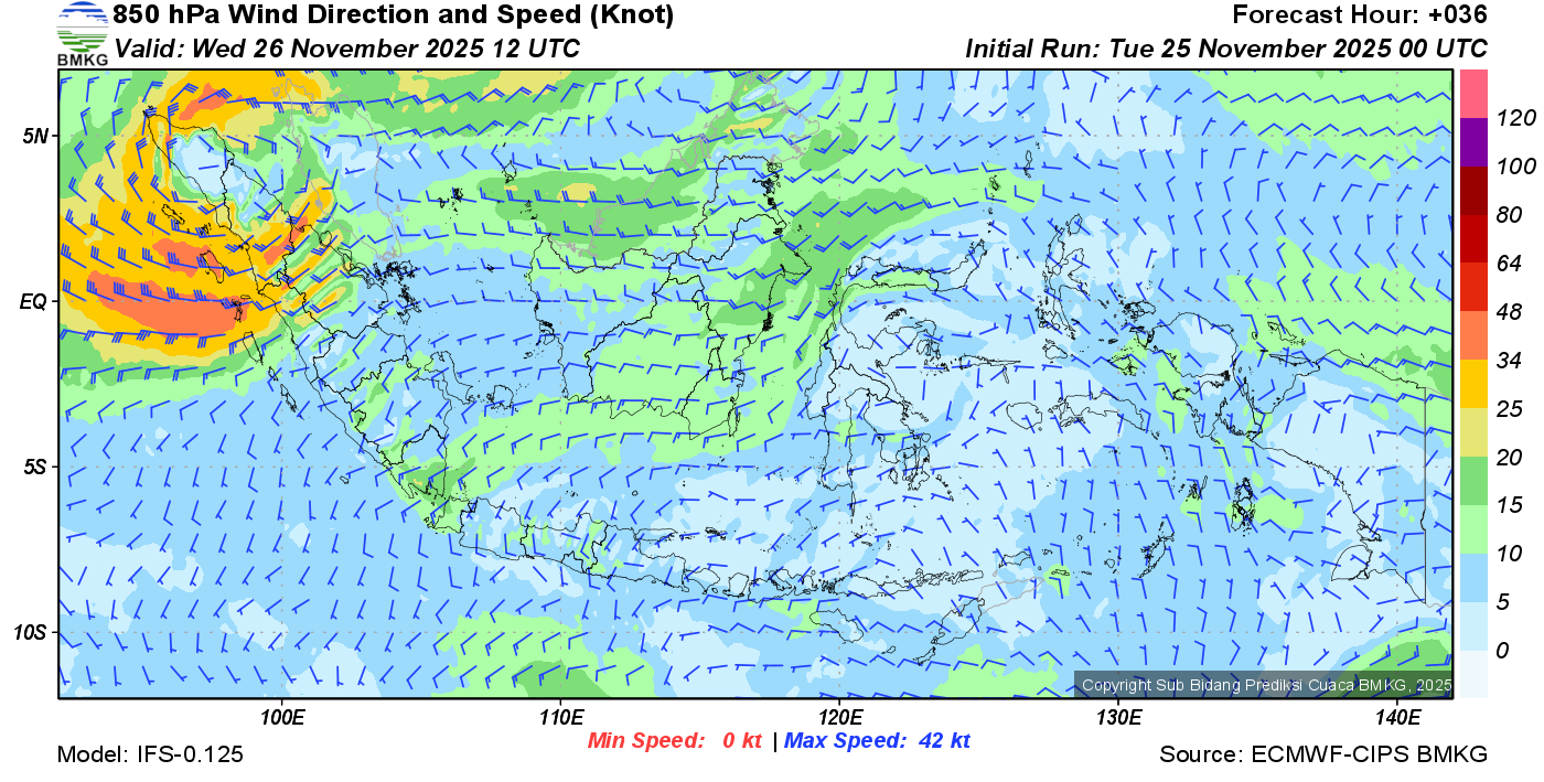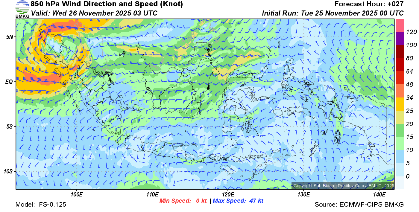 Prakiraan Angin Lapisan 850 Gunung Awu