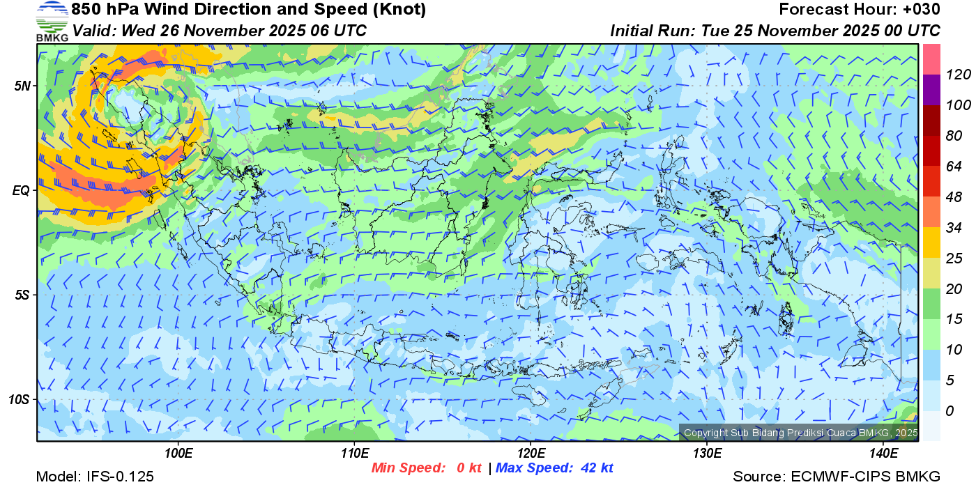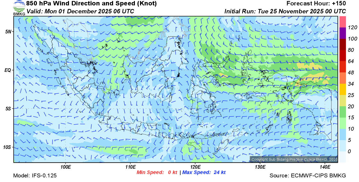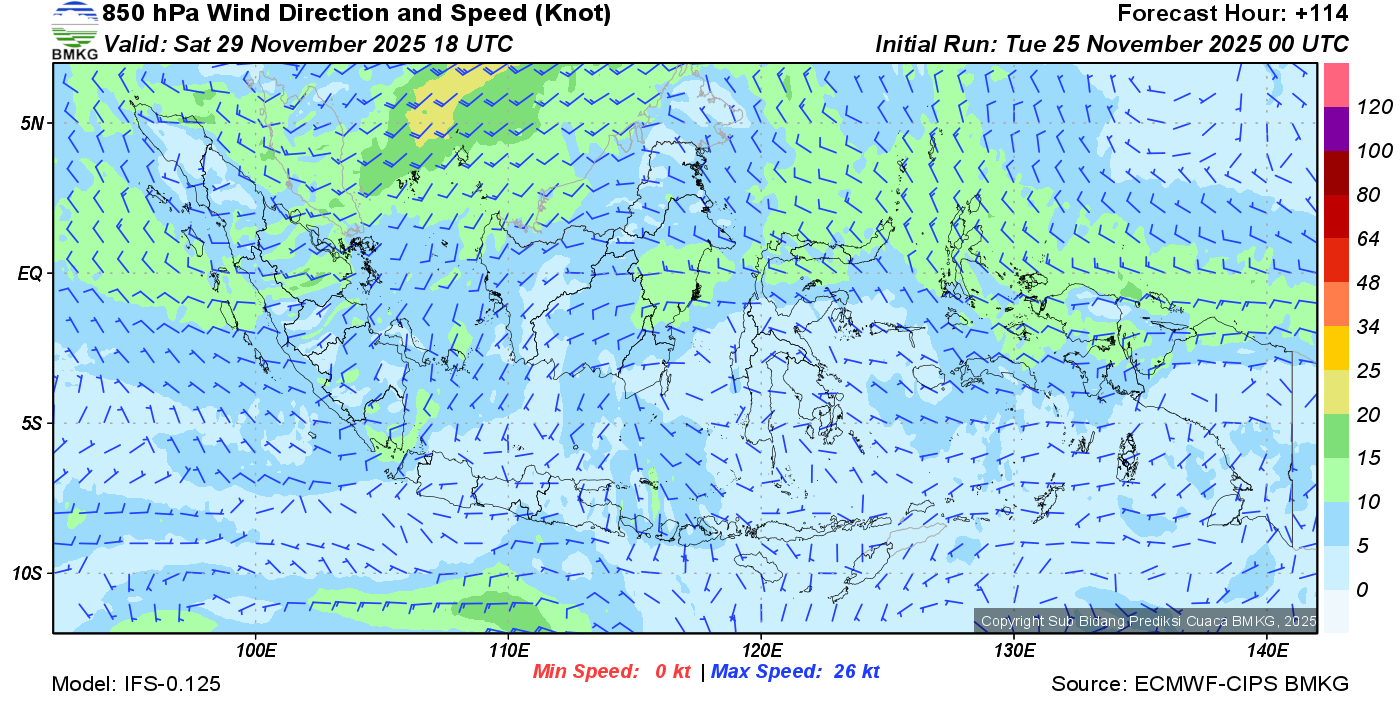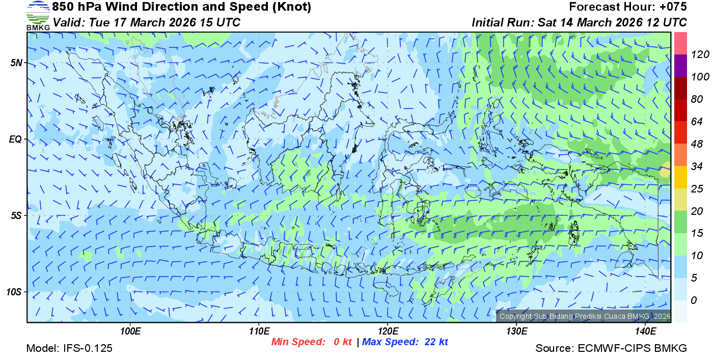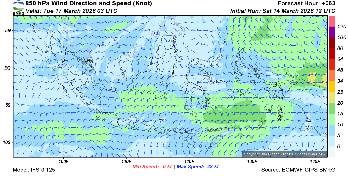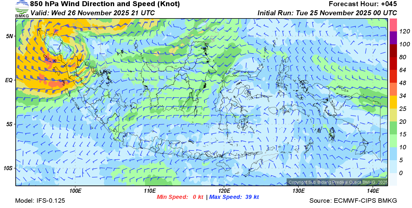 Prakiraan Angin Lapisan 850 Gunung Awu