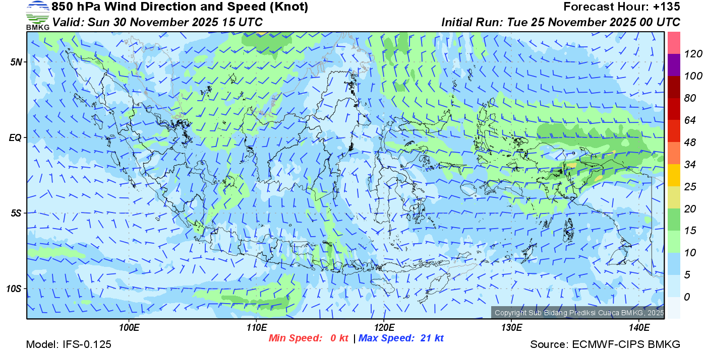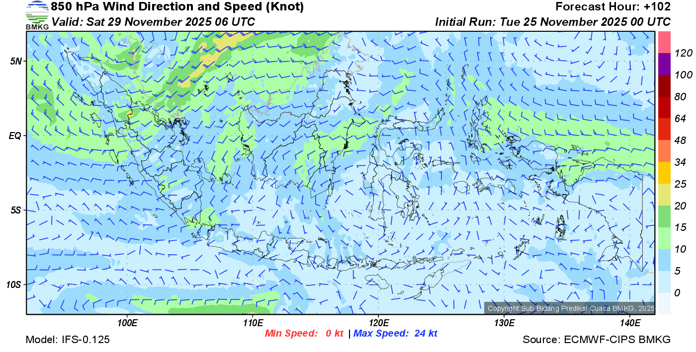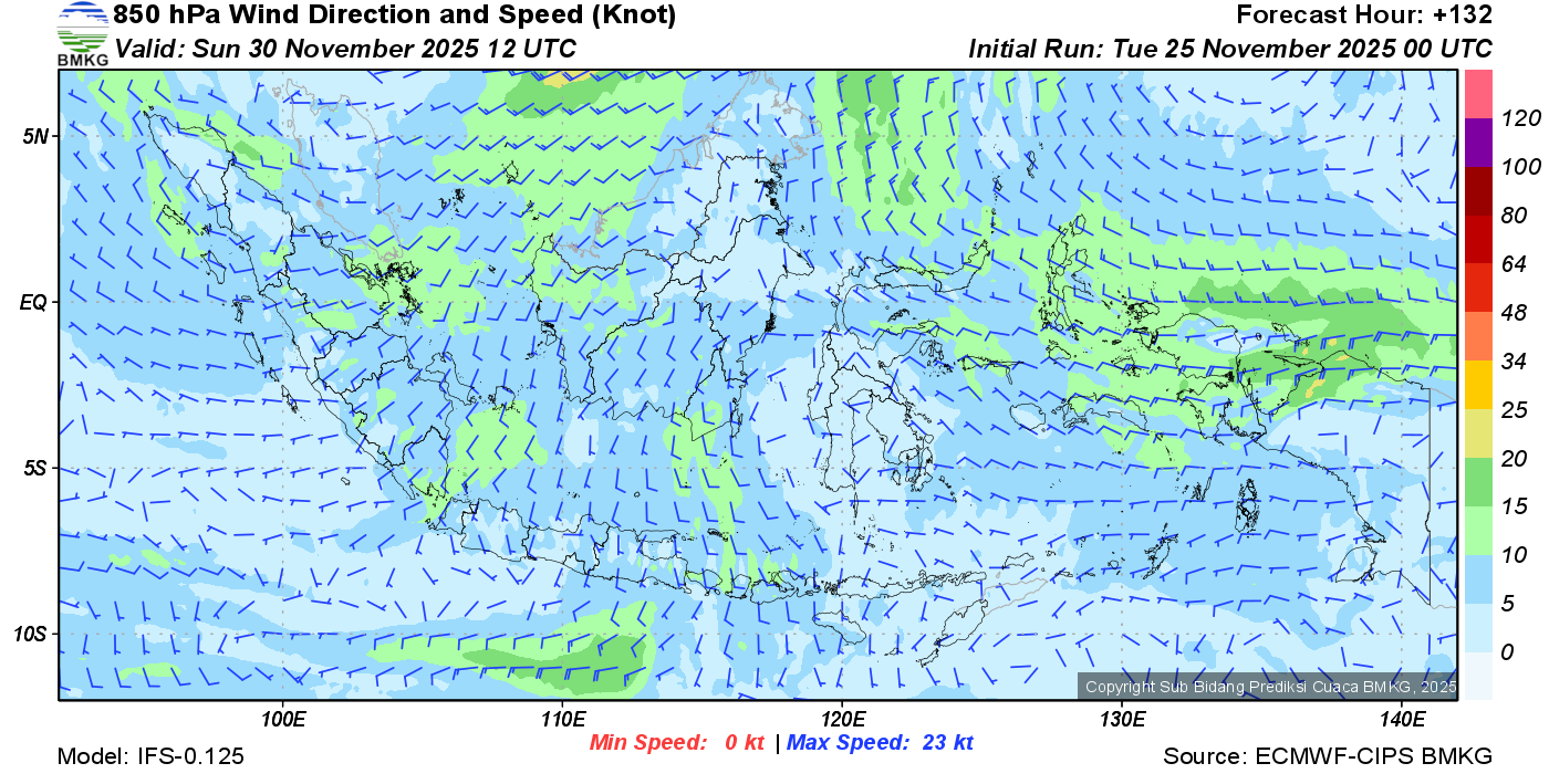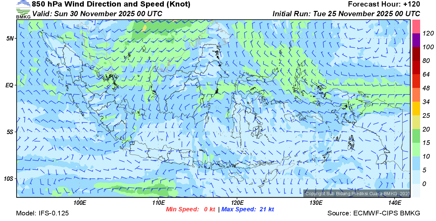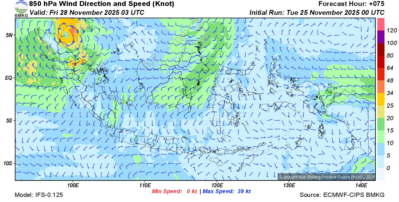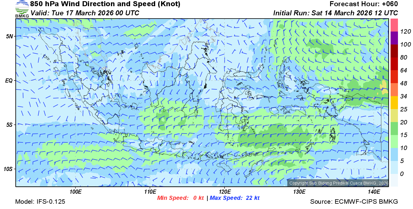 Prakiraan Angin Lapisan 850 Gunung Awu