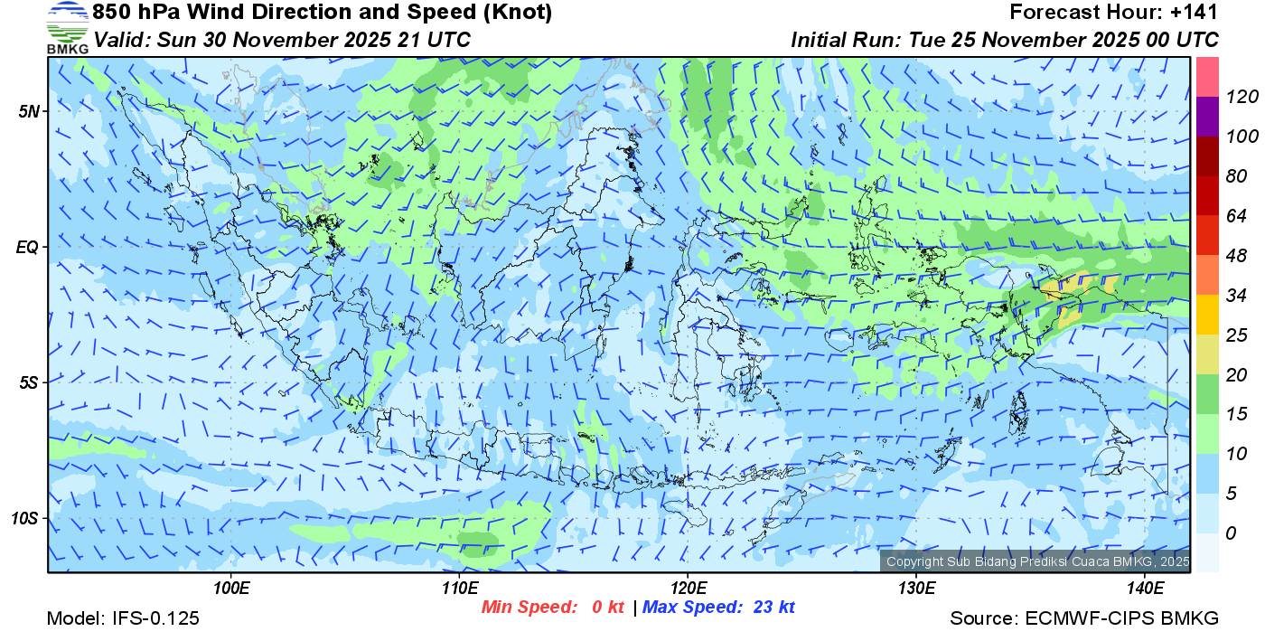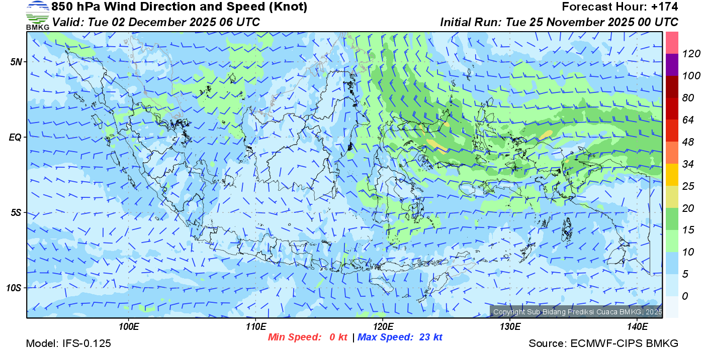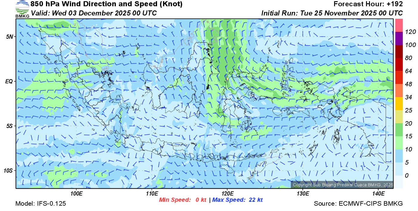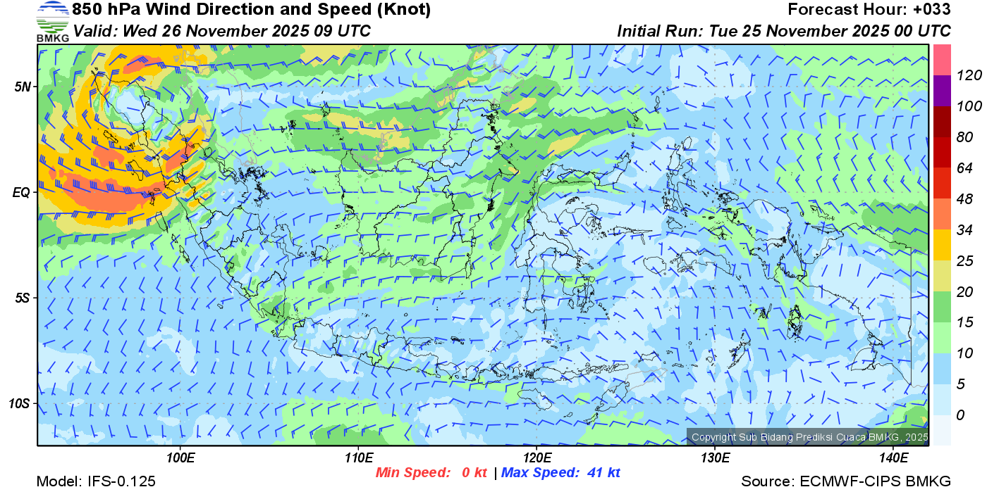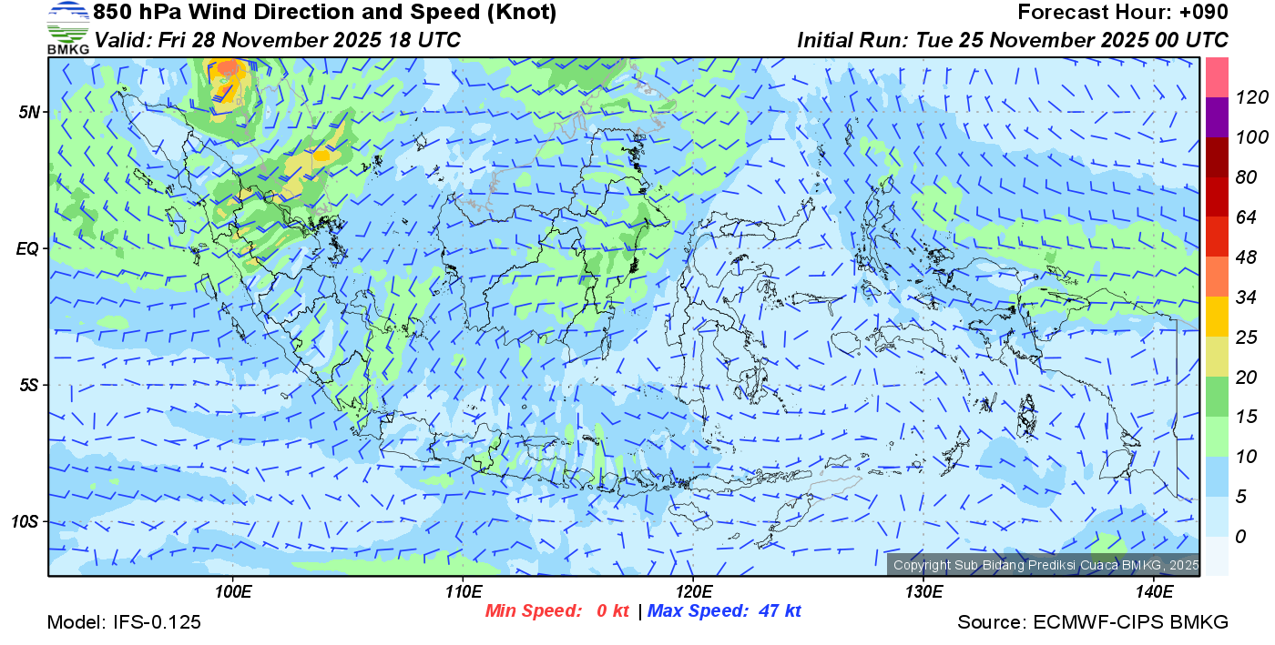 Prakiraan Angin Lapisan 850 Gunung Awu