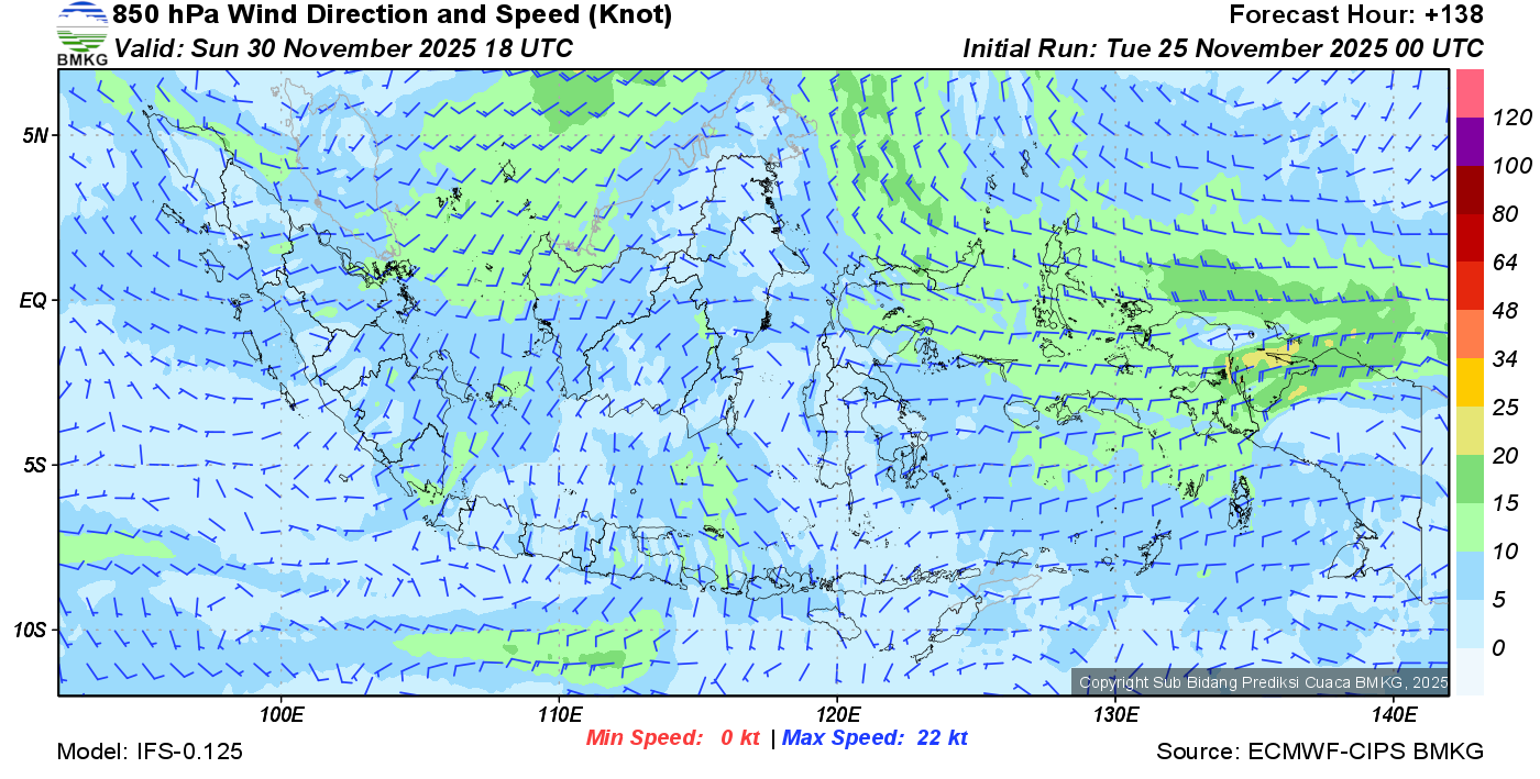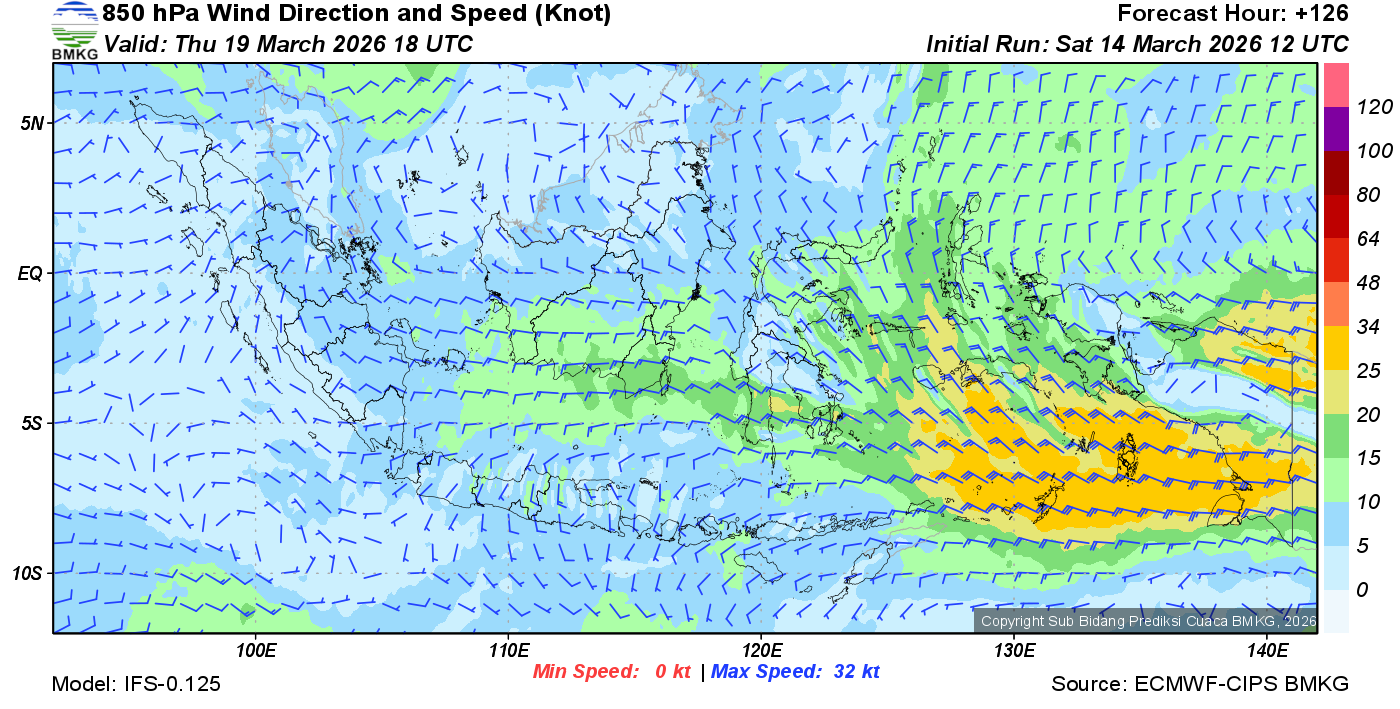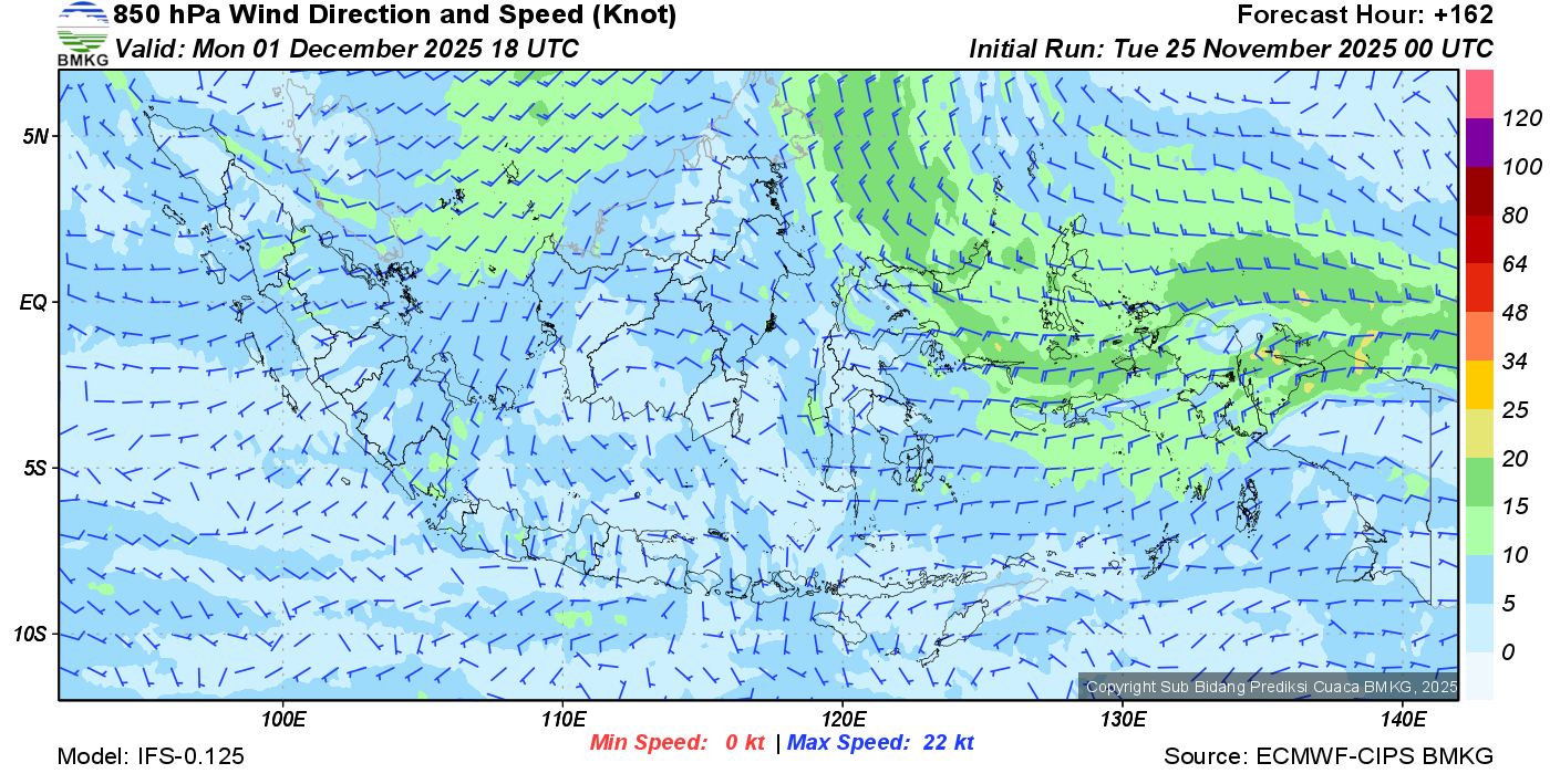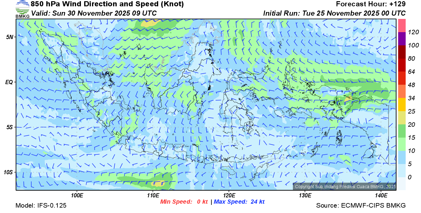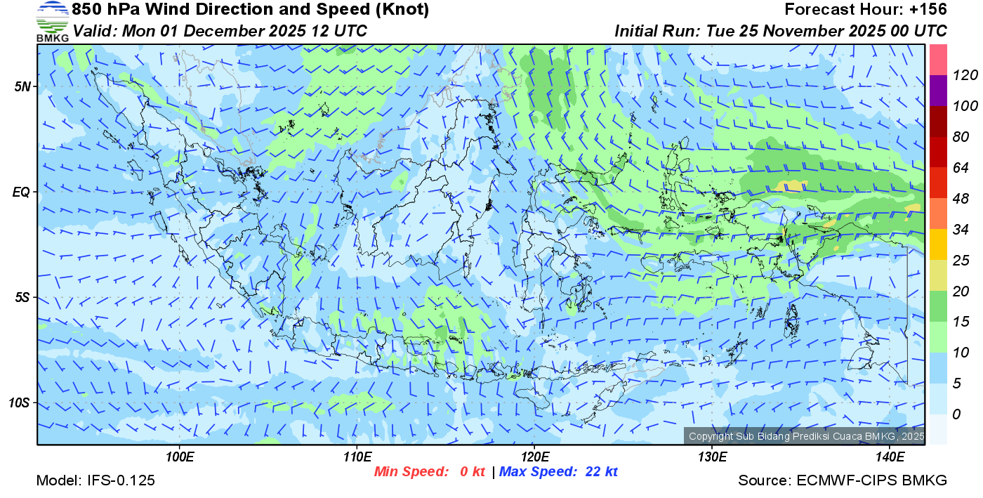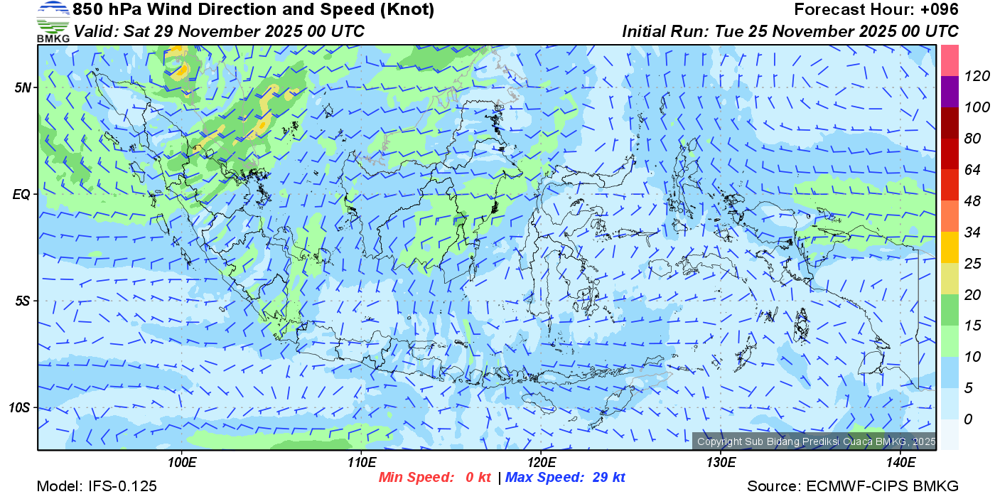 Prakiraan Angin Lapisan 850 Gunung Awu
