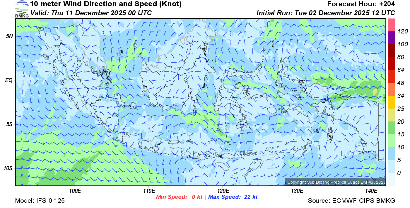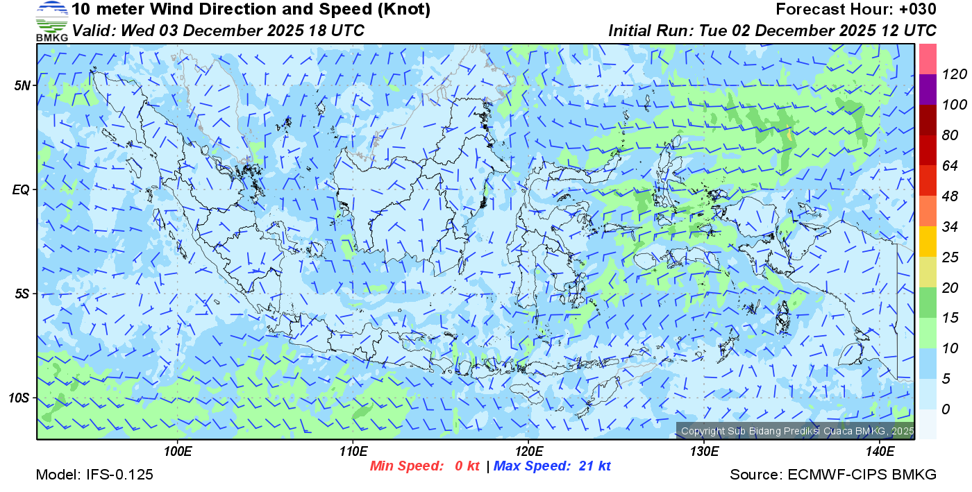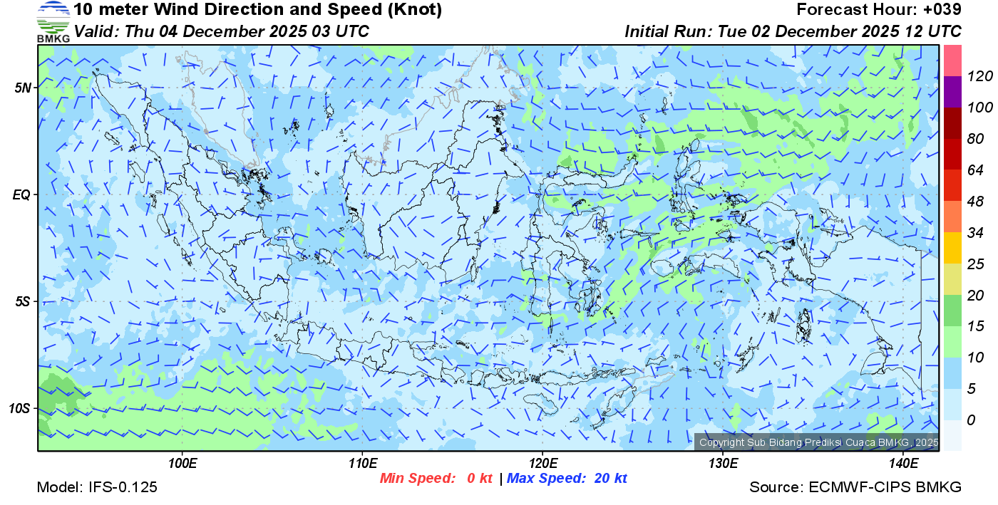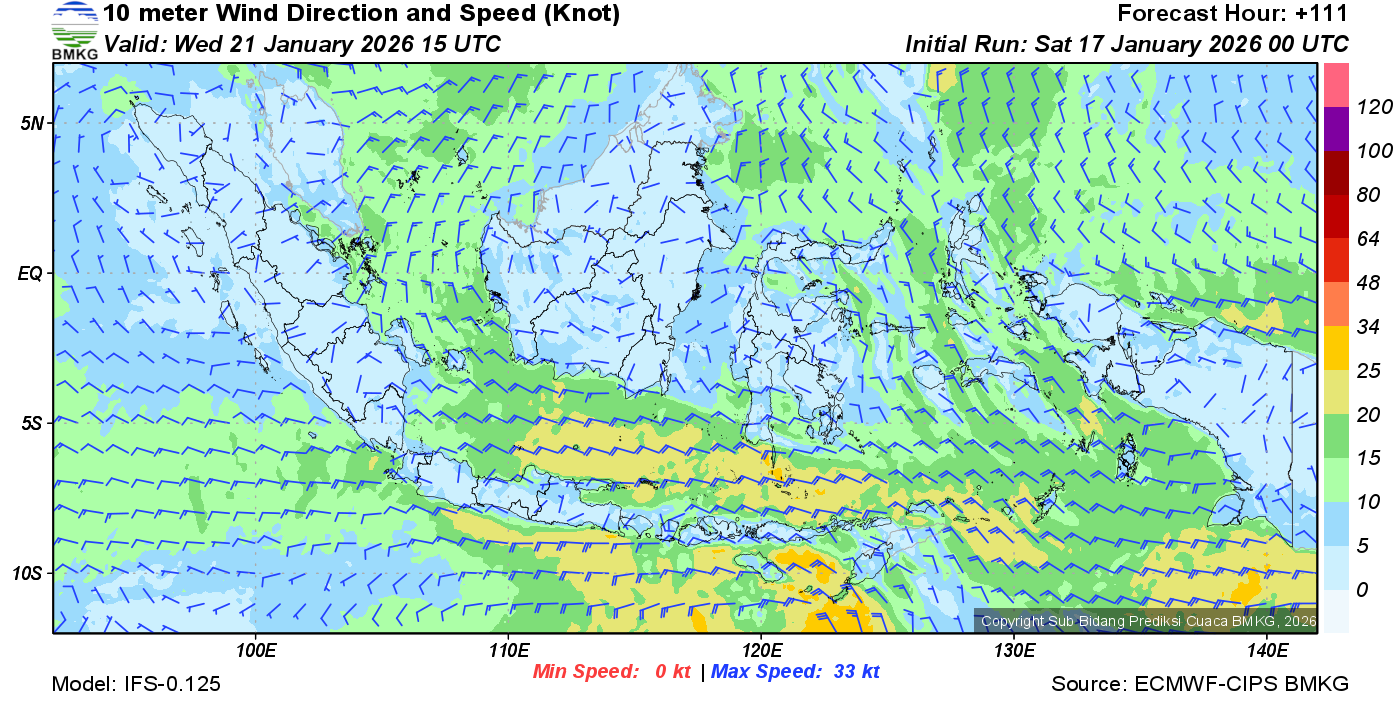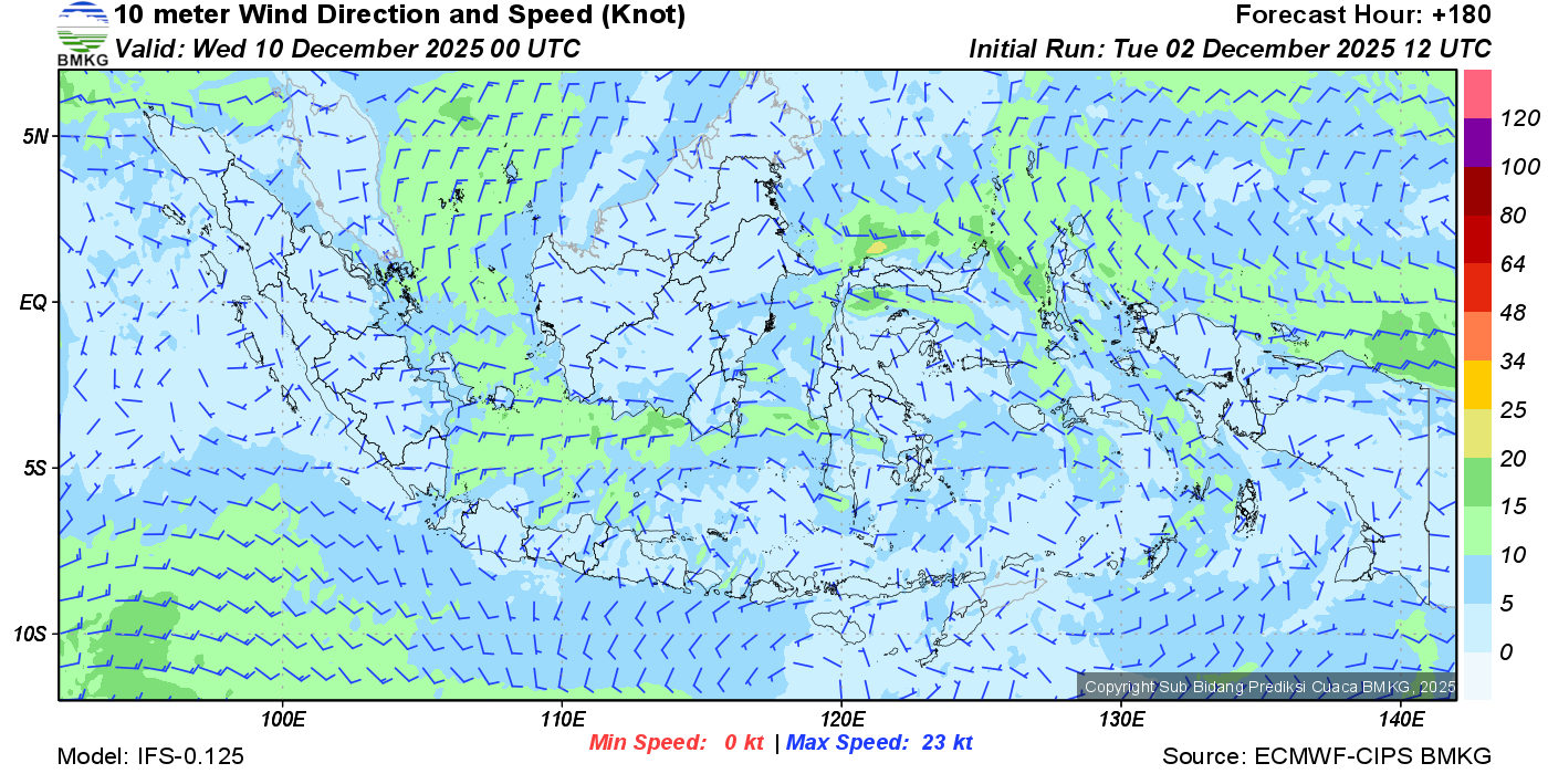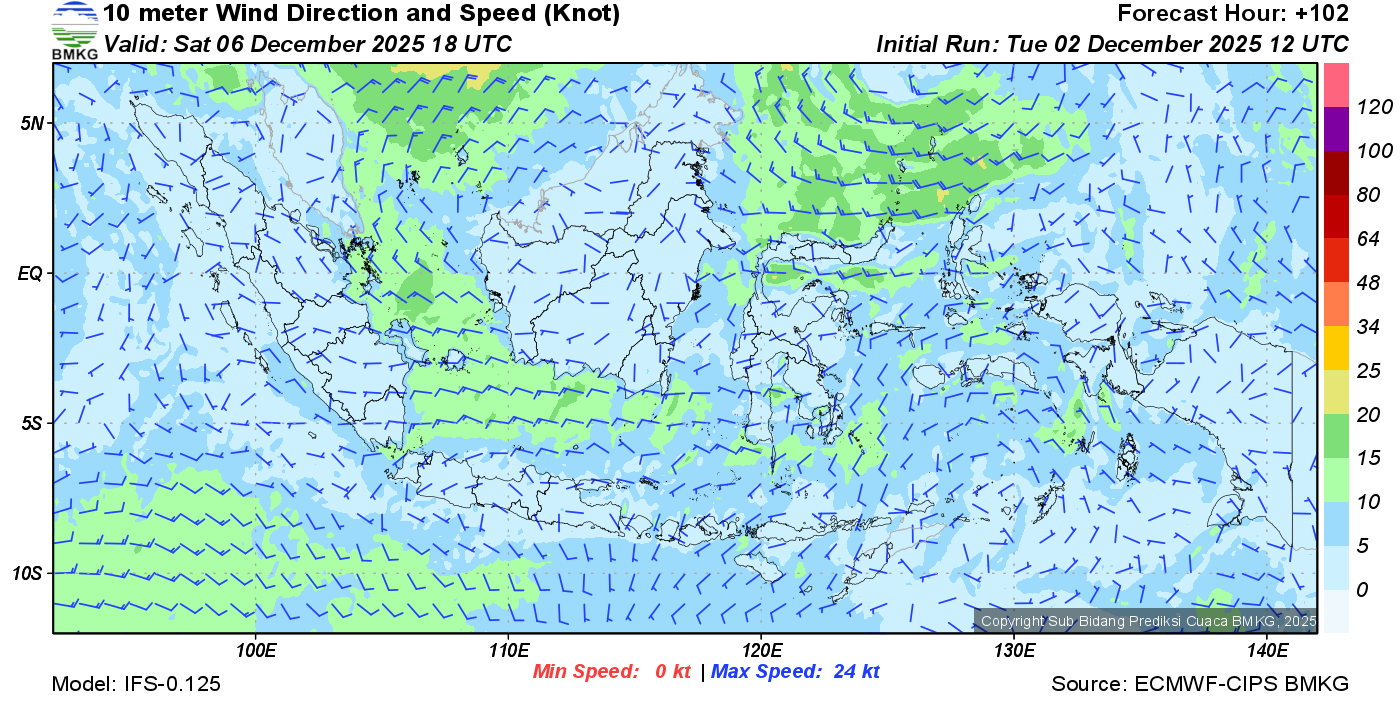 Prakiraan Angin Lapisan 10m Gunung Awu