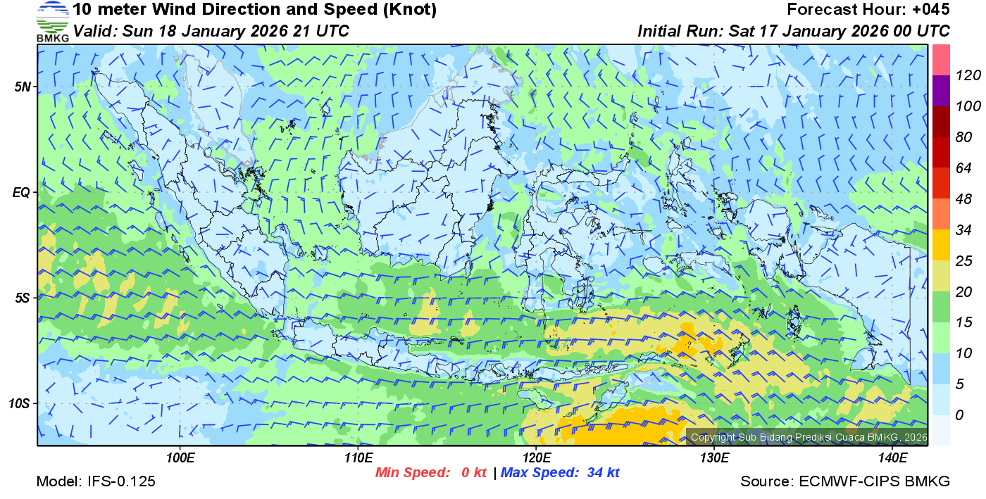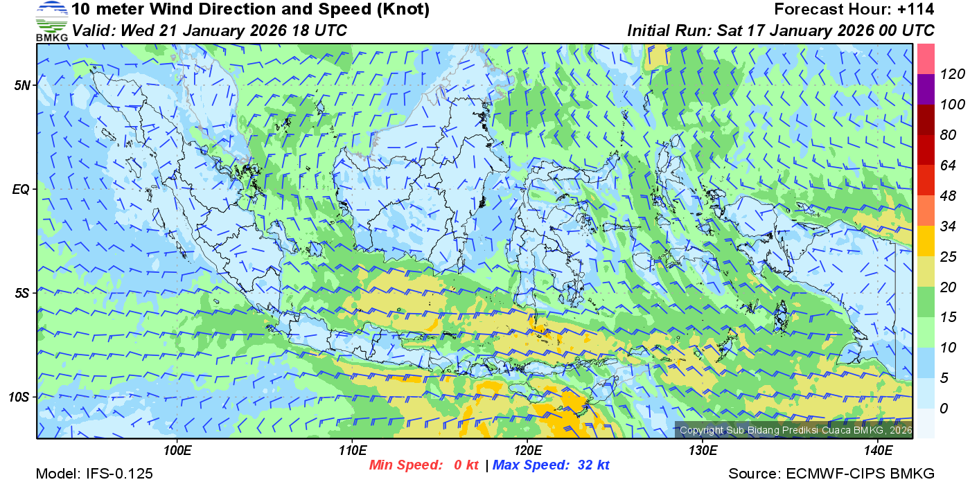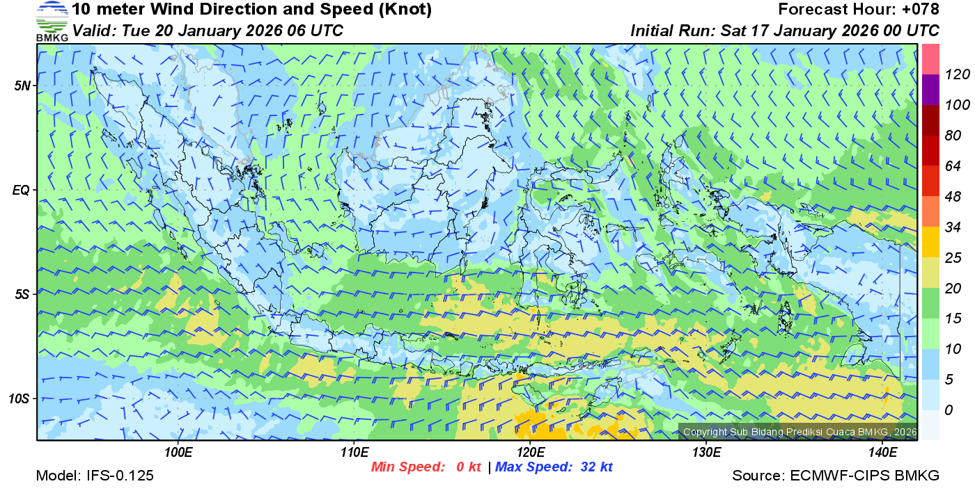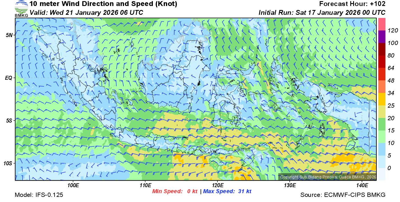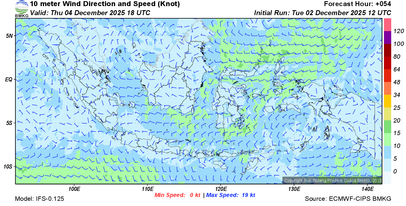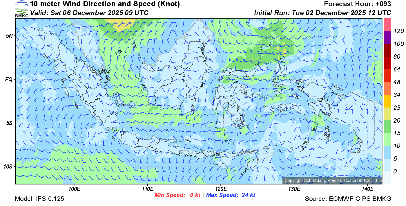 Prakiraan Angin Lapisan 10m Gunung Awu
