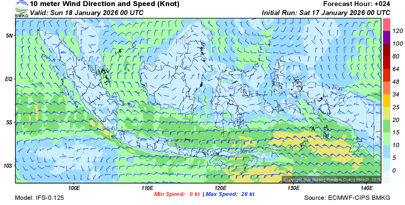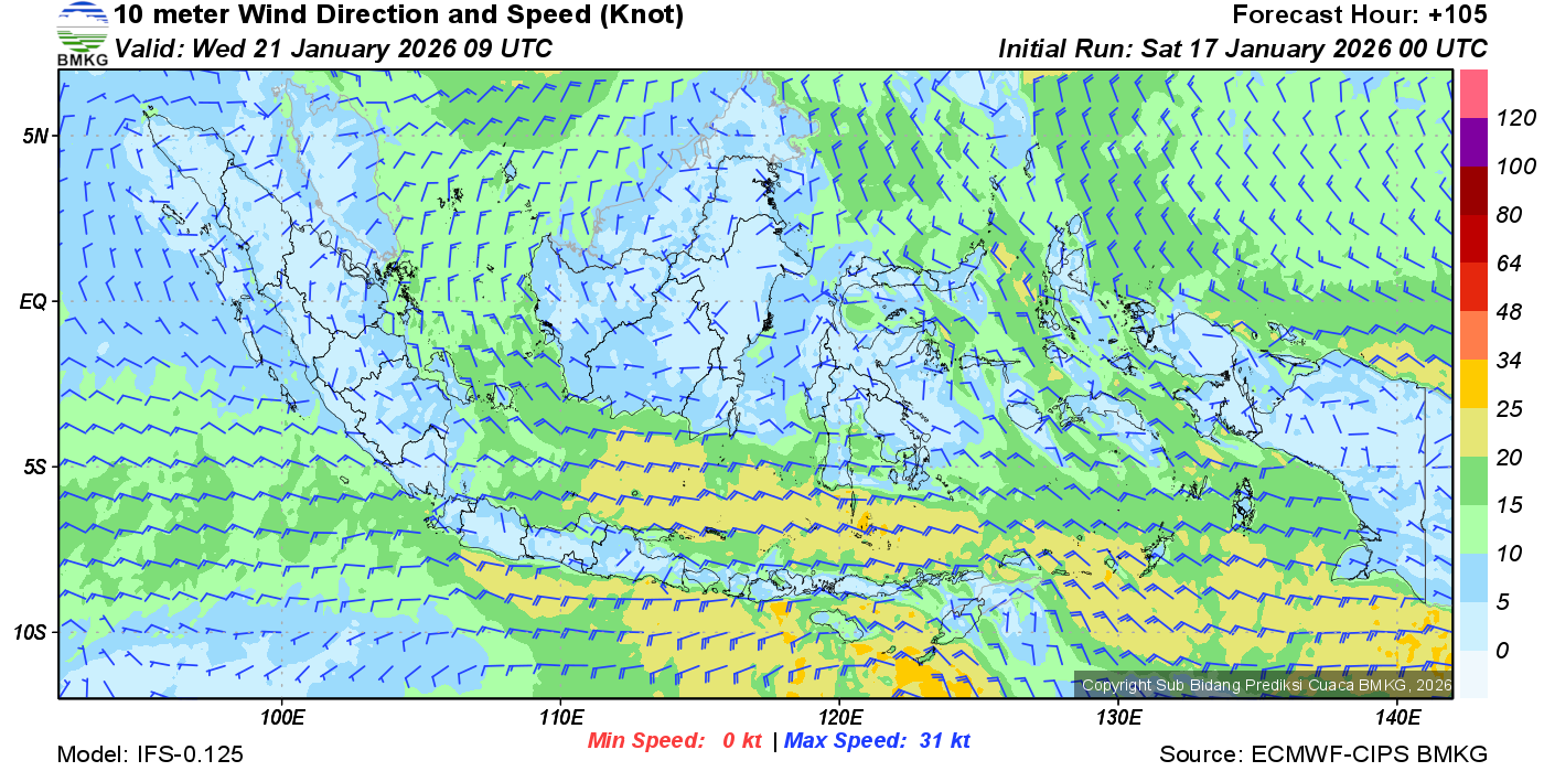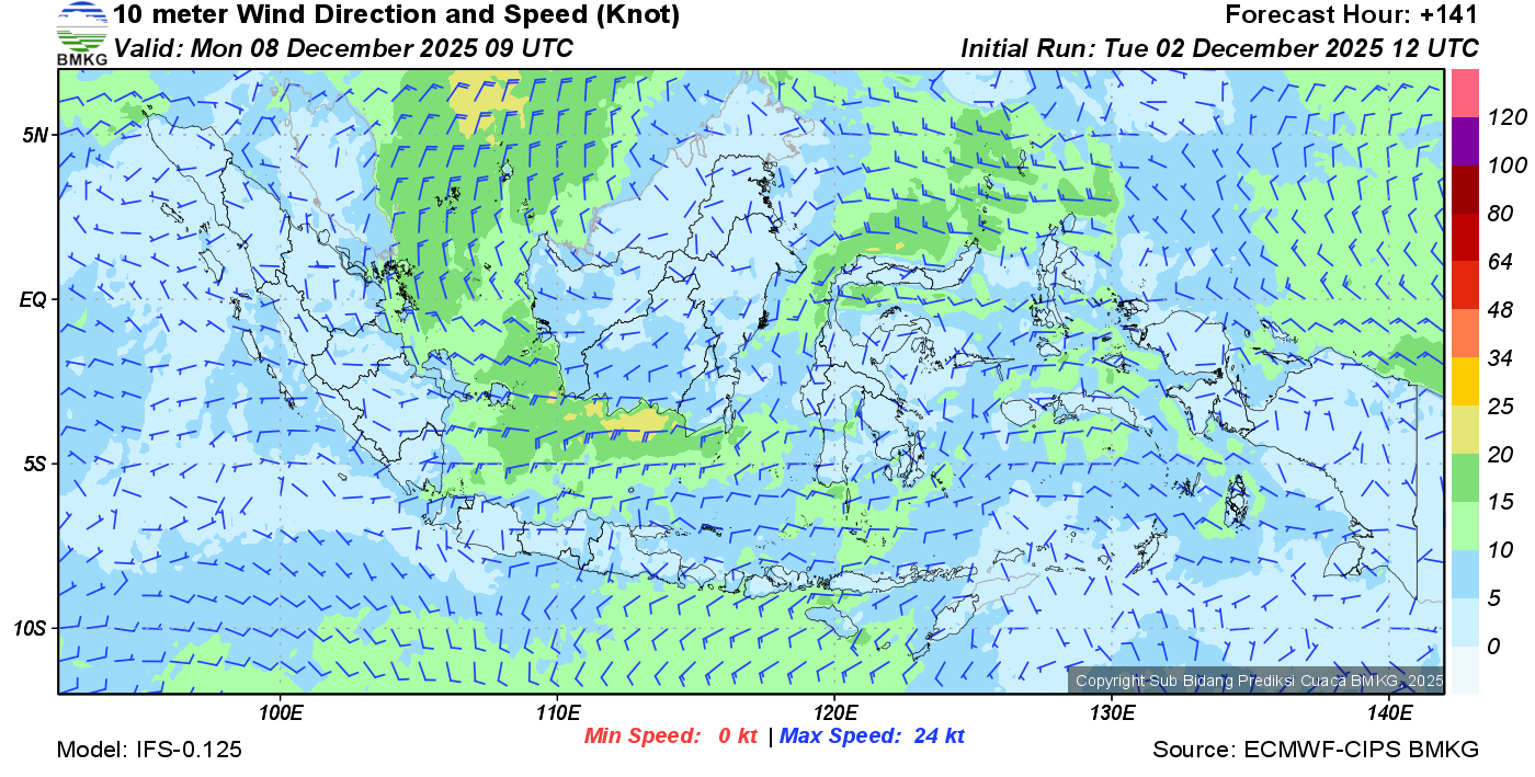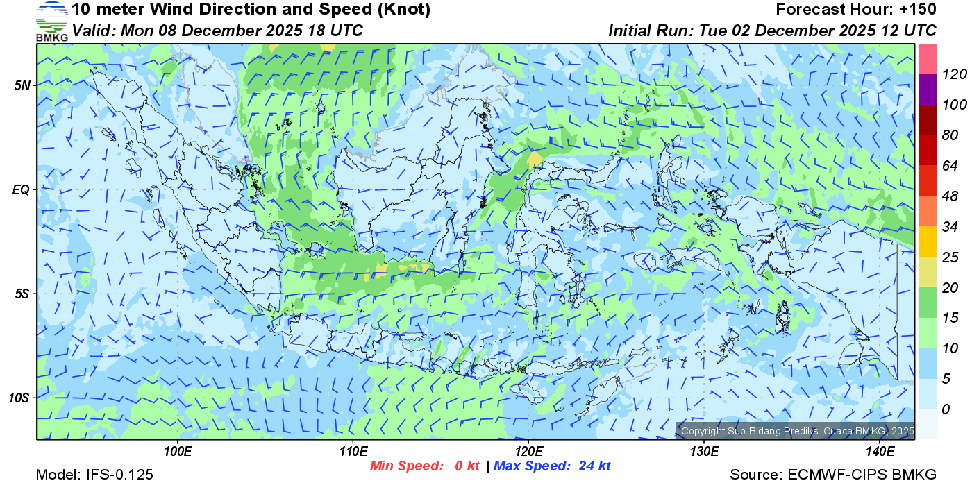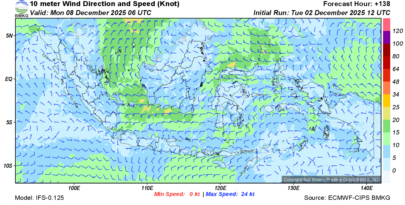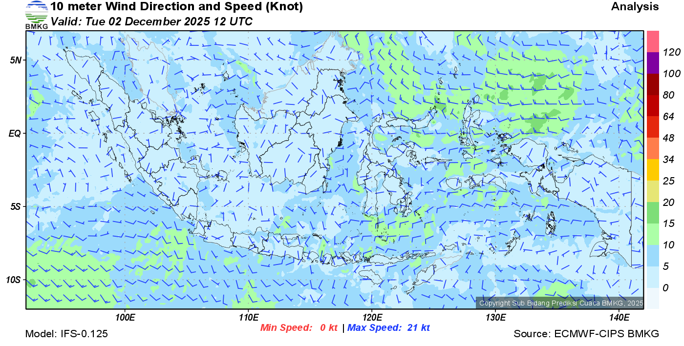 Prakiraan Angin Lapisan 10m Gunung Awu