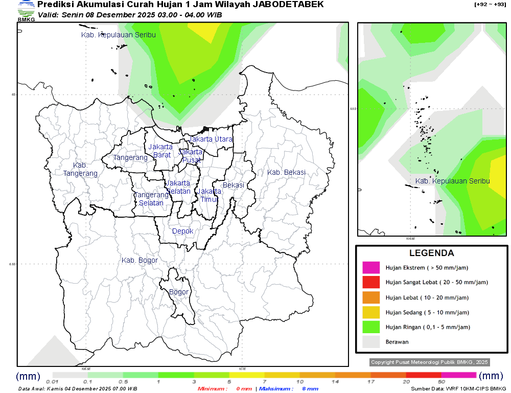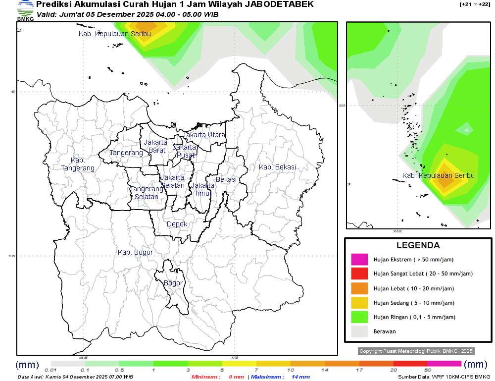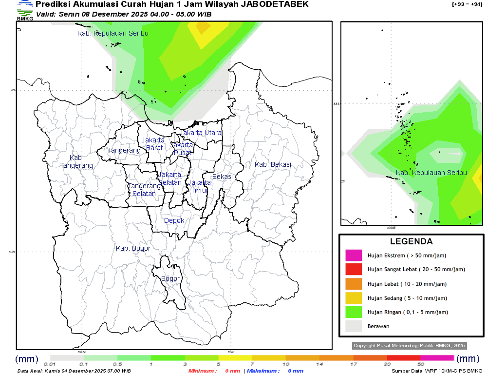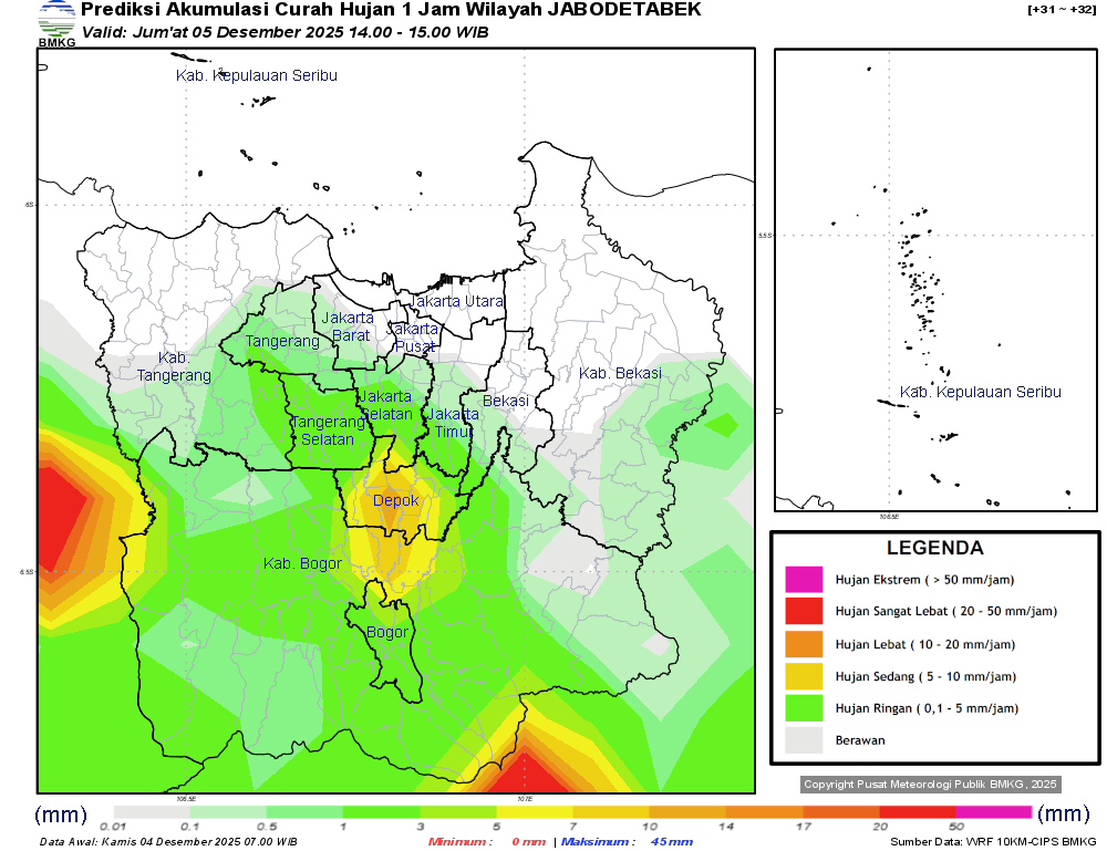 WRF Hourly Precipitation Rate Forecast Jakarta