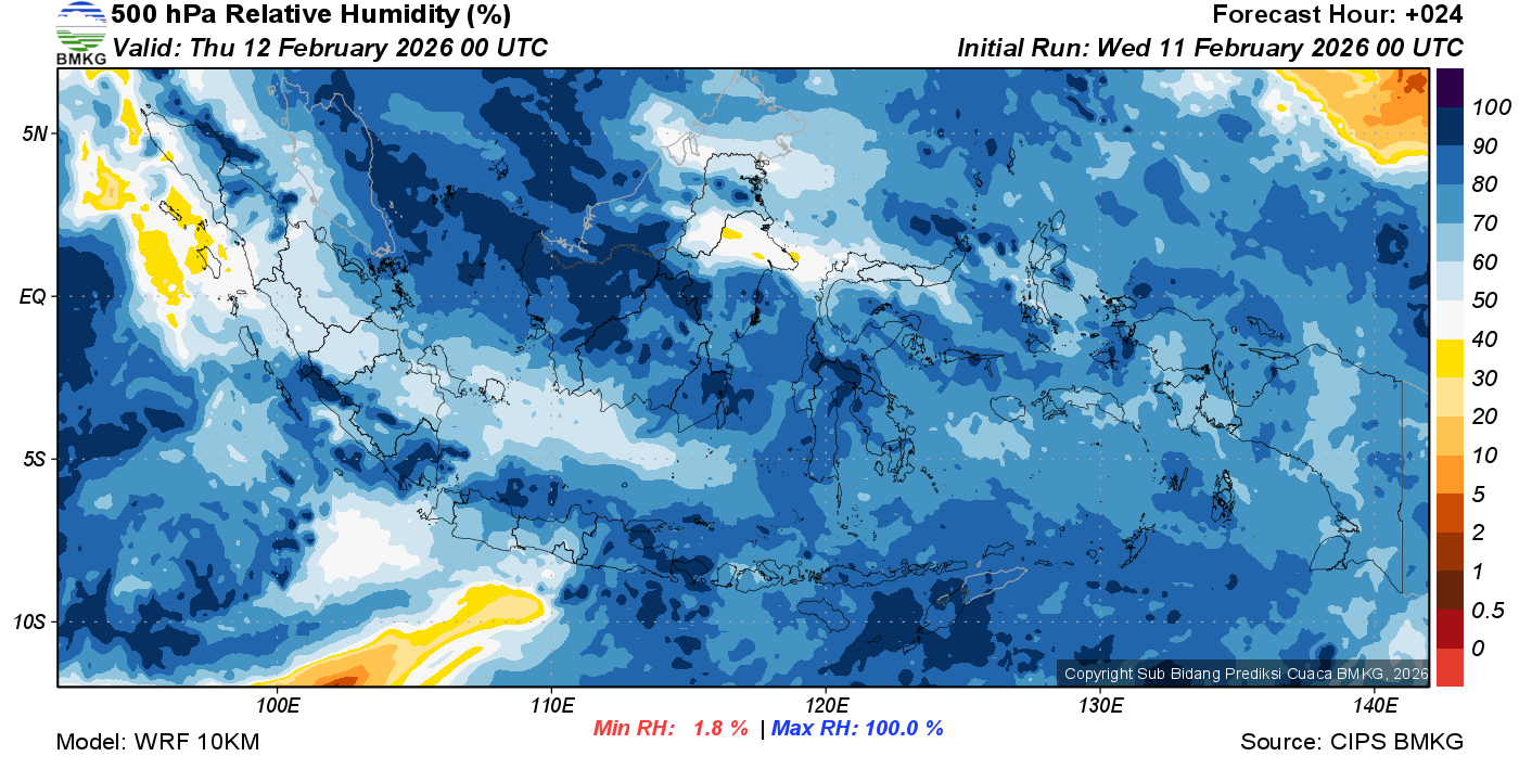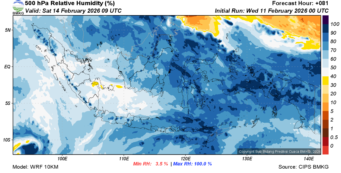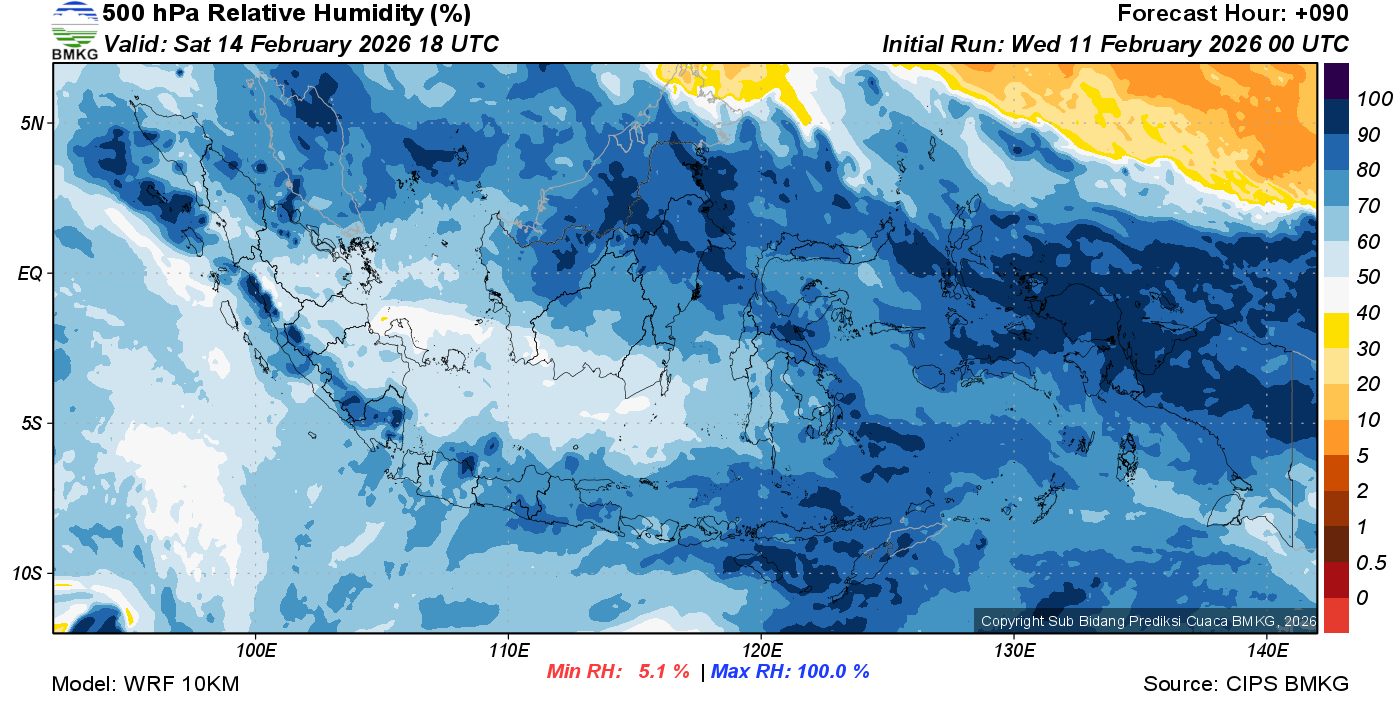 Prediksi Kelembapan 500 hPa NTT