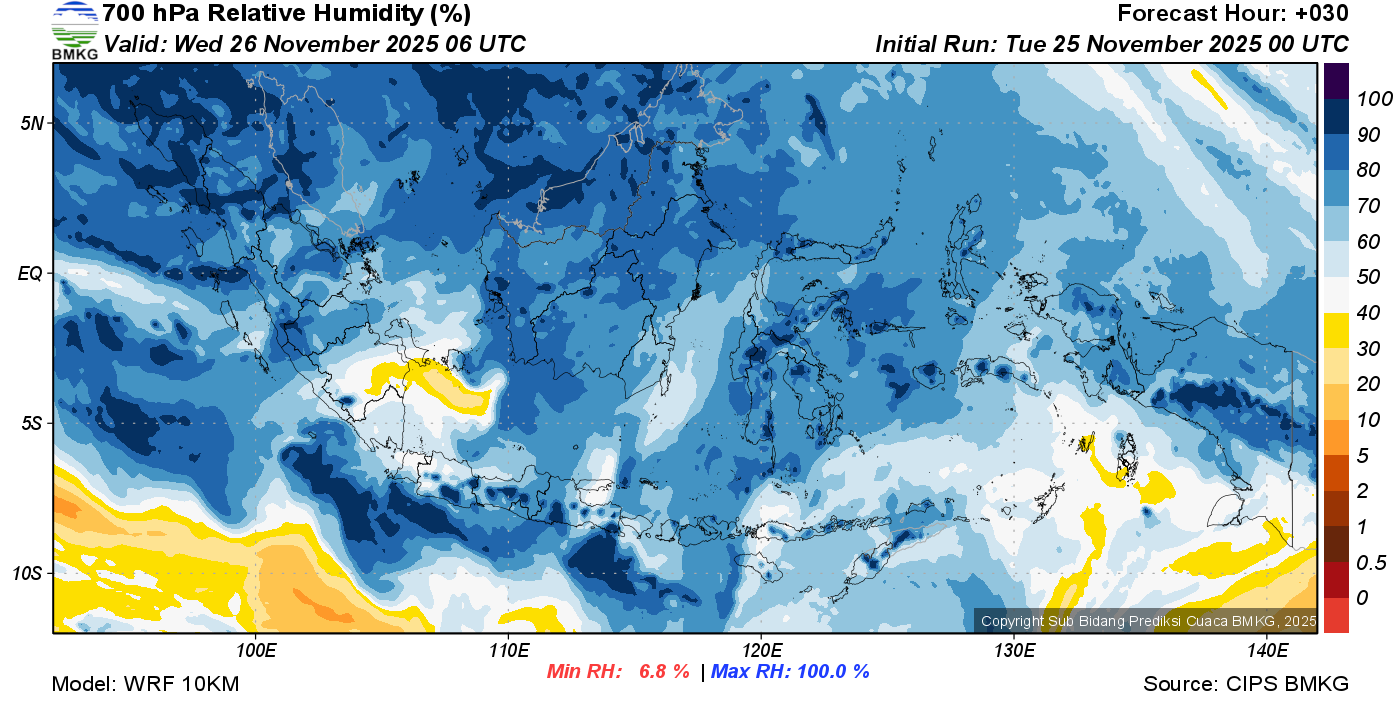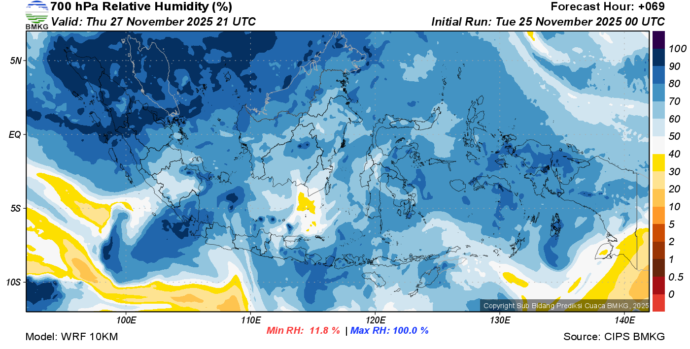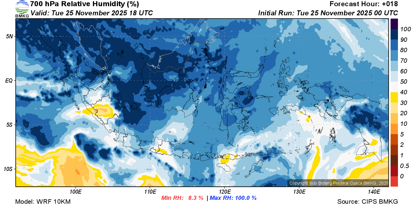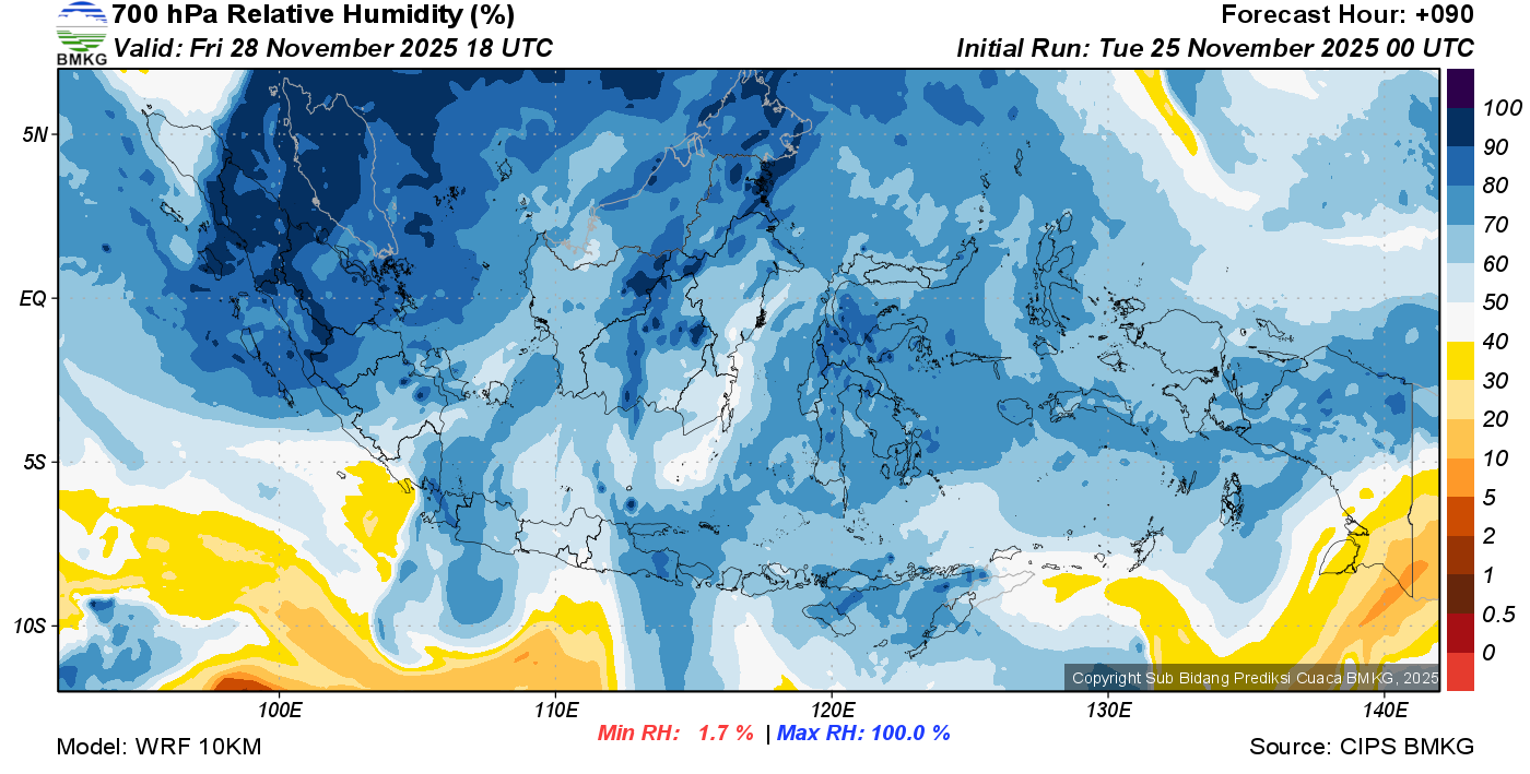 Prediksi Kelembapan 700 hPa NTT