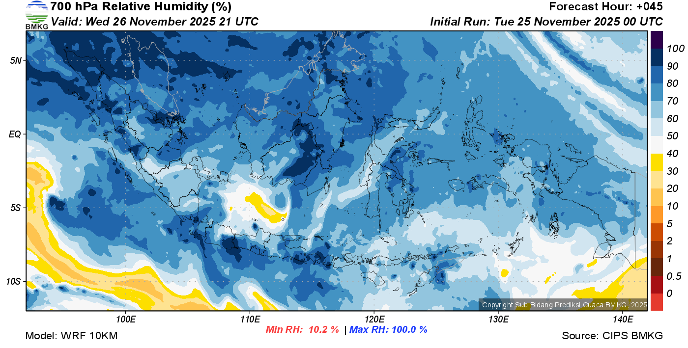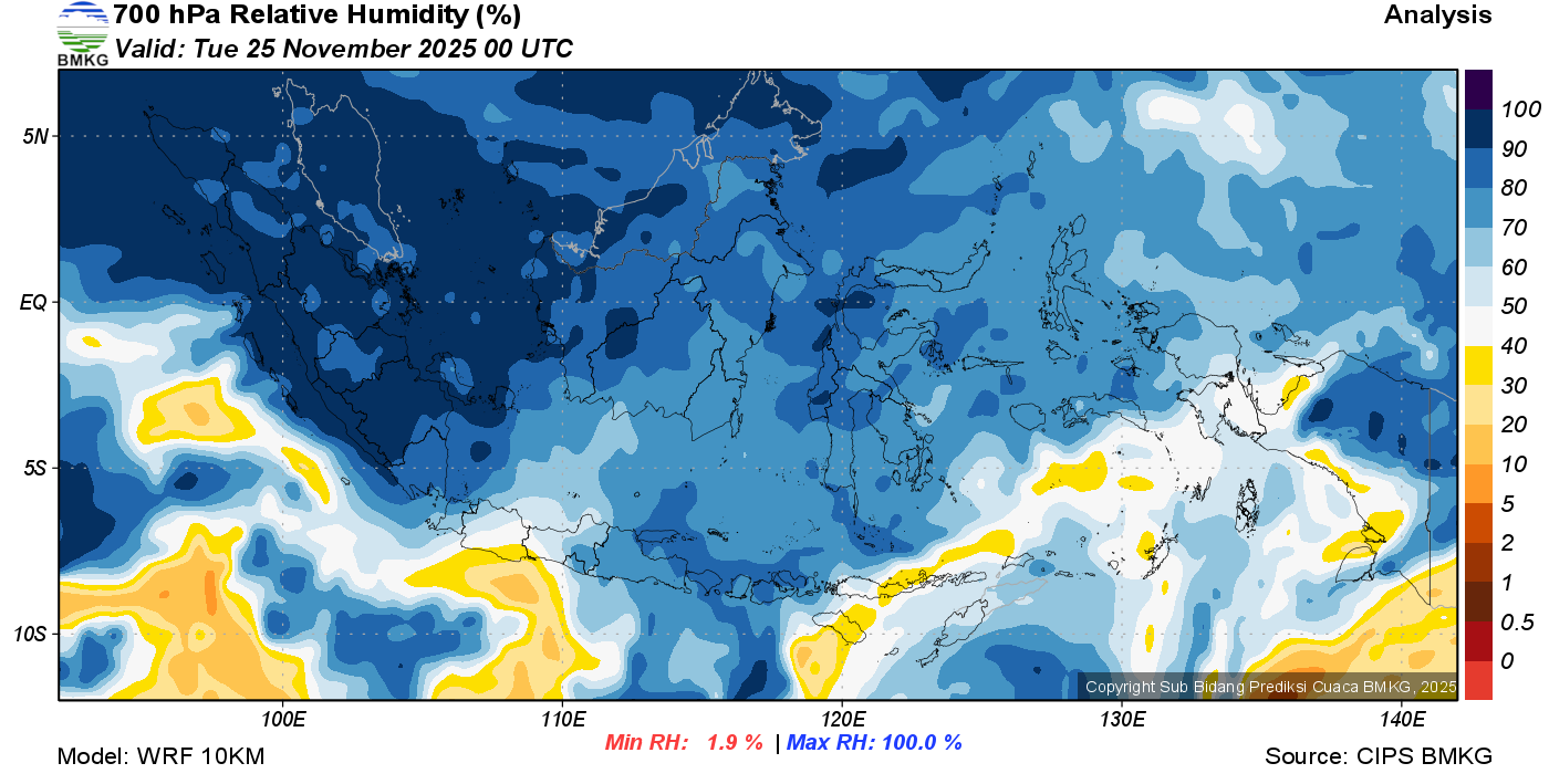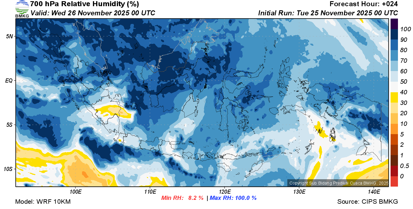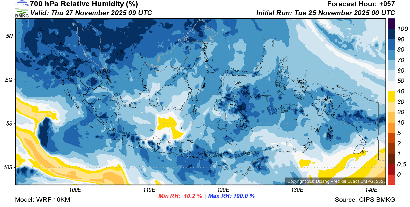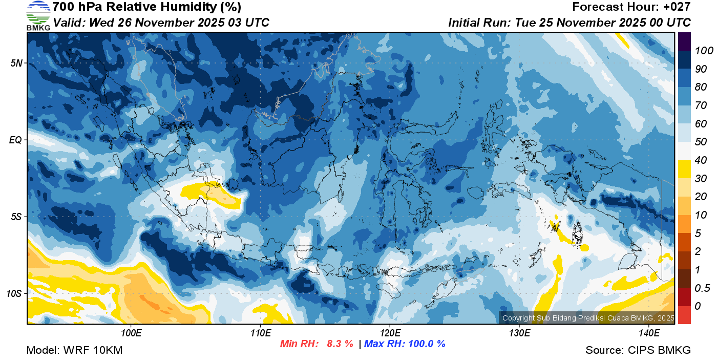 Prediksi Kelembapan 700 hPa NTT