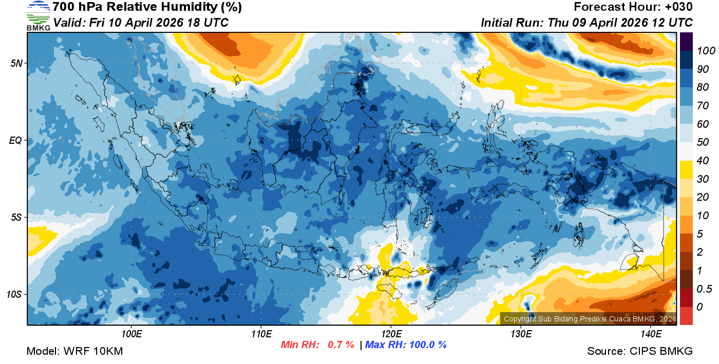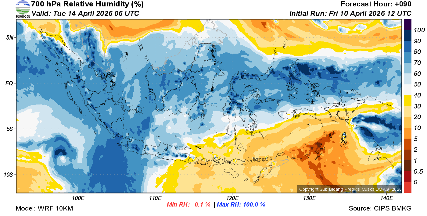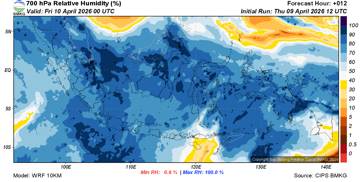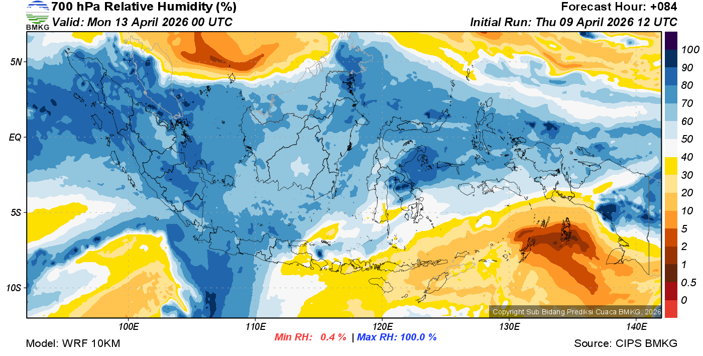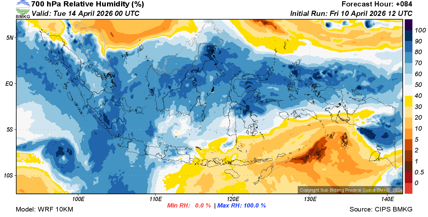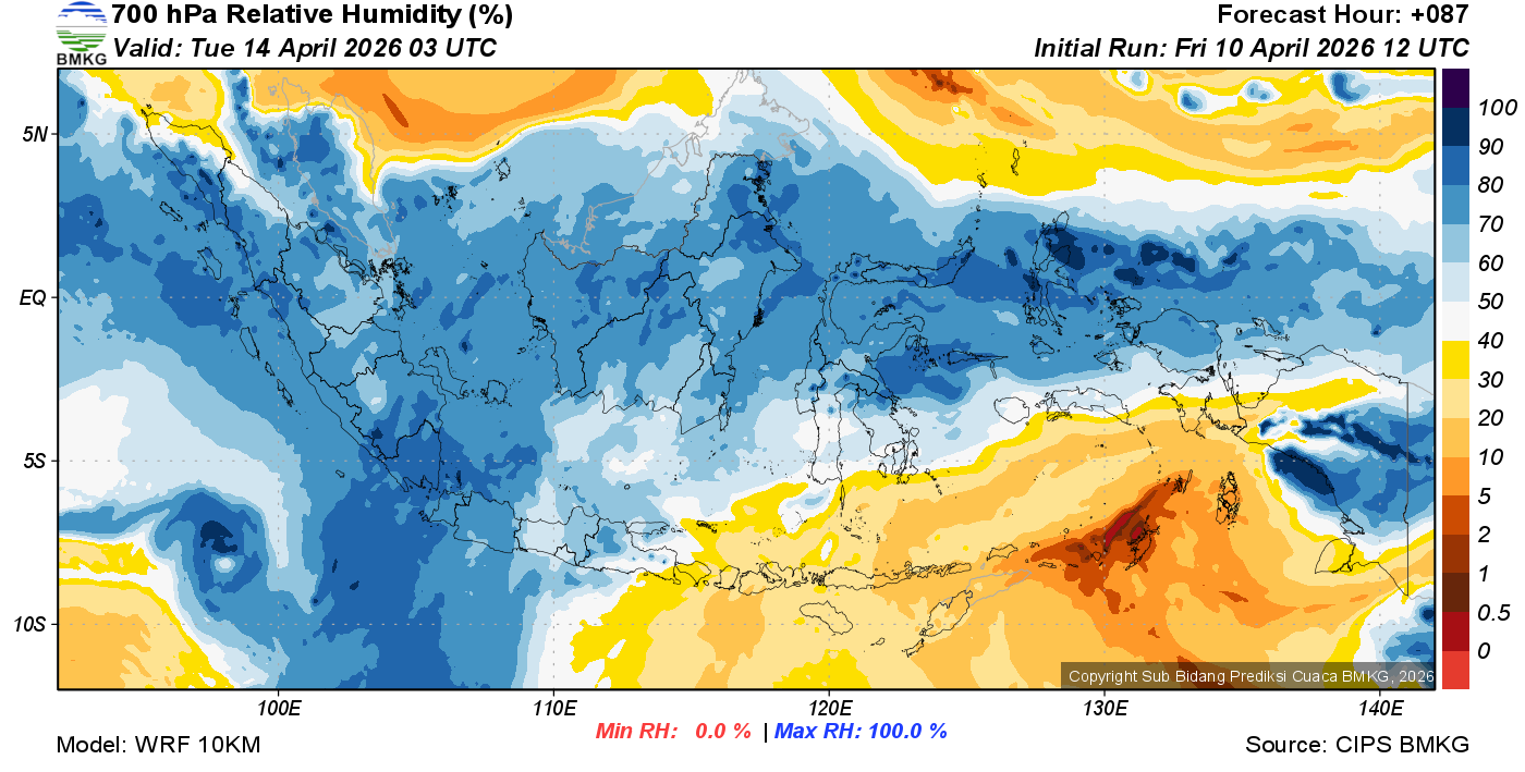 Prediksi Suhu Titik Embun 700 hPa NTT