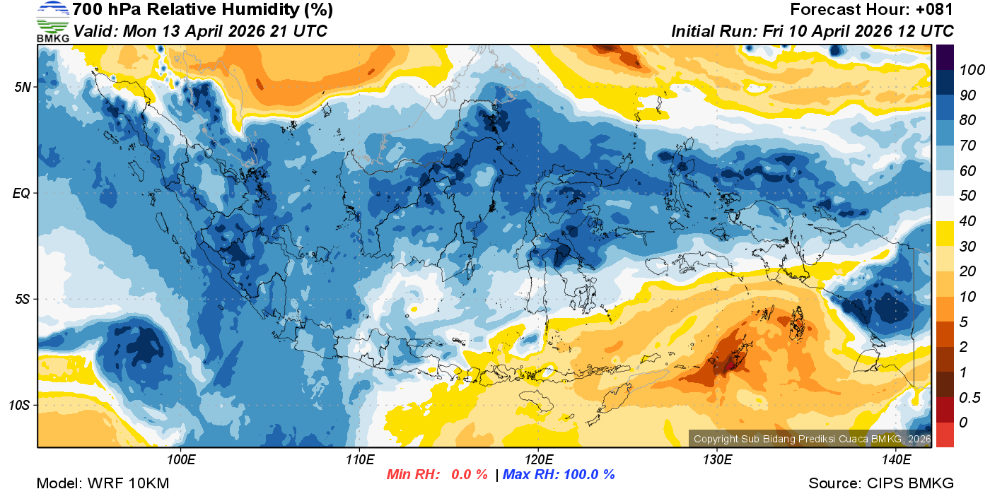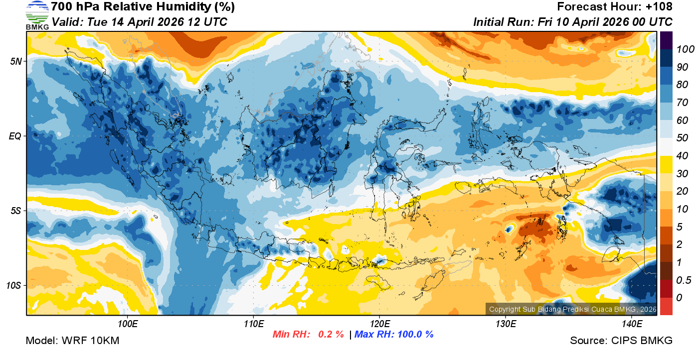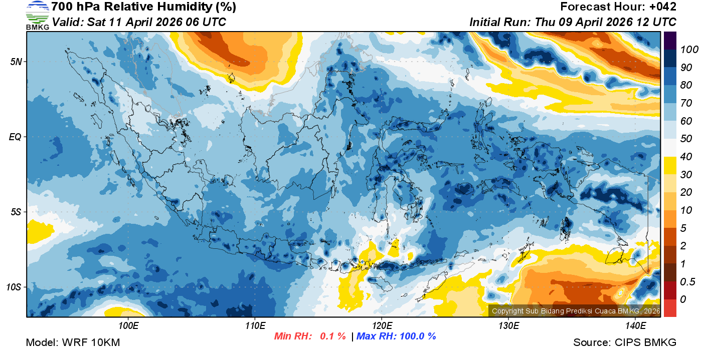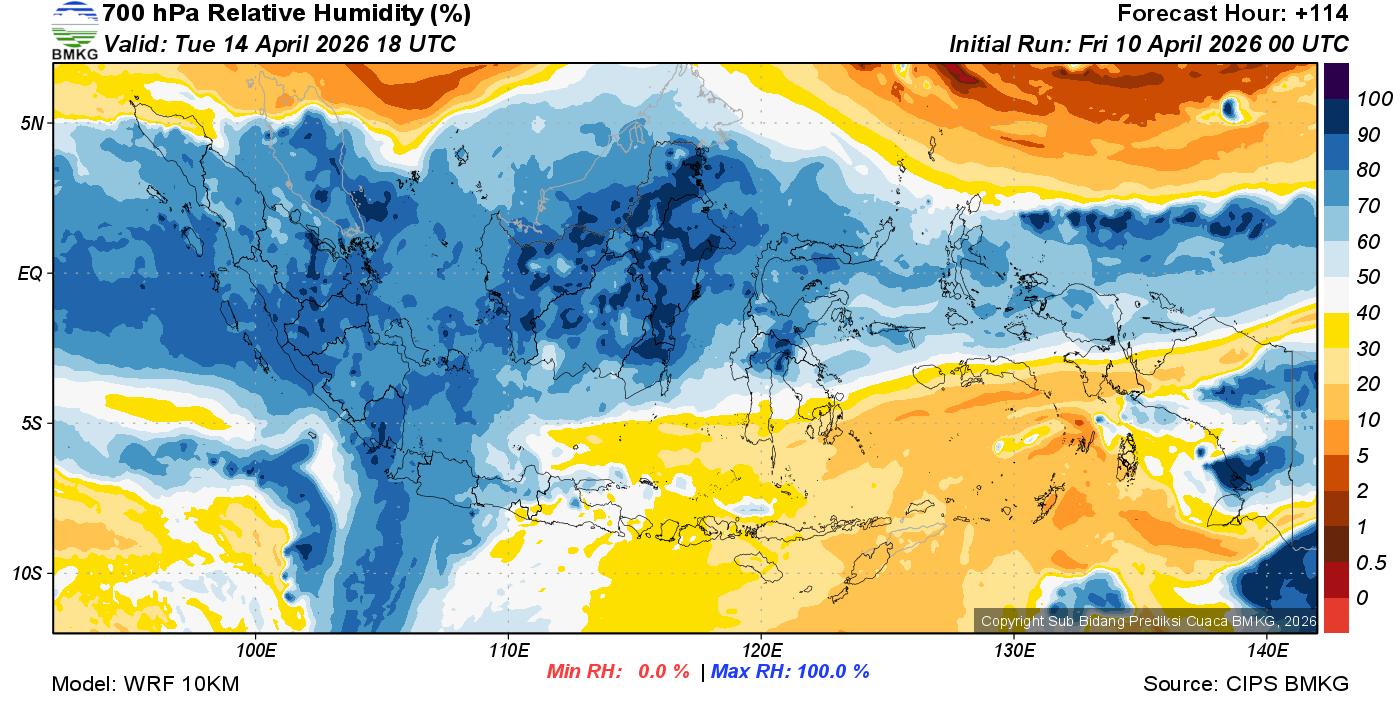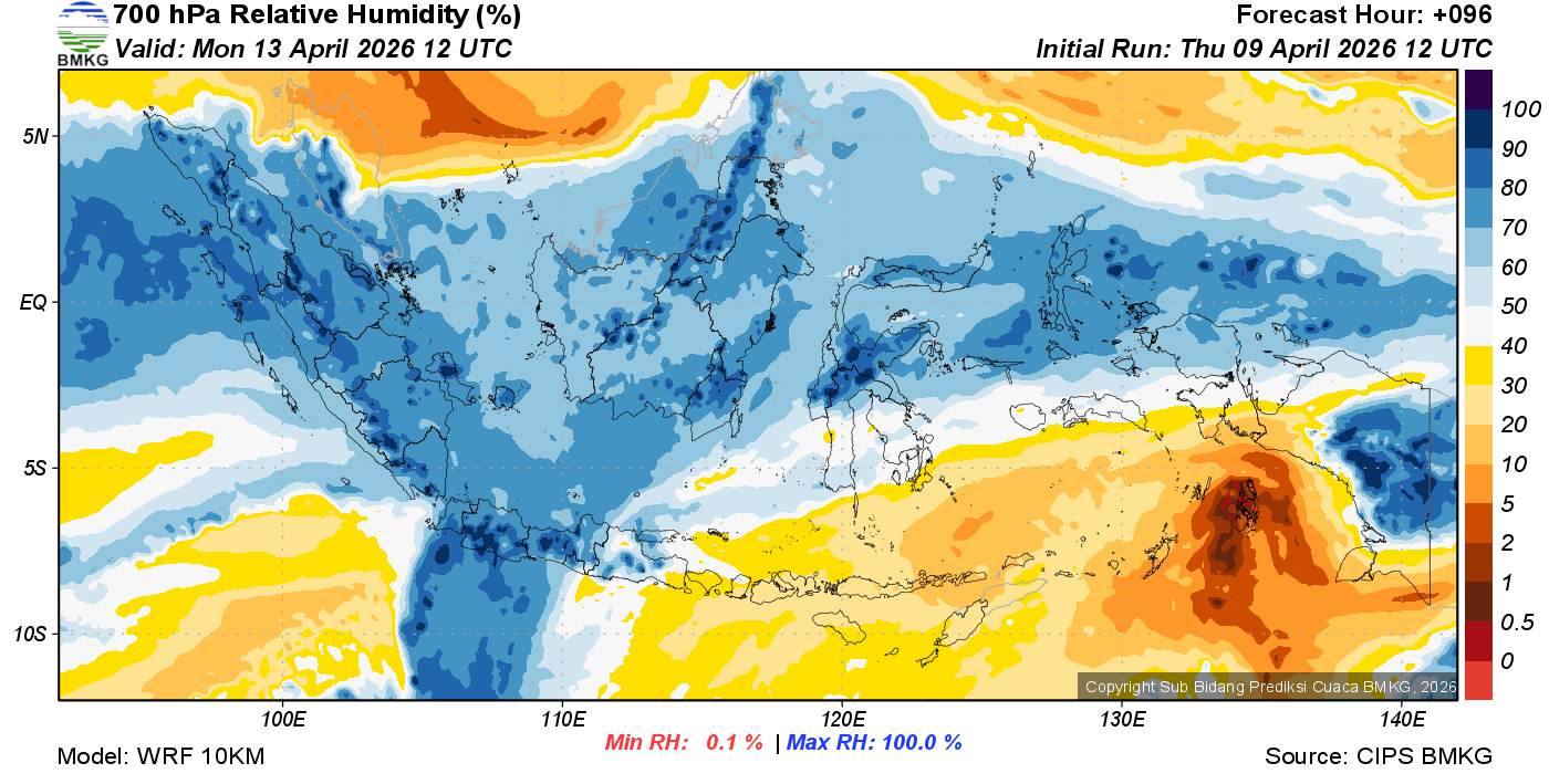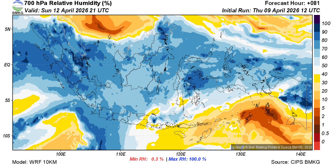 Prediksi Suhu Titik Embun 700 hPa NTT