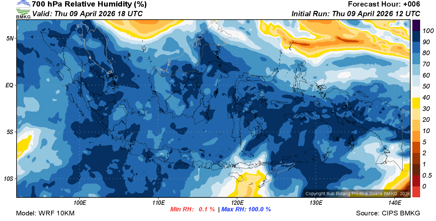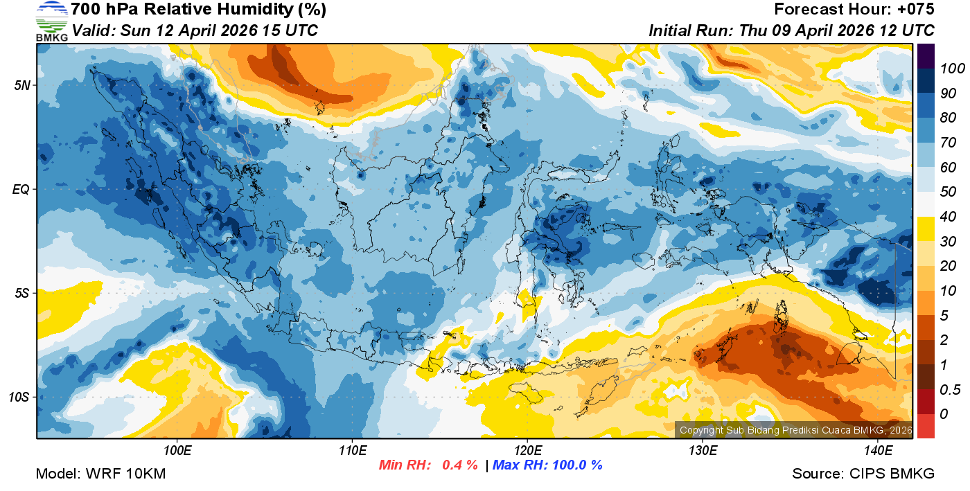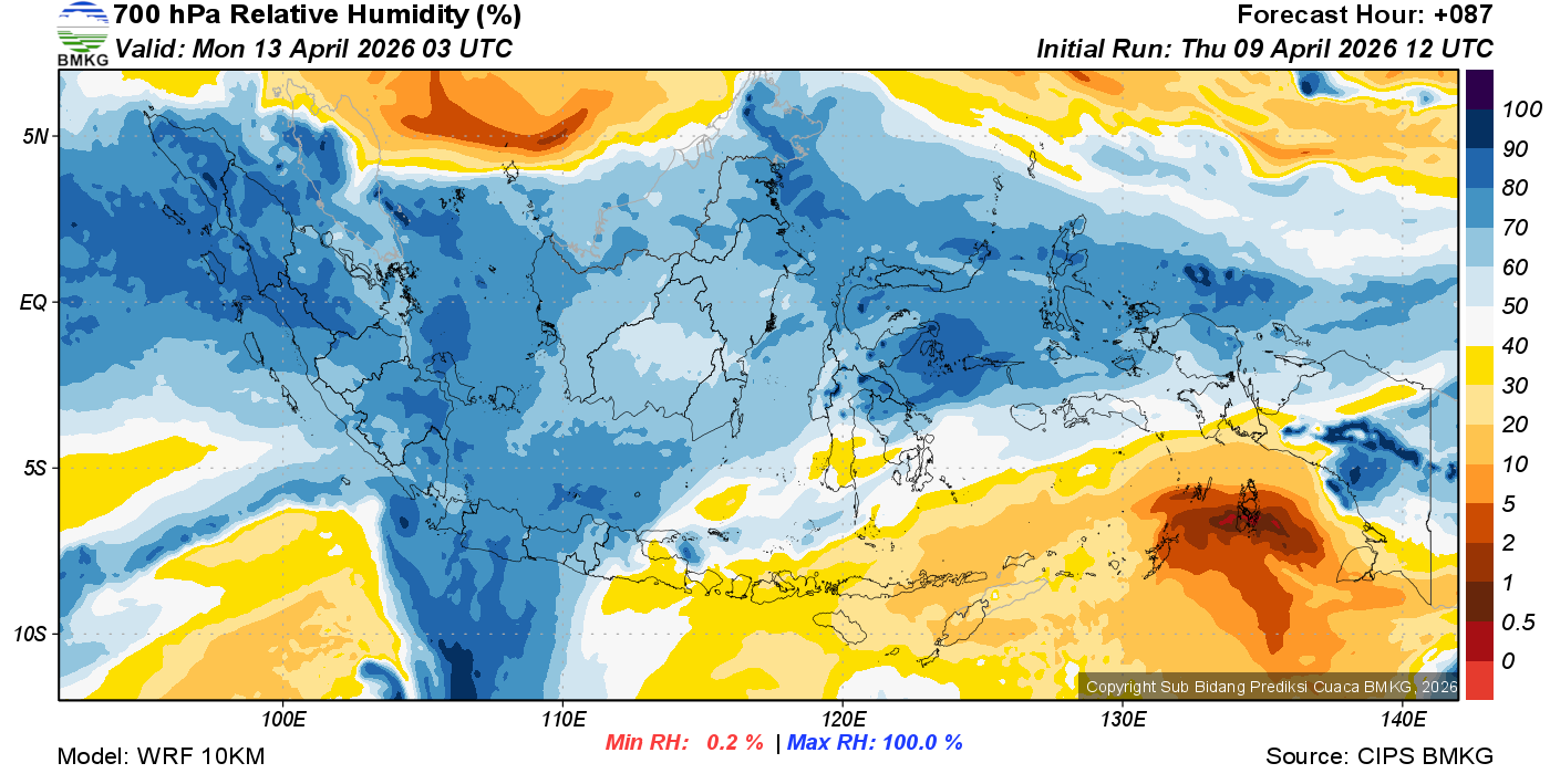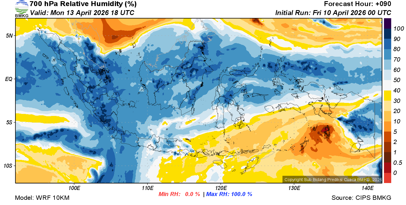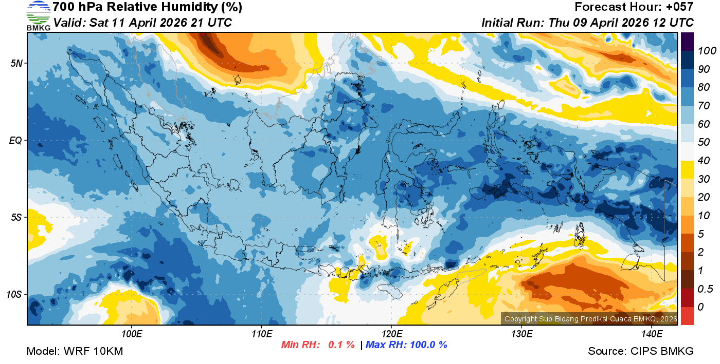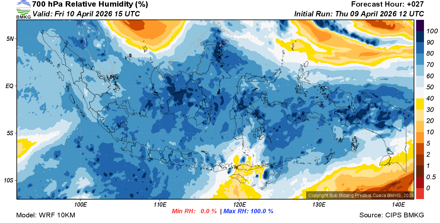 Prediksi Suhu Titik Embun 700 hPa NTT