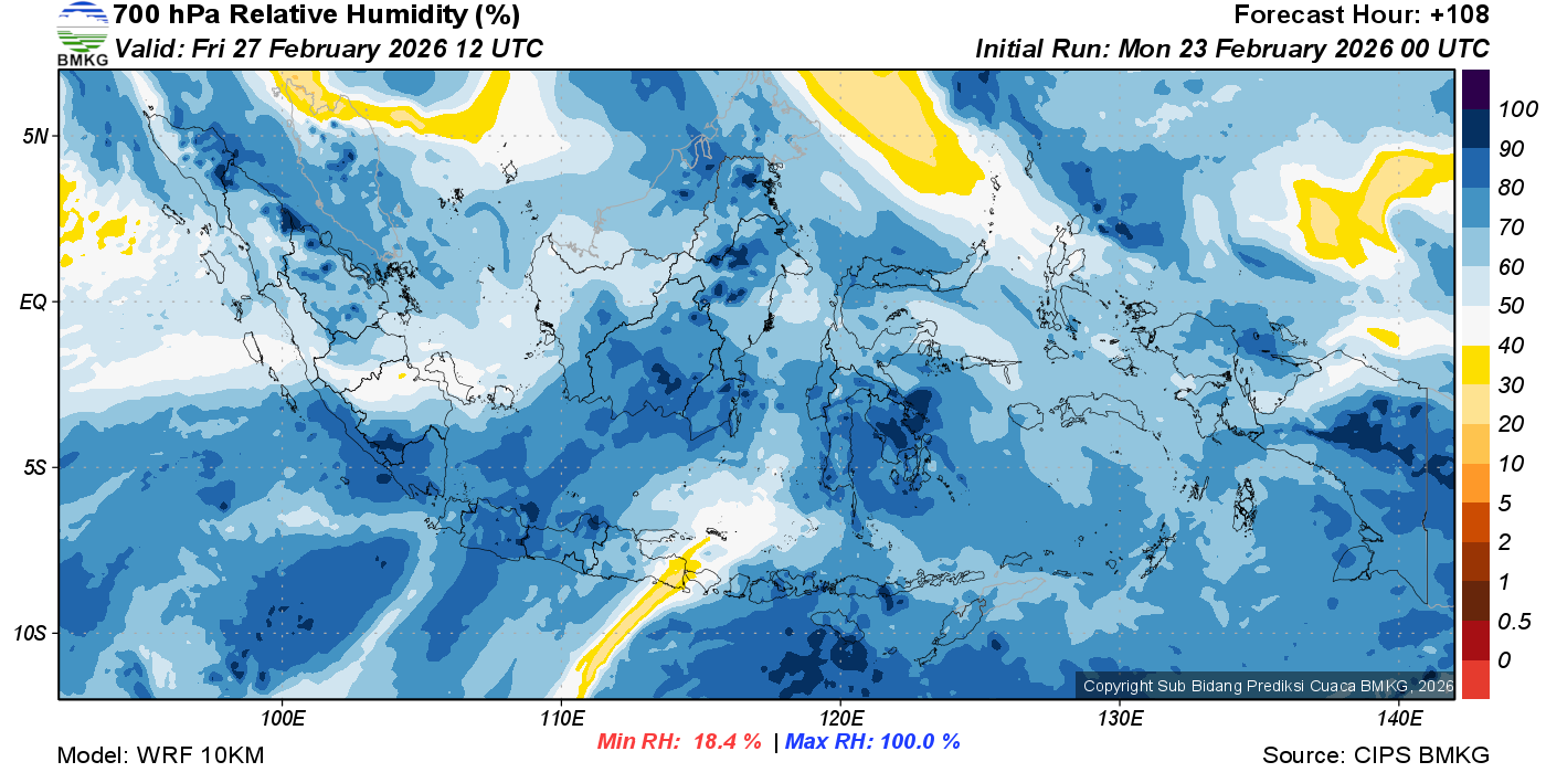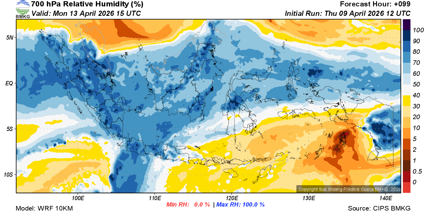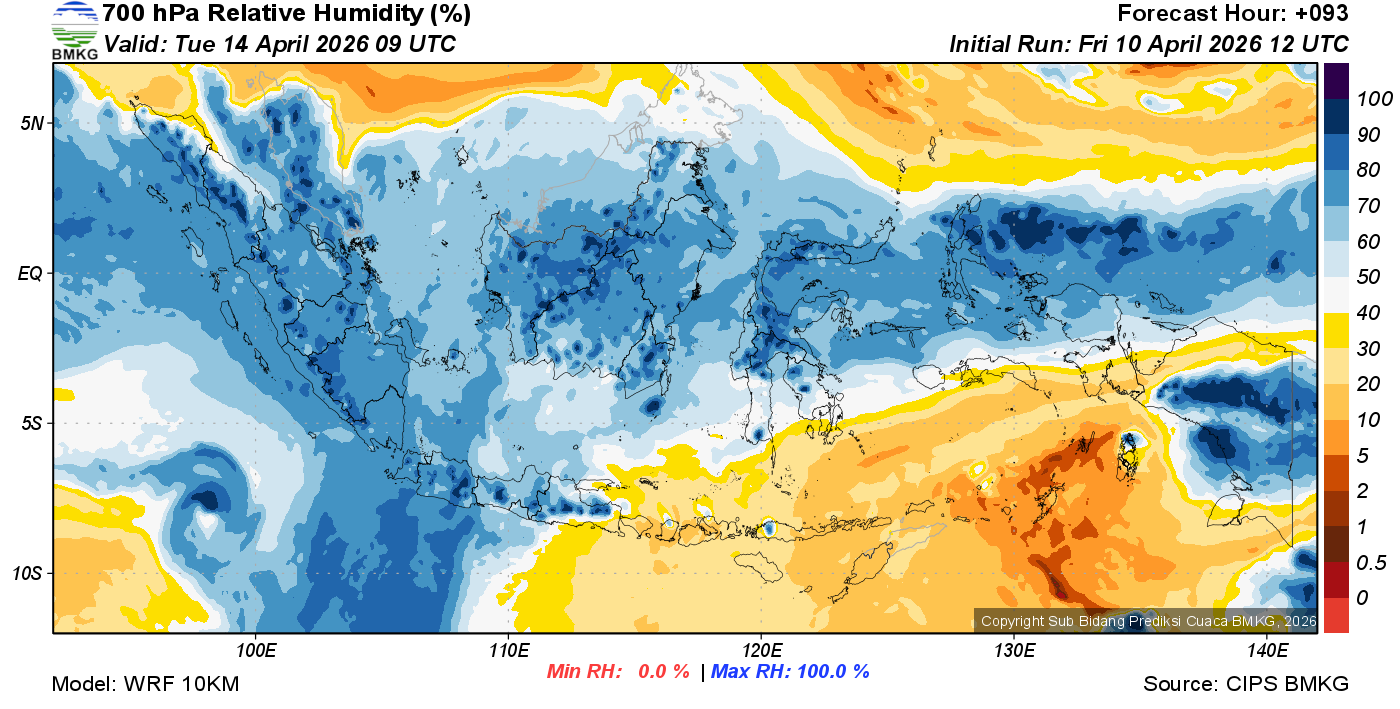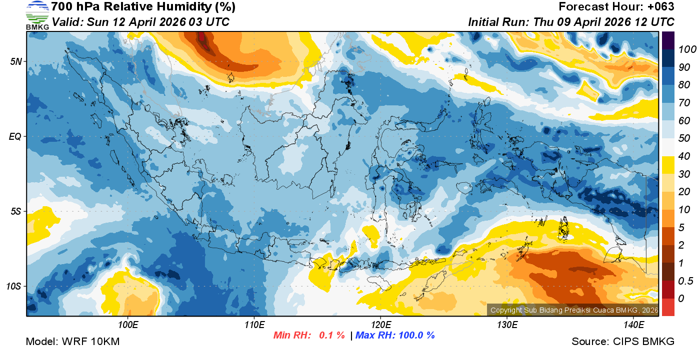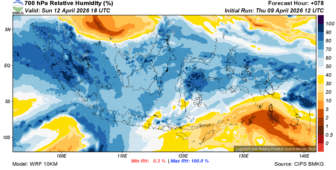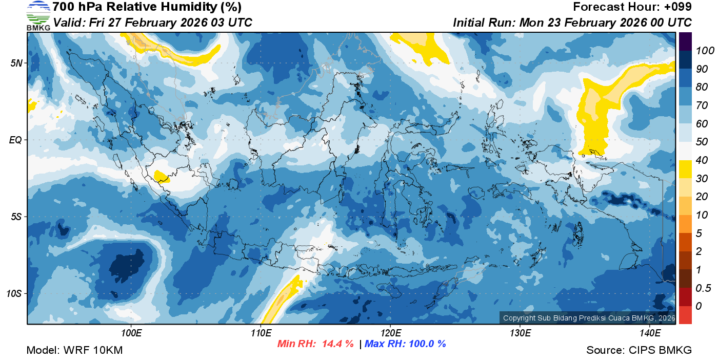 Prediksi Suhu Titik Embun 700 hPa NTT