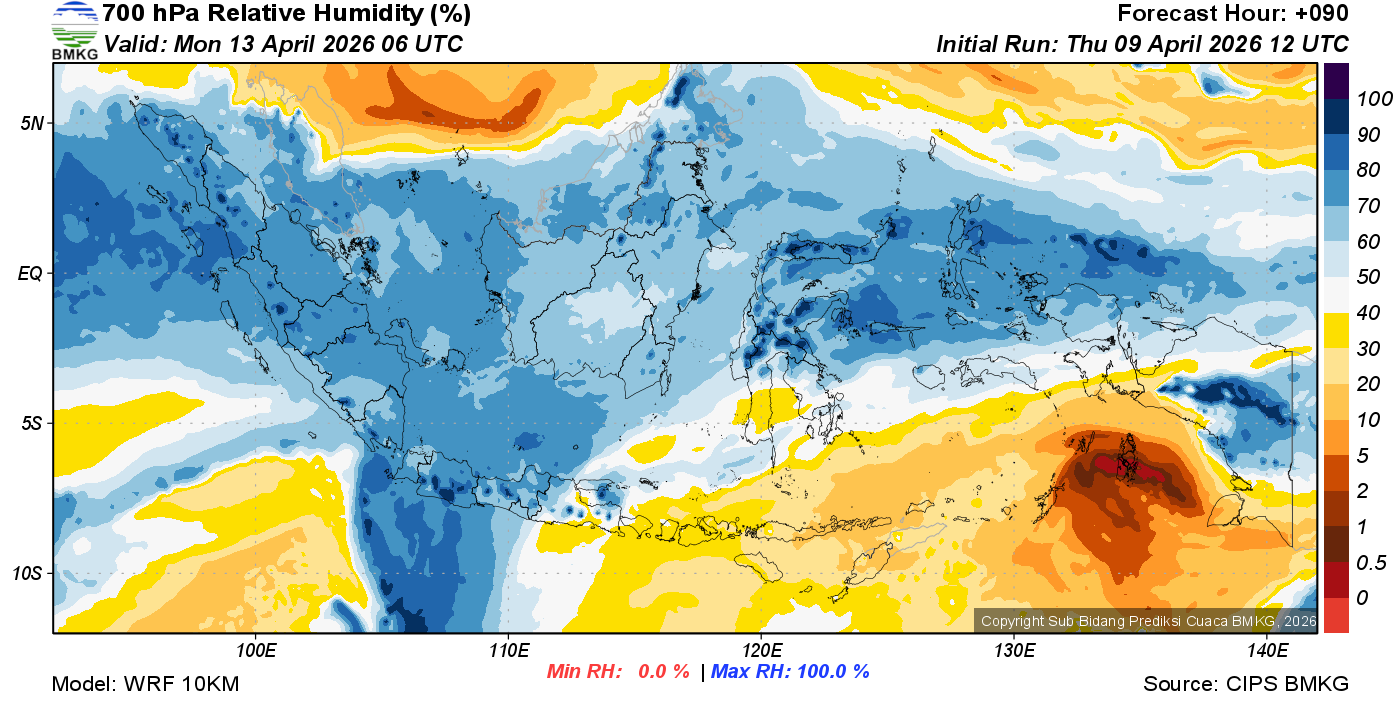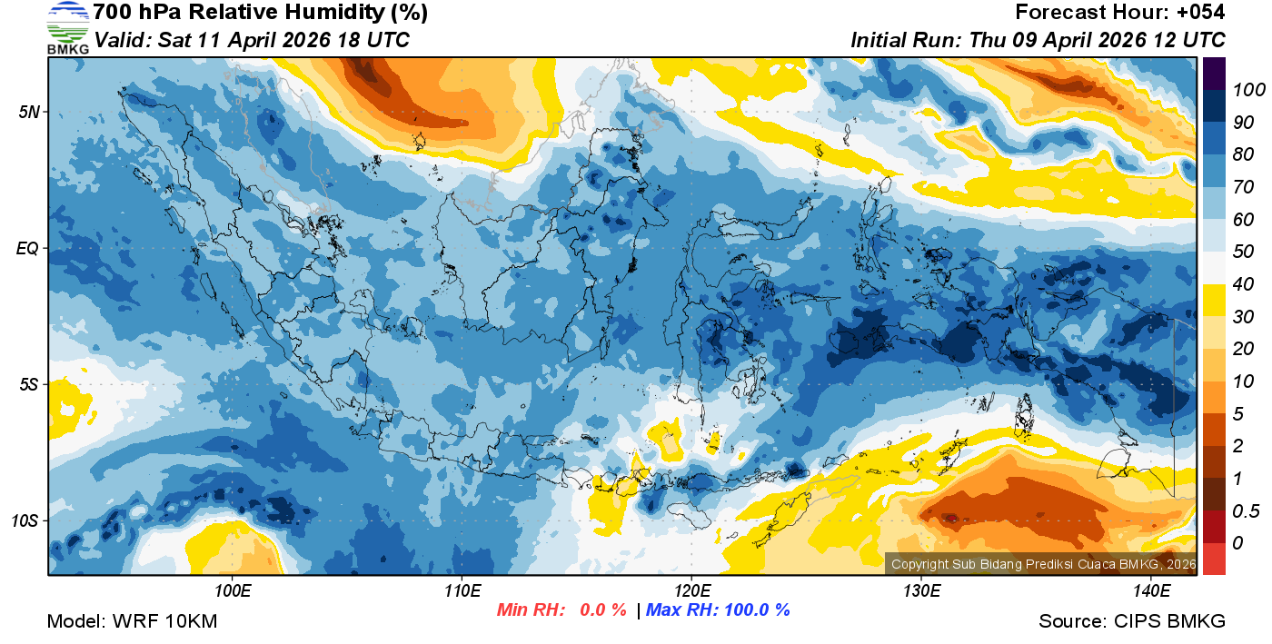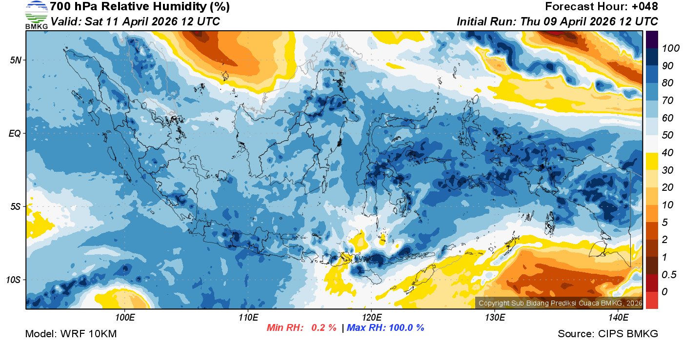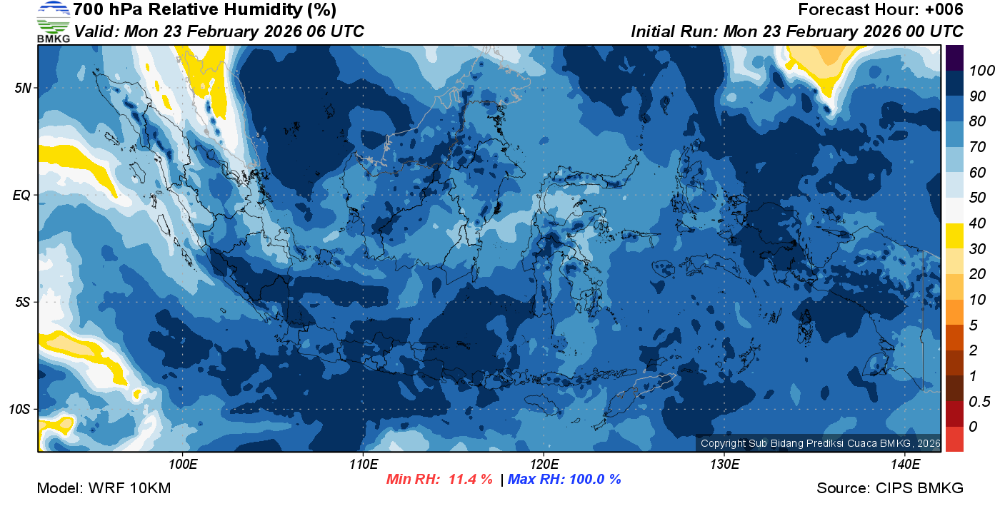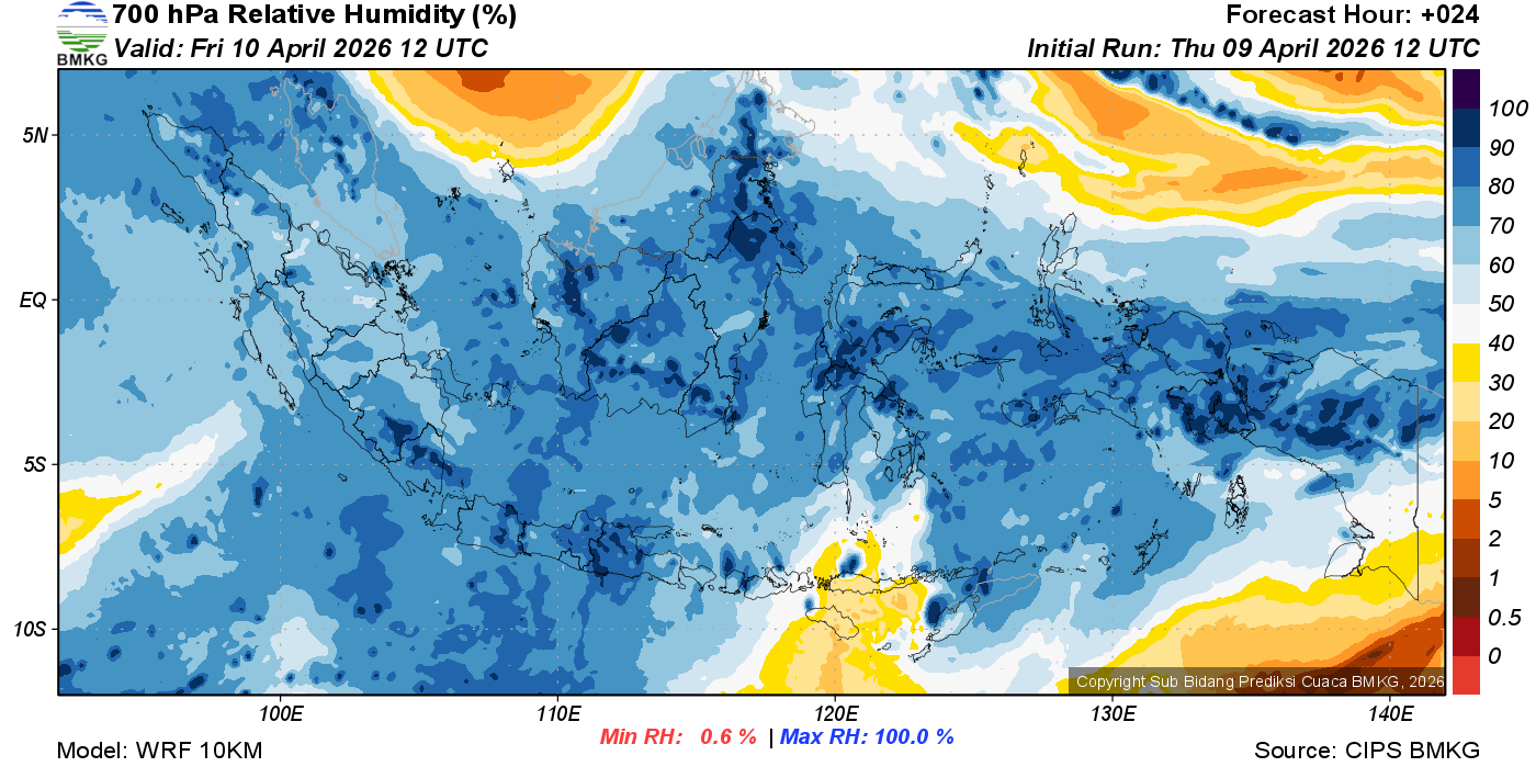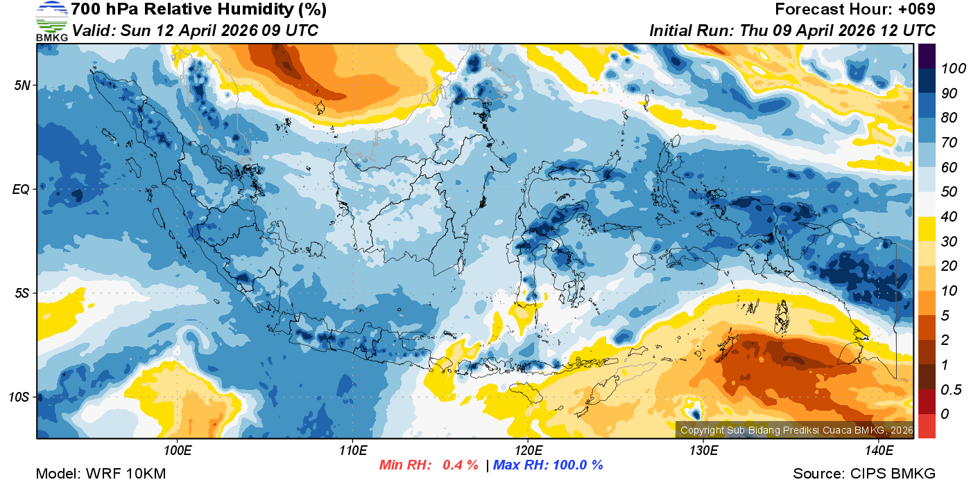 Prediksi Suhu Titik Embun 700 hPa NTT