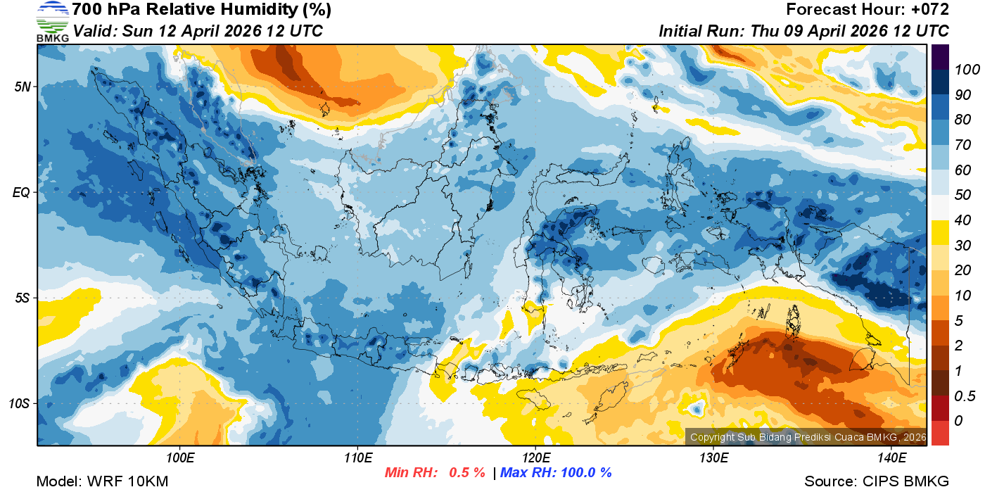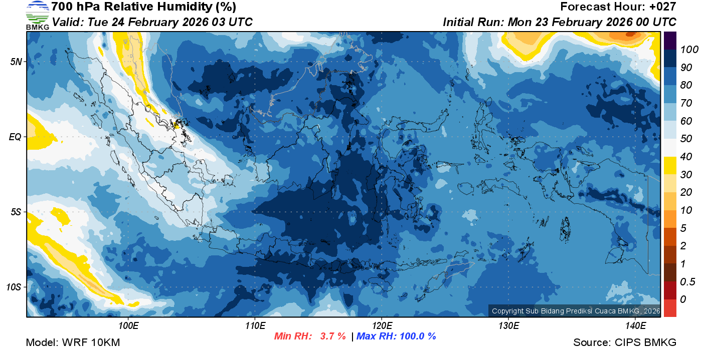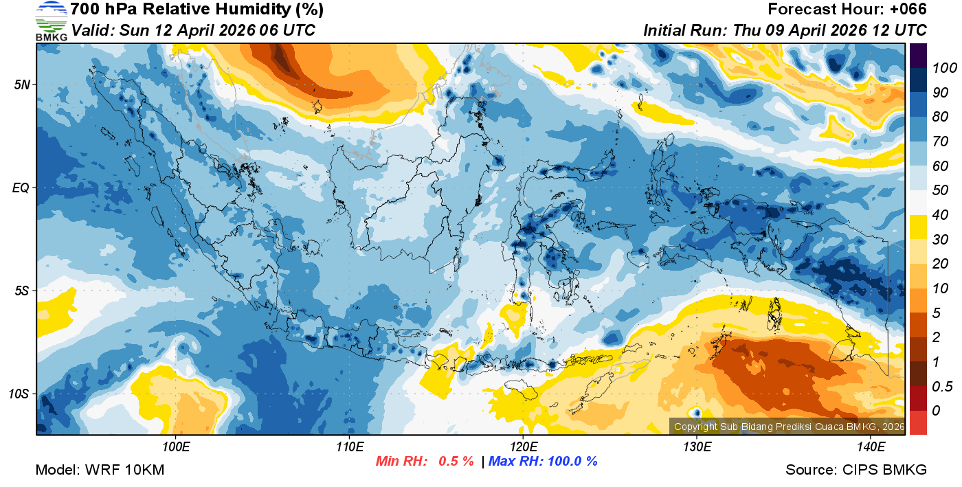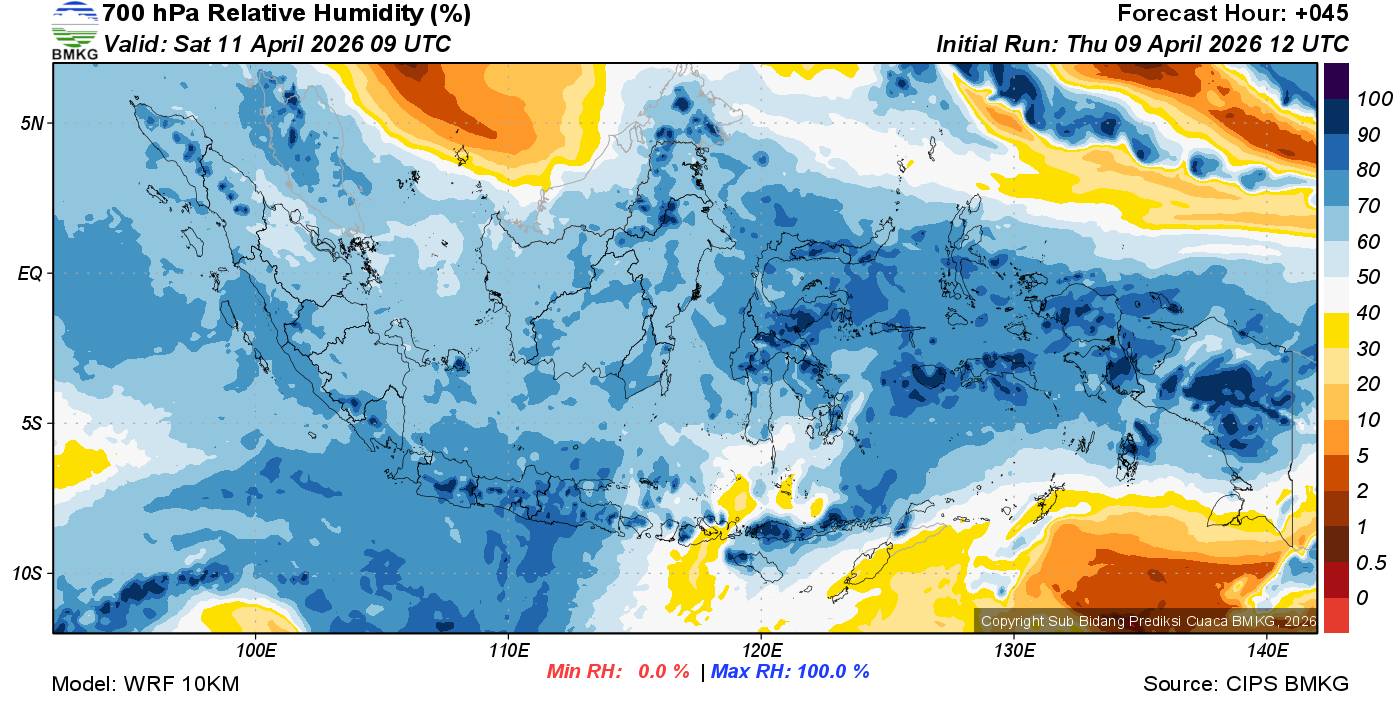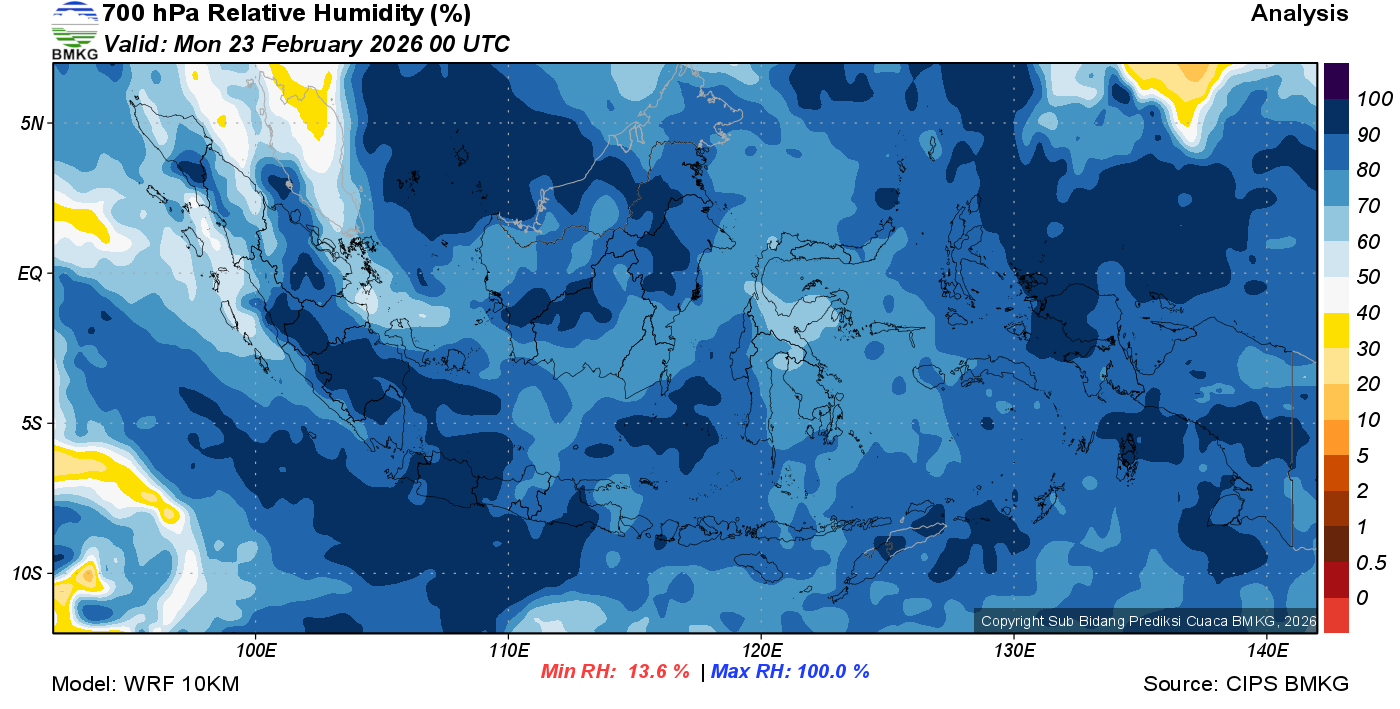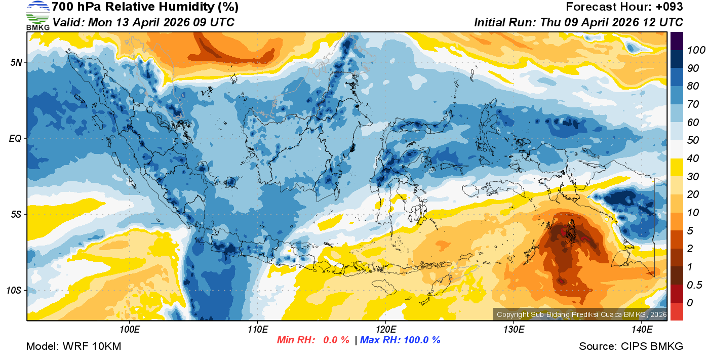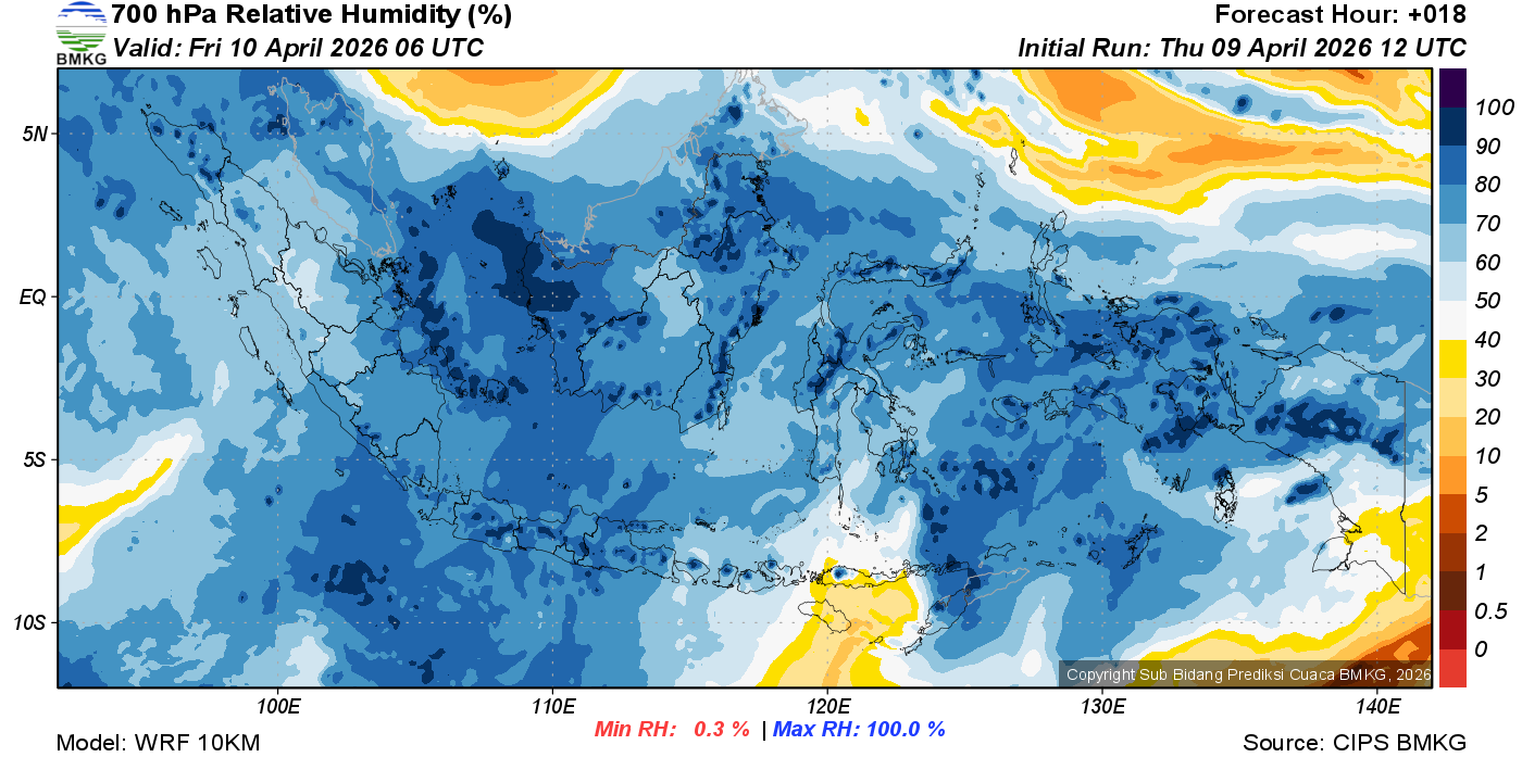 Prediksi Suhu Titik Embun 700 hPa NTT