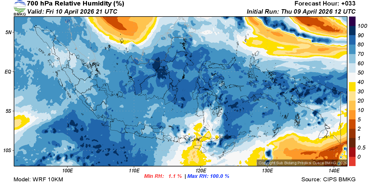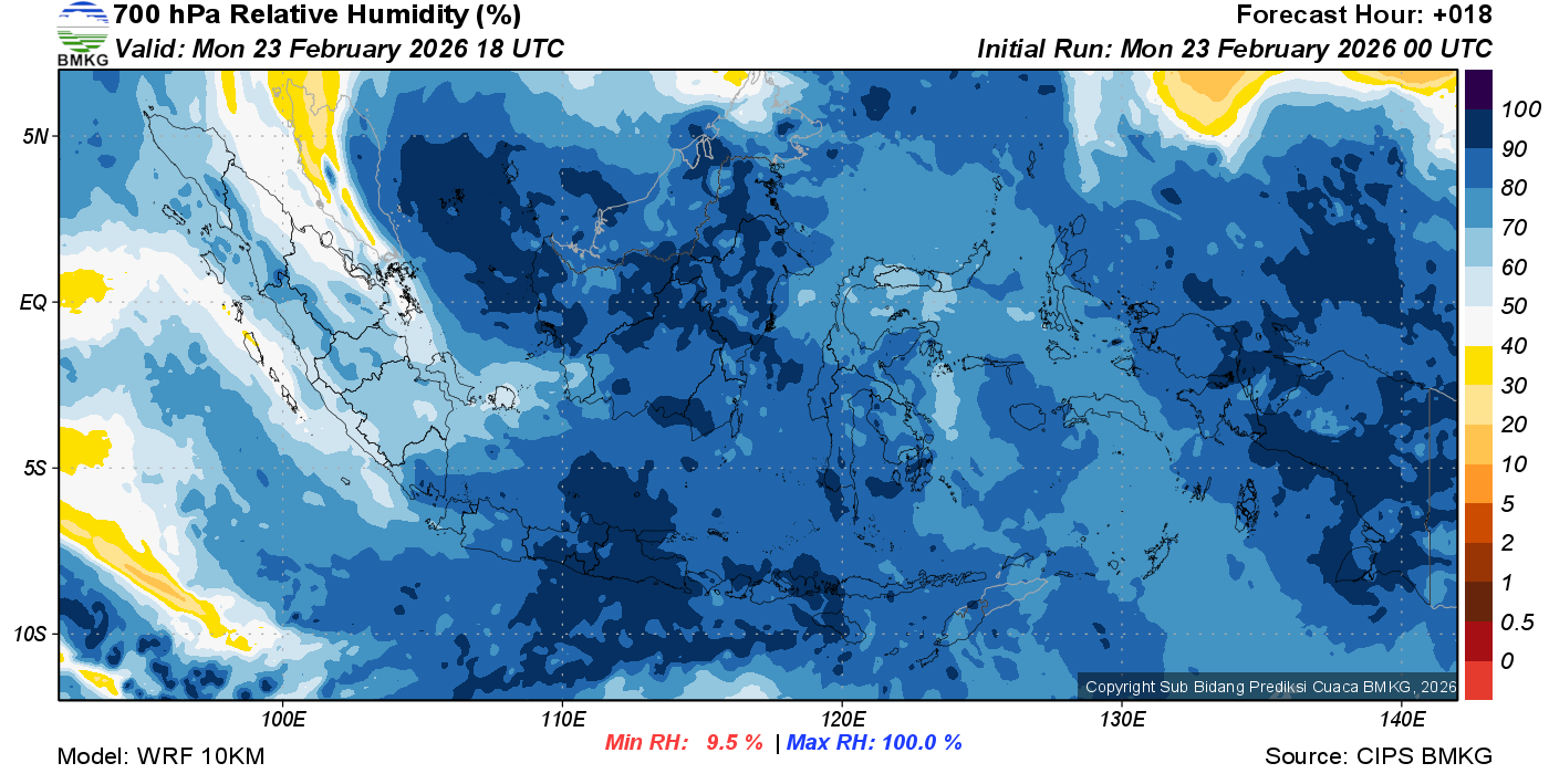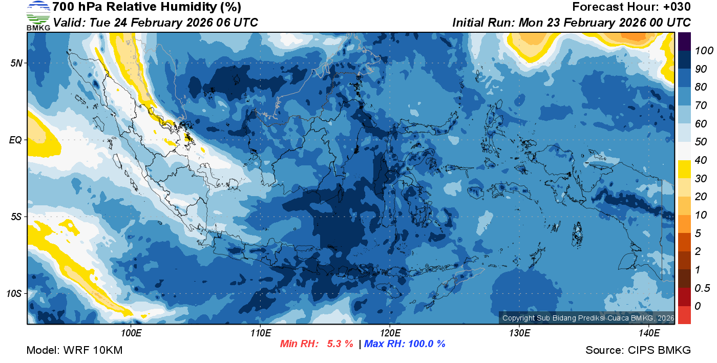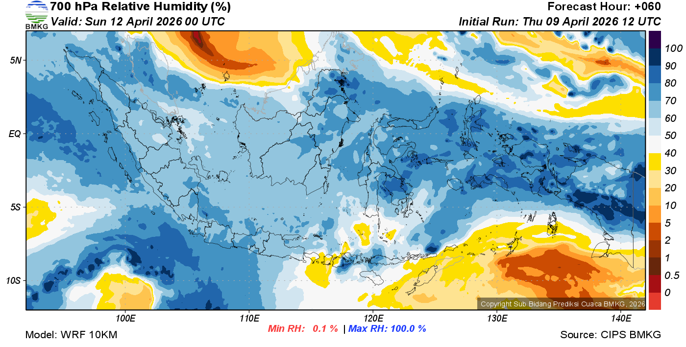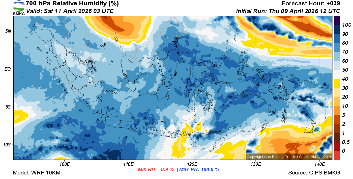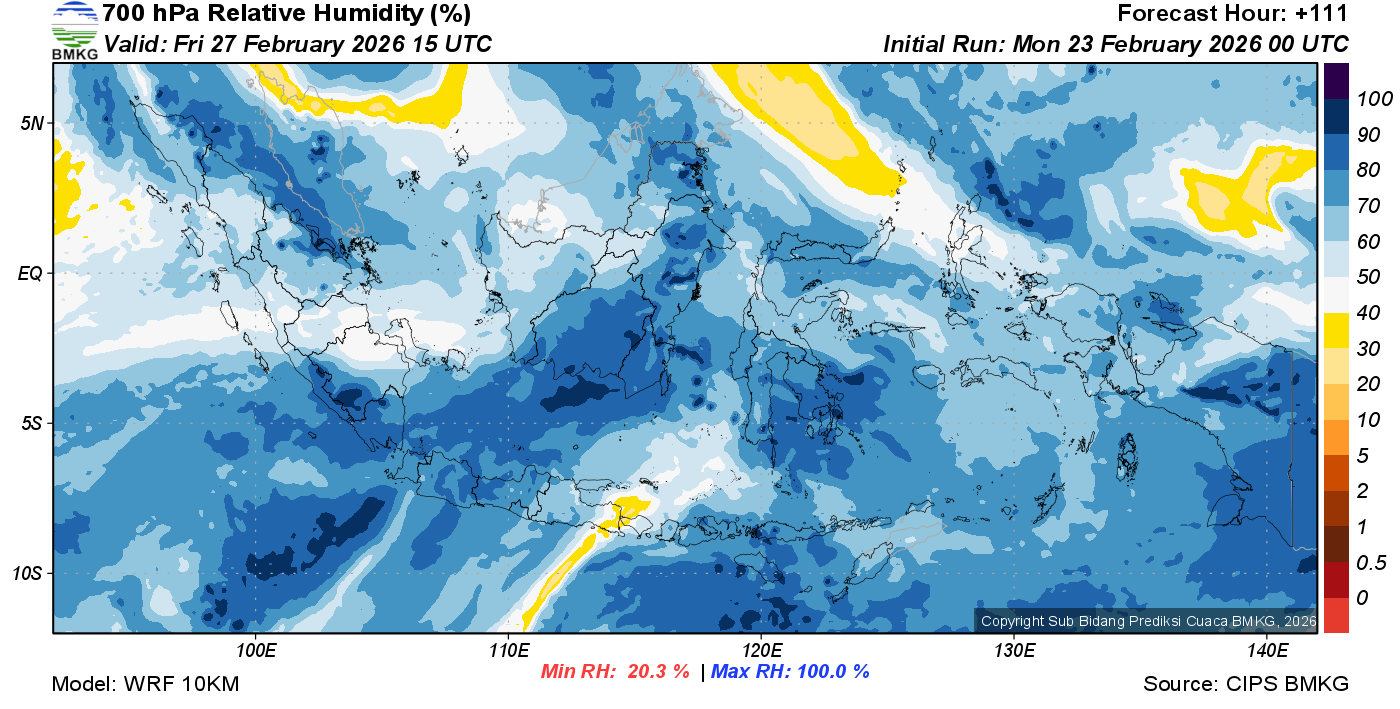 Prediksi Suhu Titik Embun 700 hPa NTT