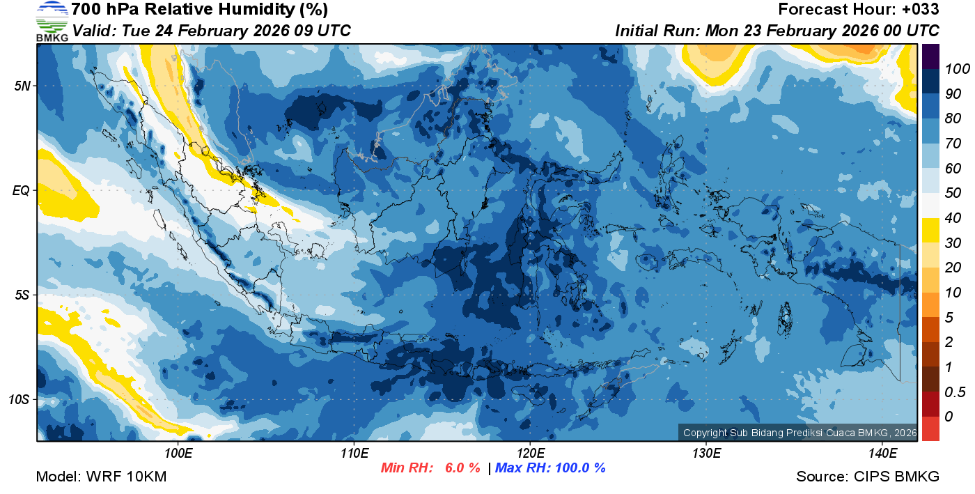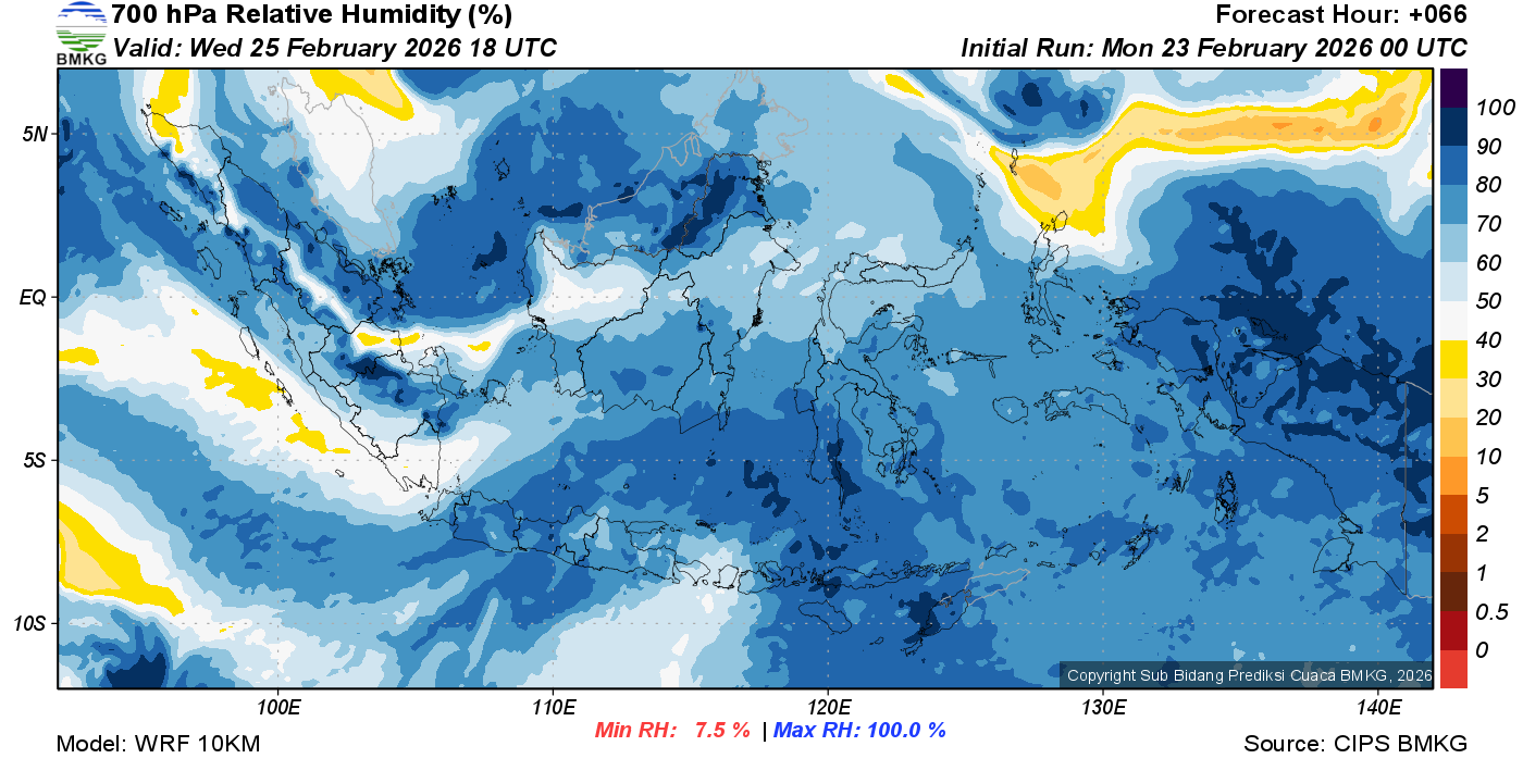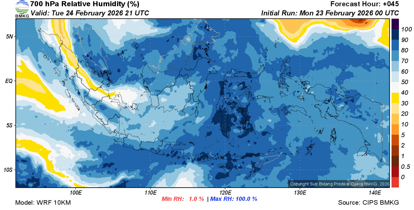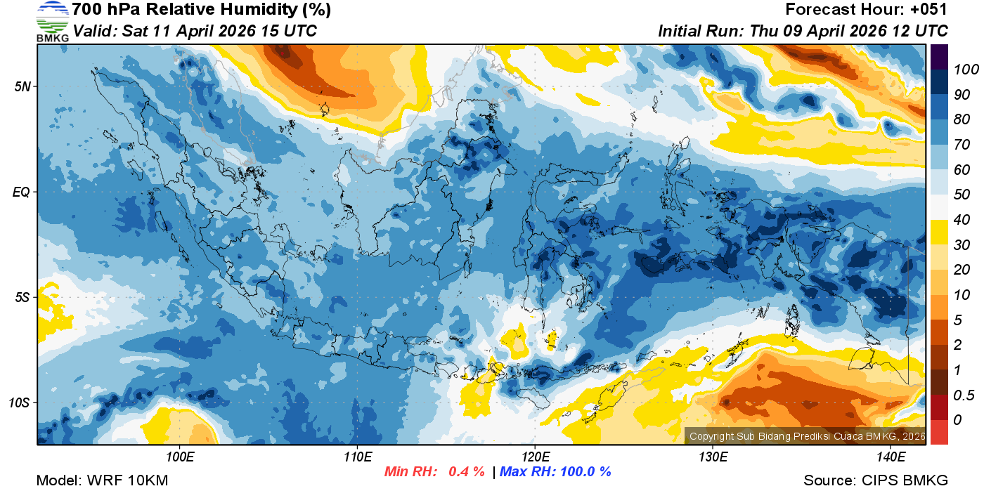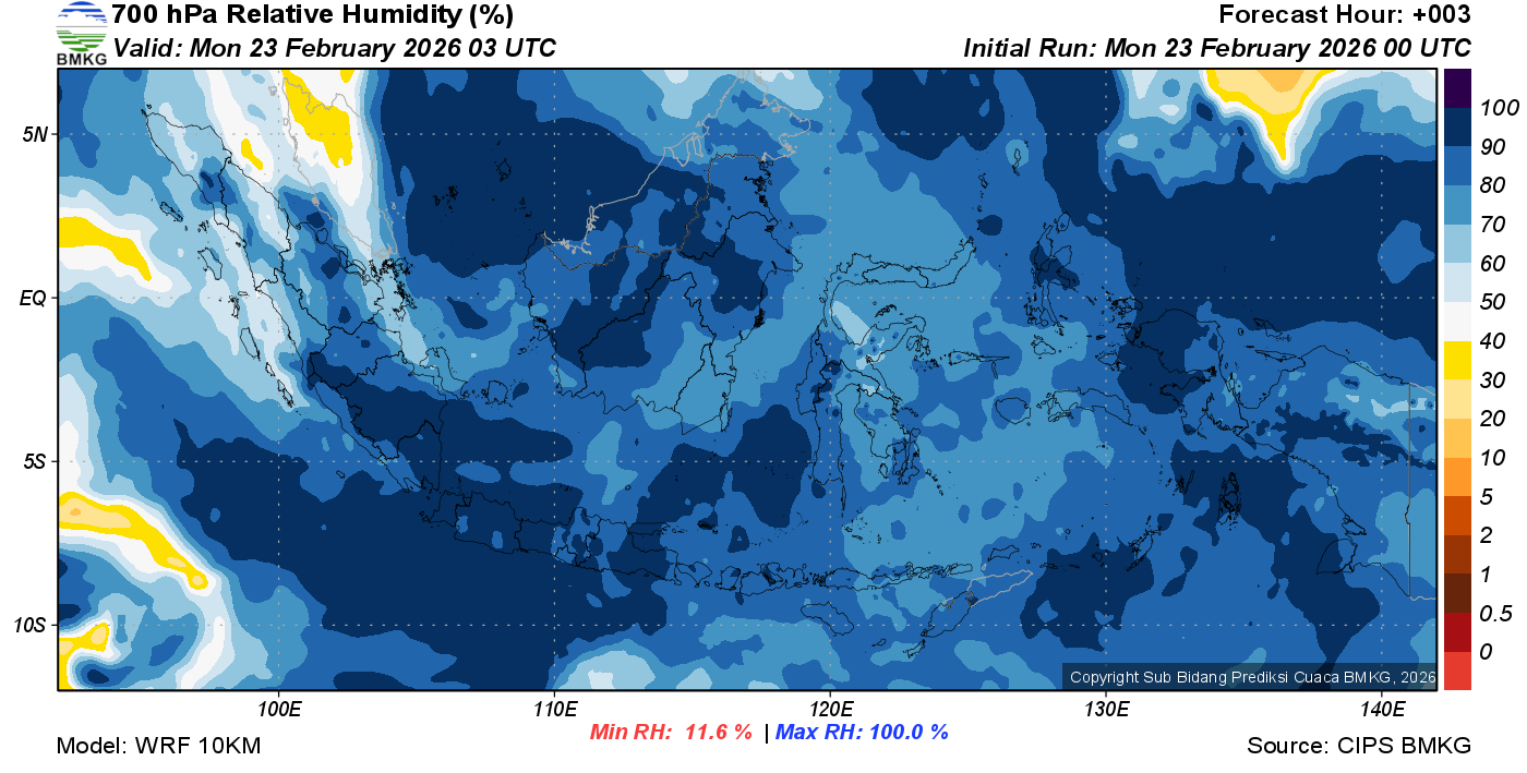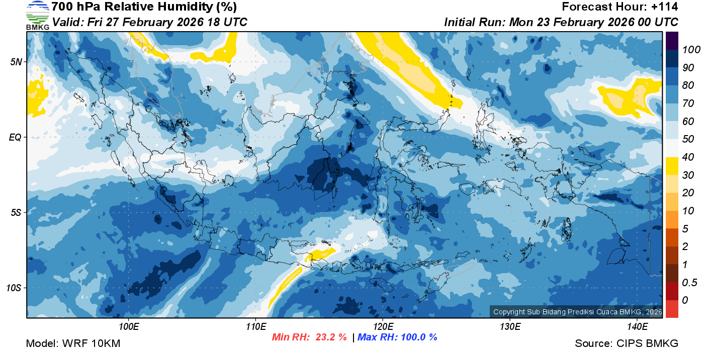 Prediksi Suhu Titik Embun 700 hPa NTT