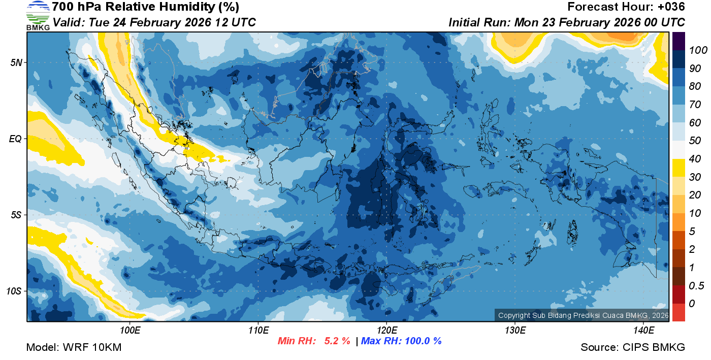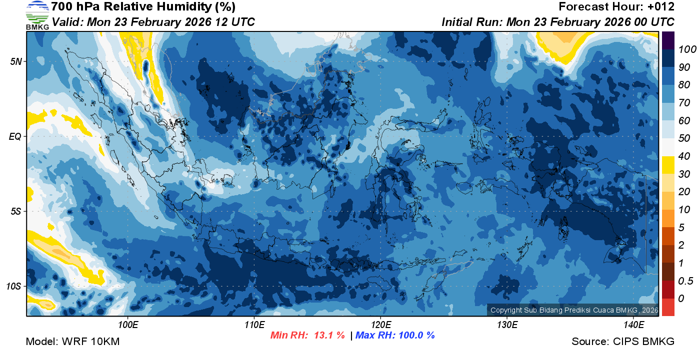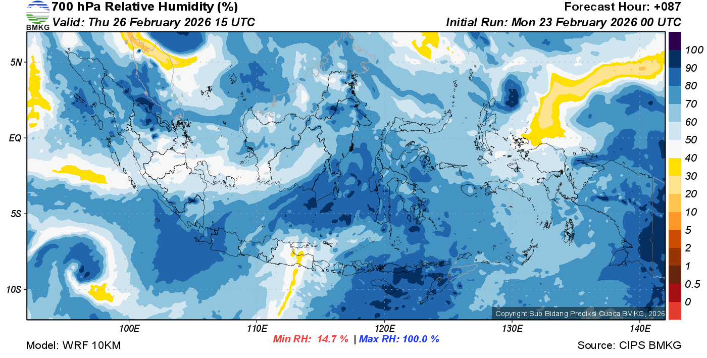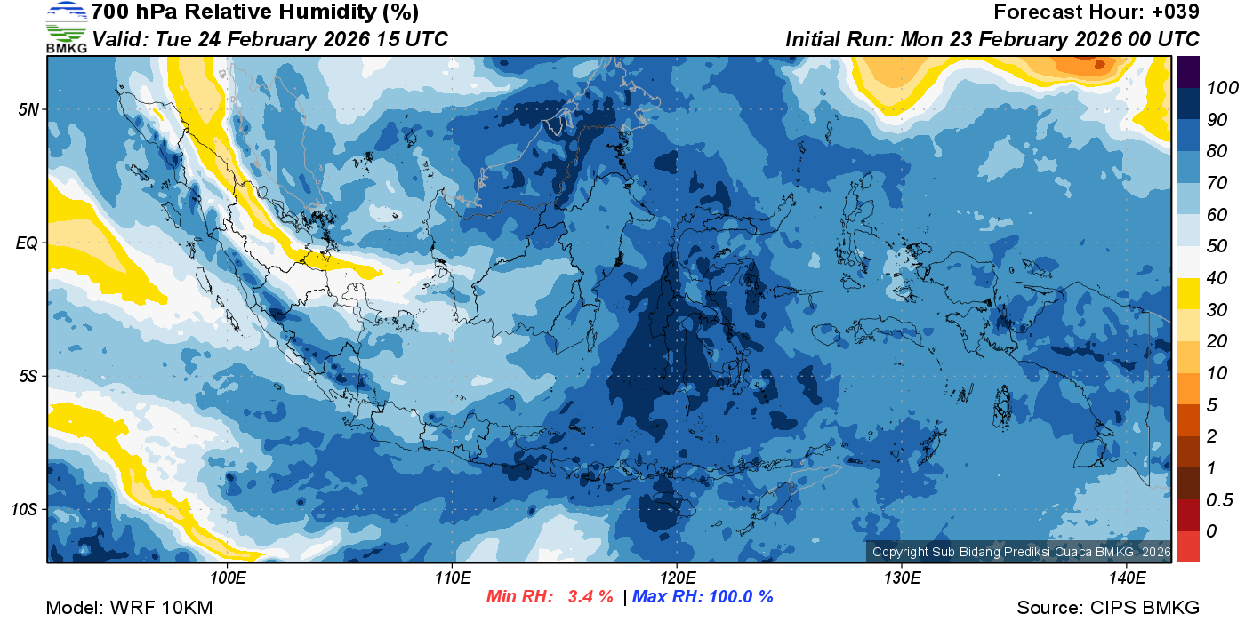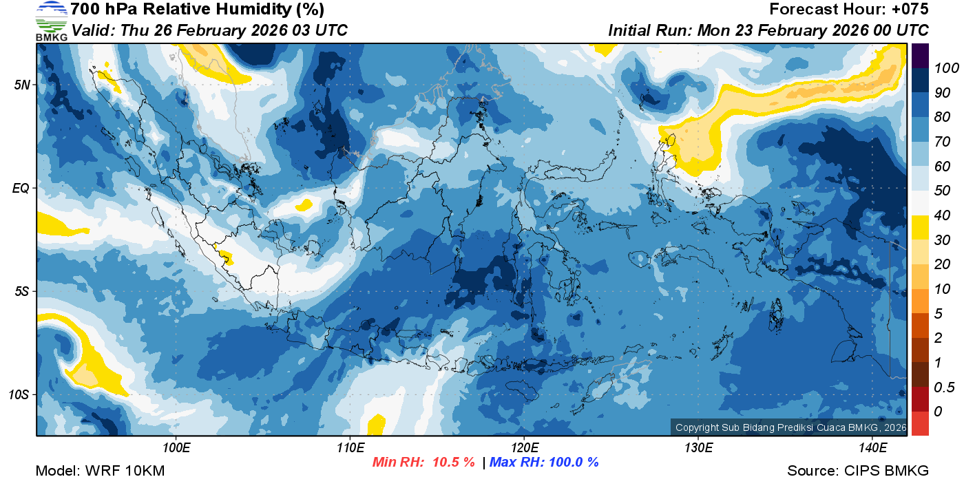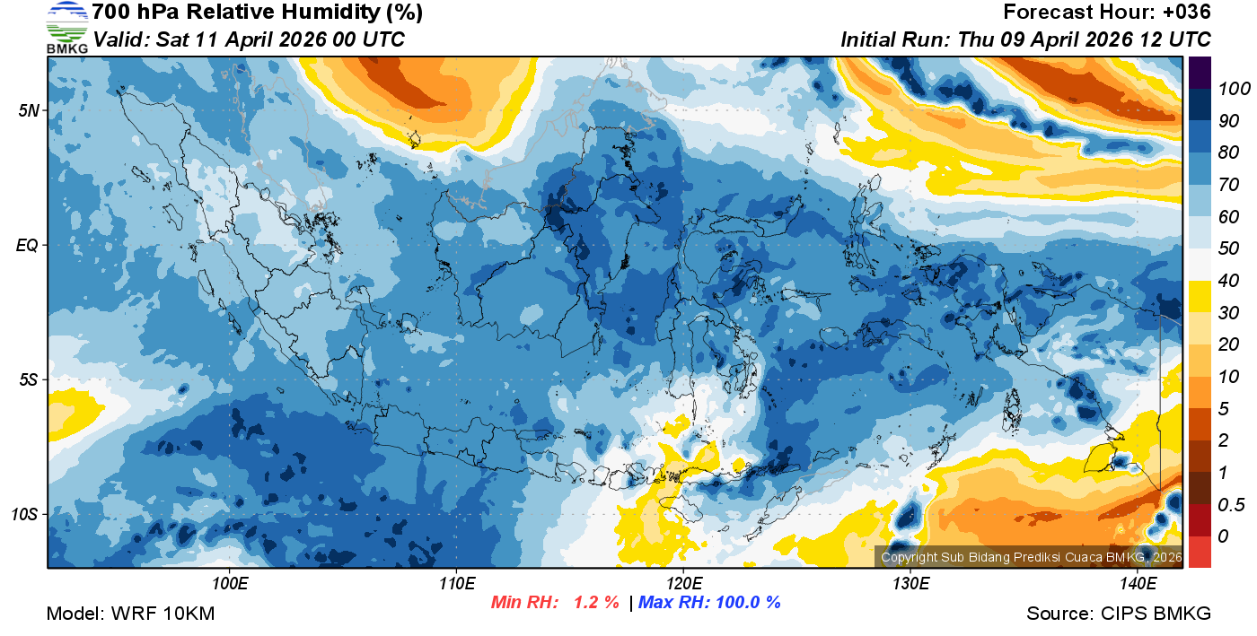 Prediksi Suhu Titik Embun 700 hPa NTT