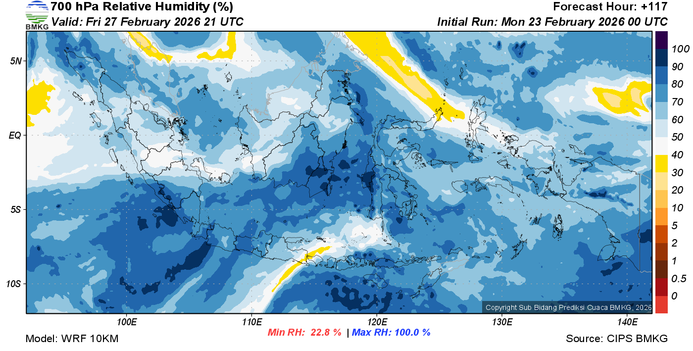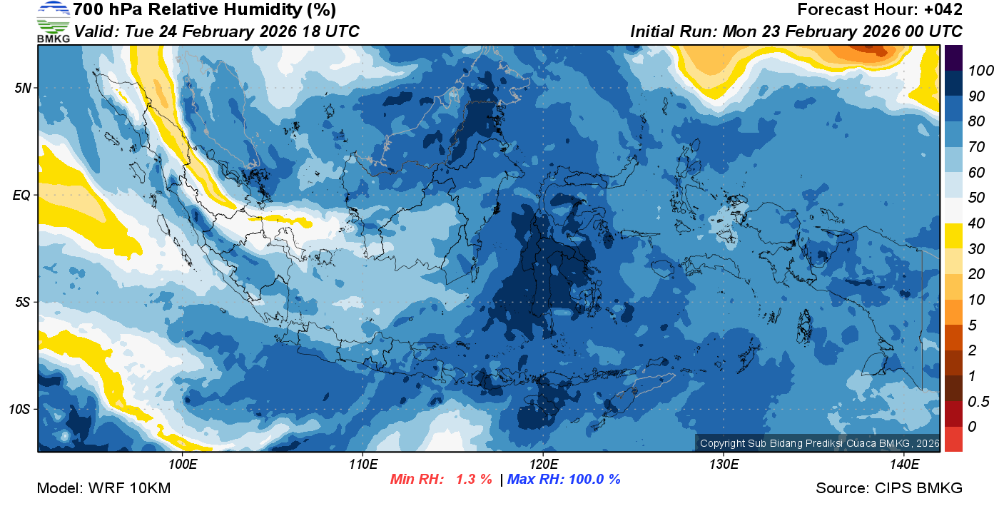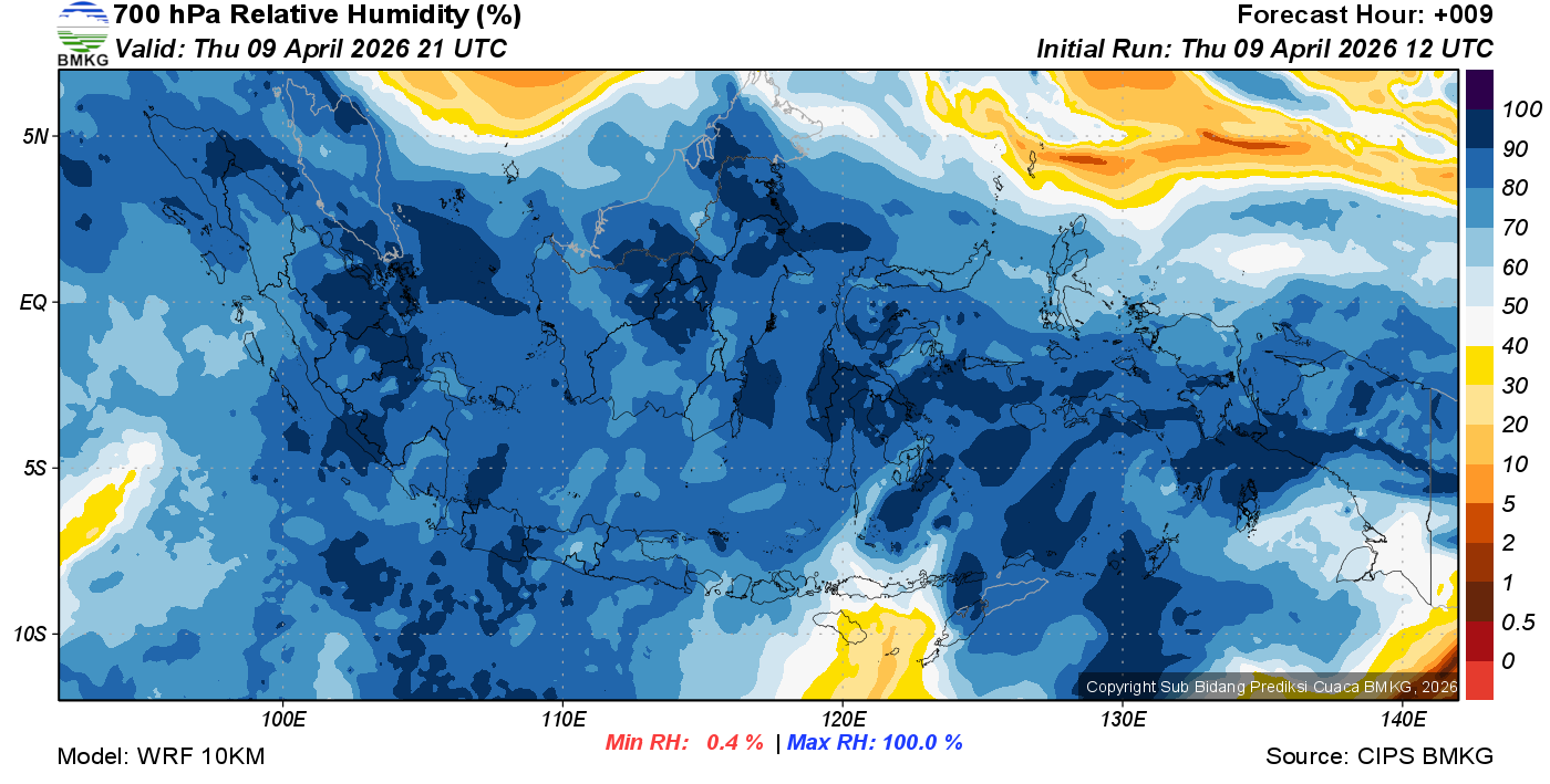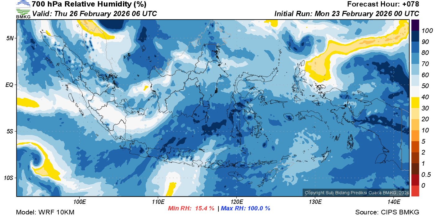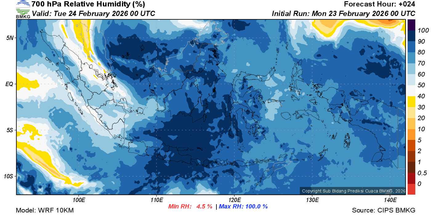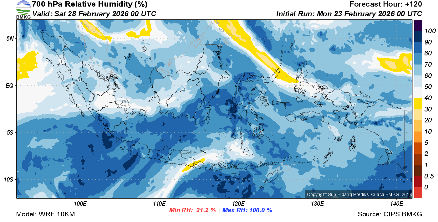 Prediksi Suhu Titik Embun 700 hPa NTT