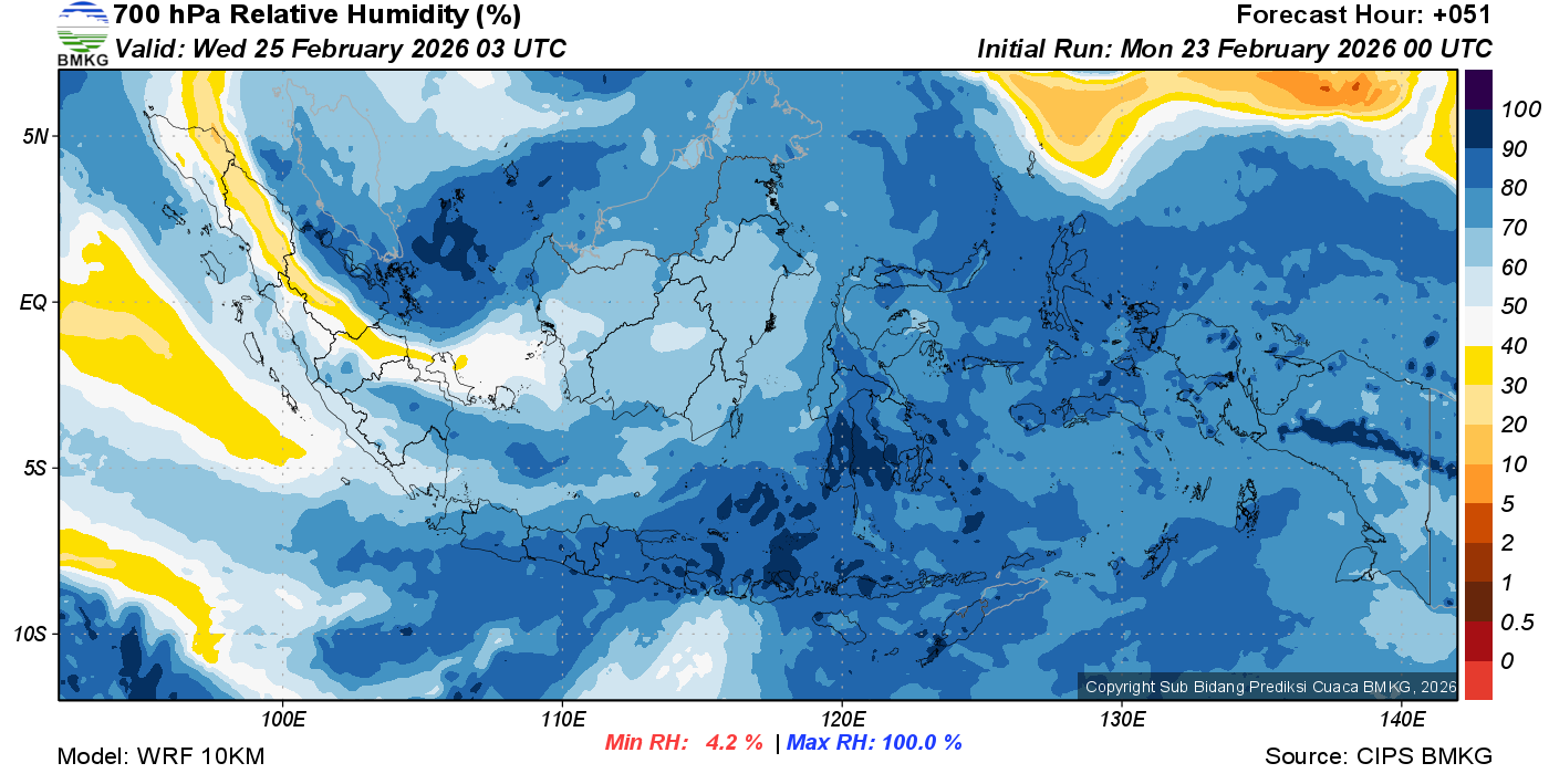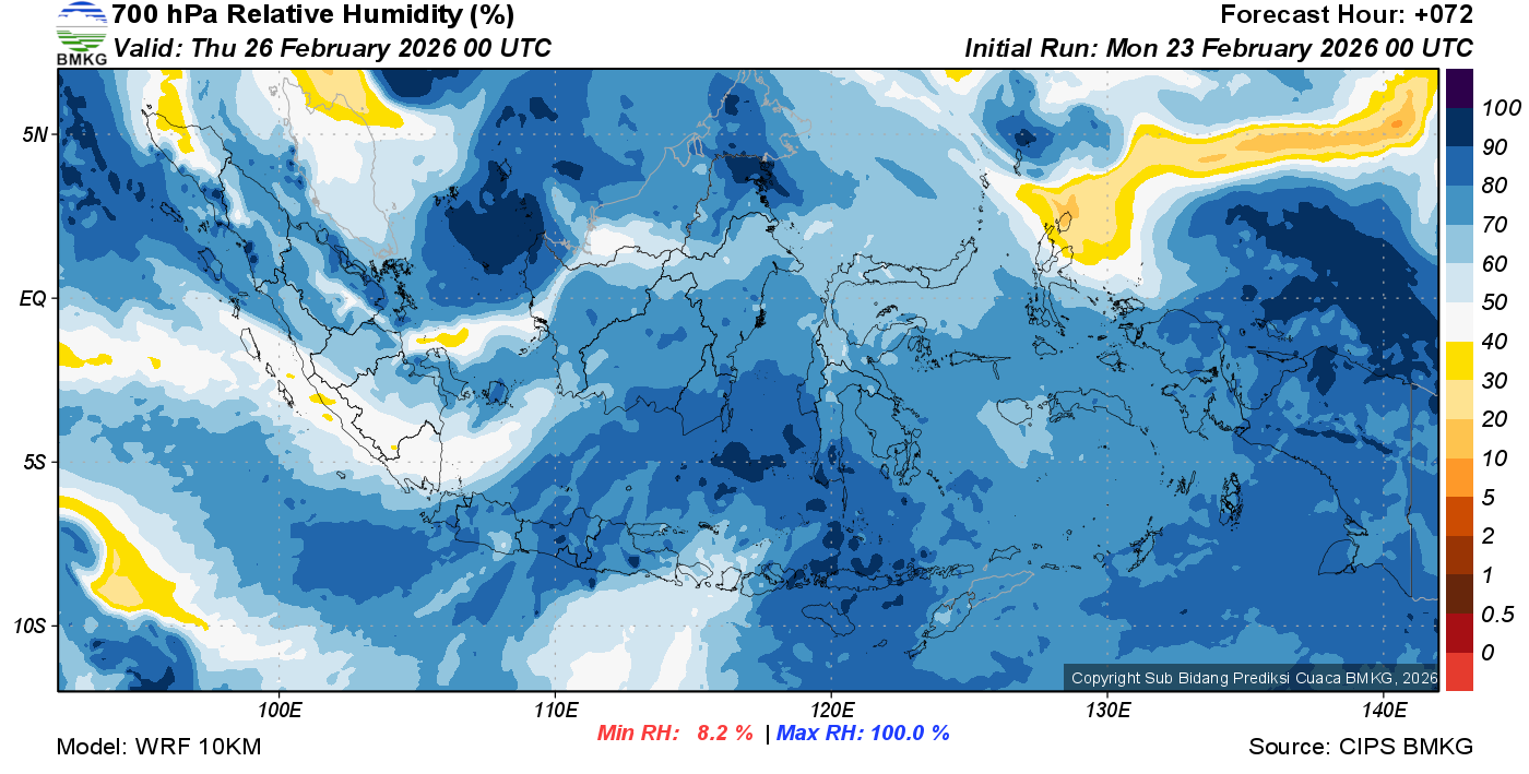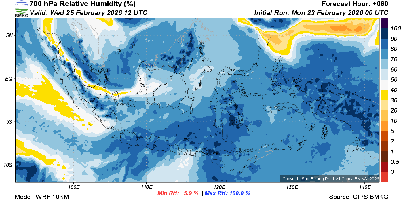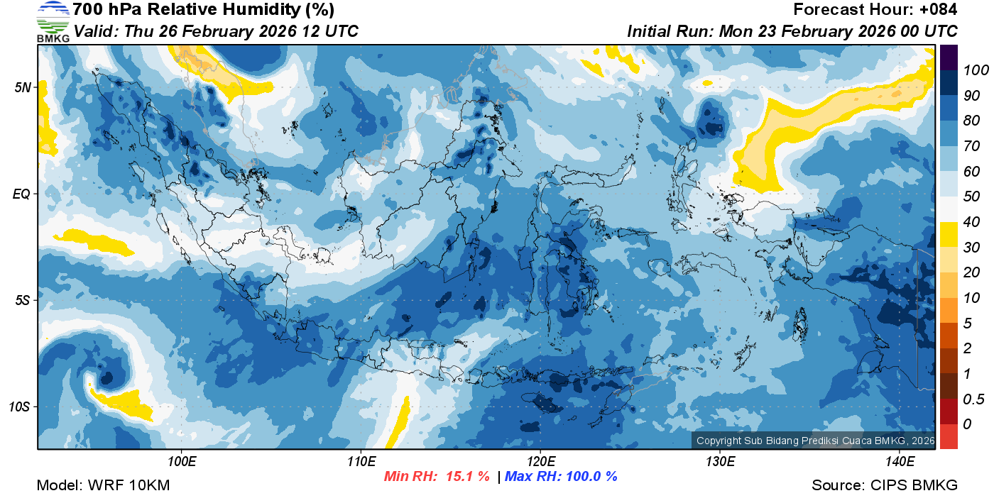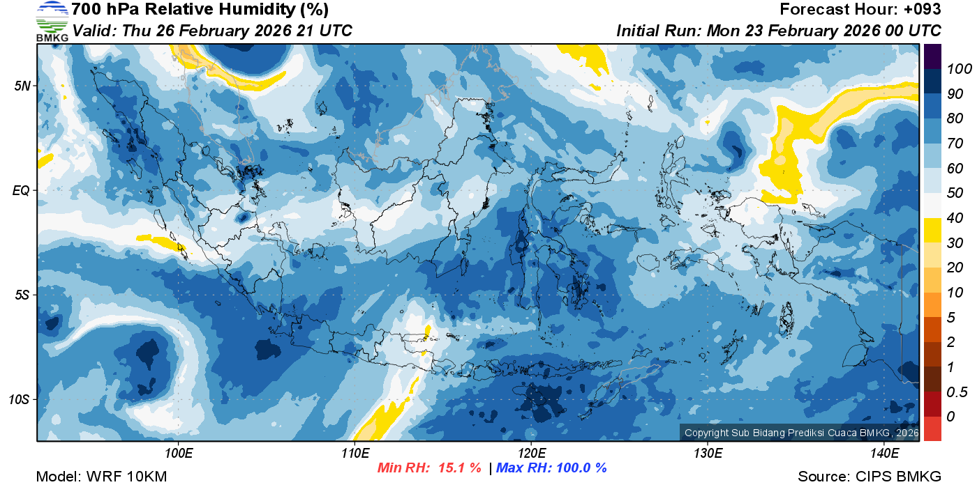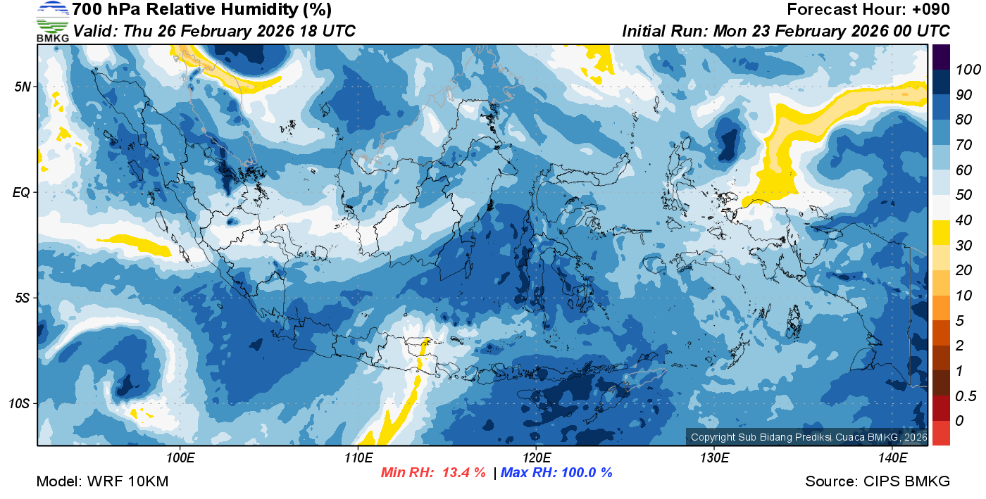 Prediksi Suhu Titik Embun 700 hPa NTT