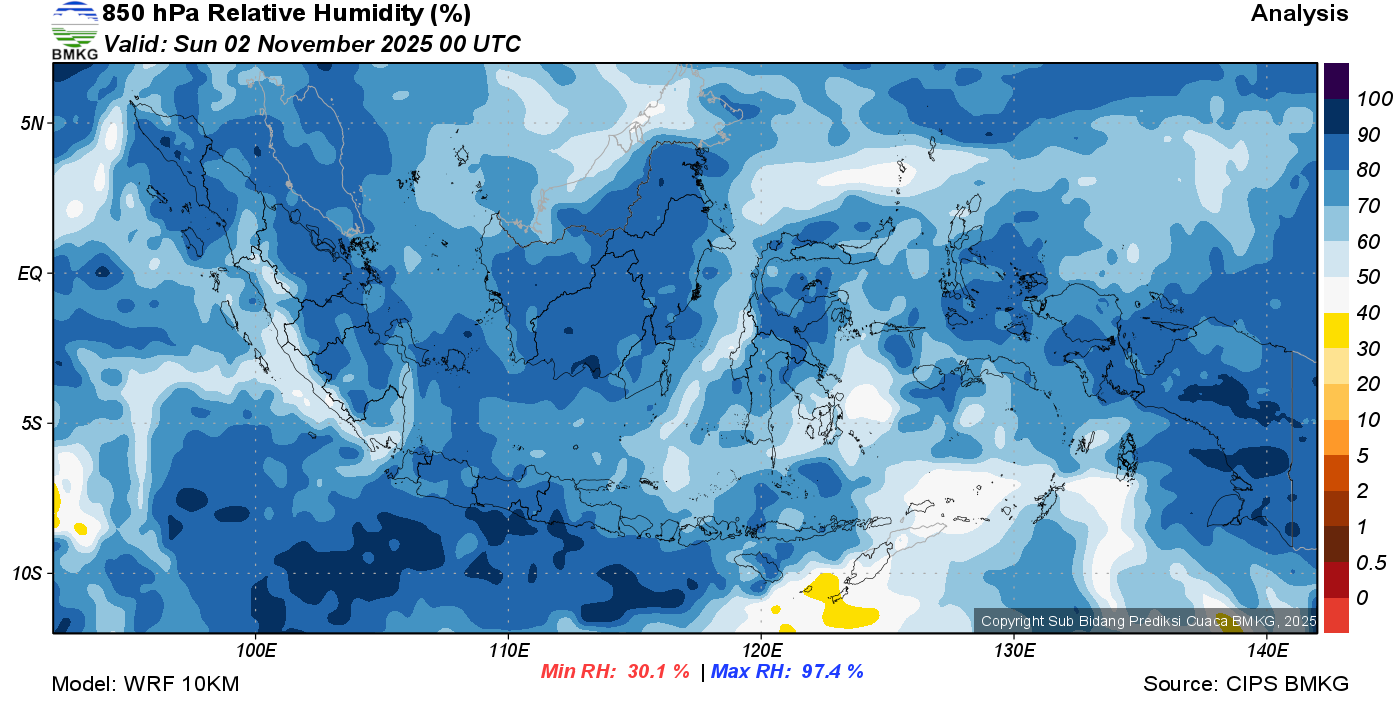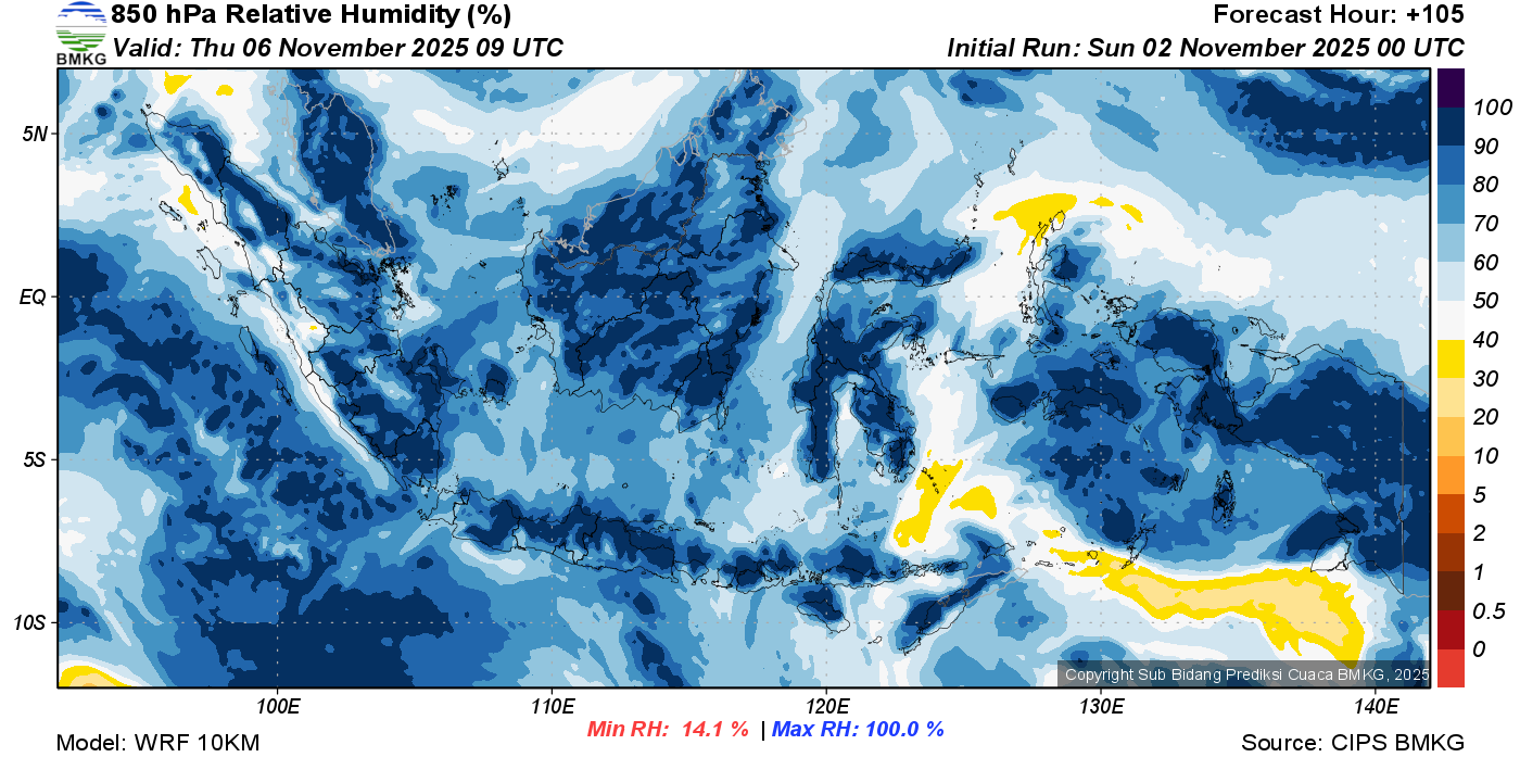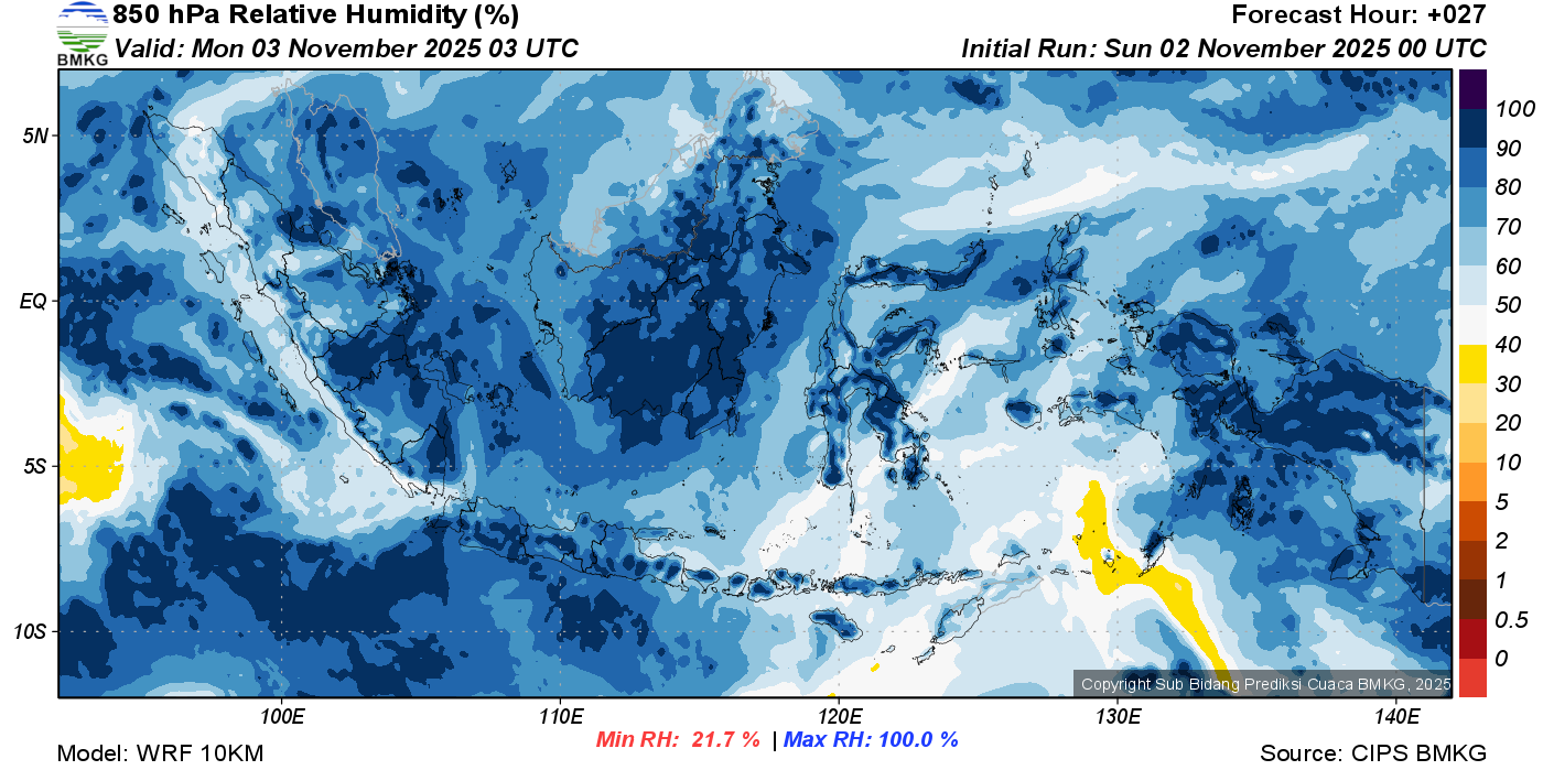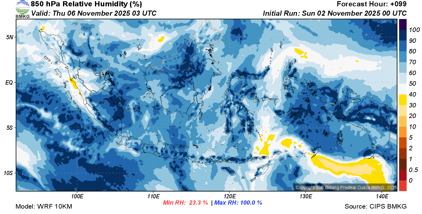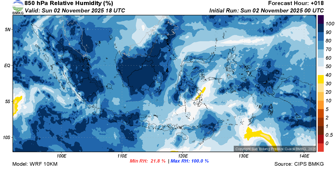 Prediksi Suhu Titik Embun 850 hPa NTT