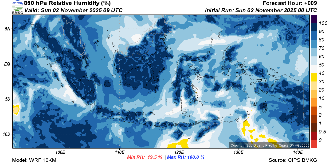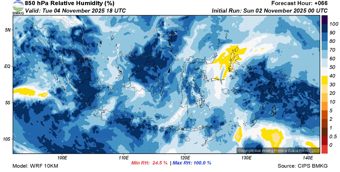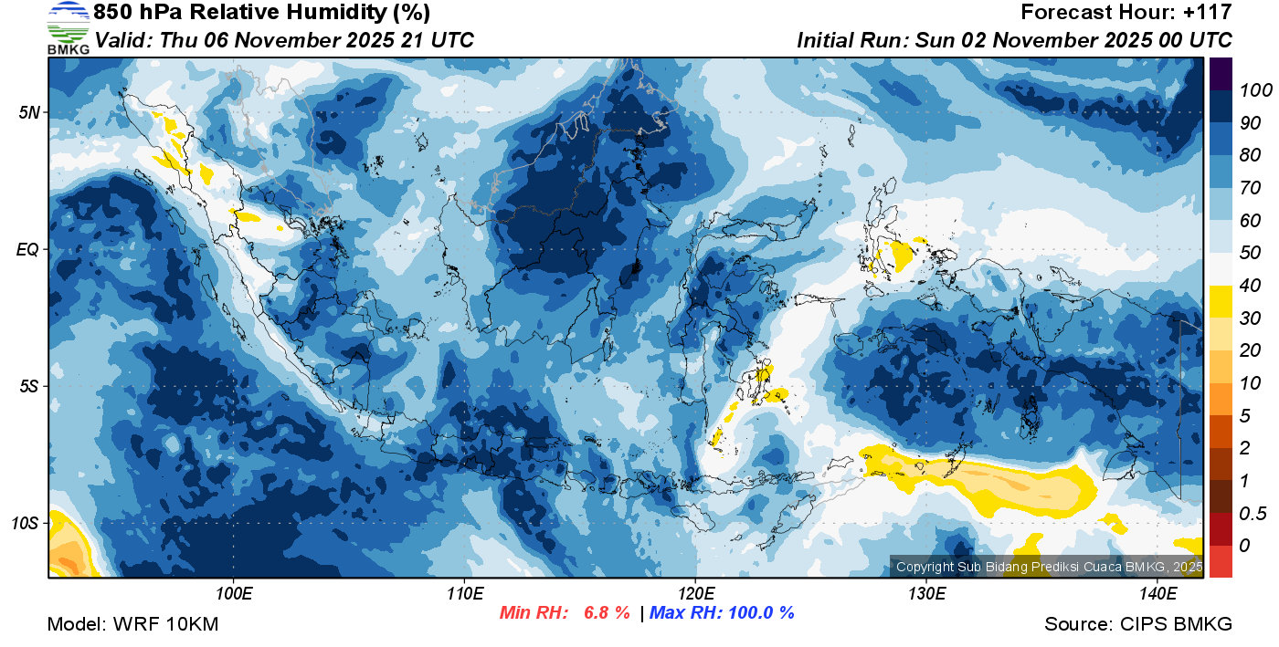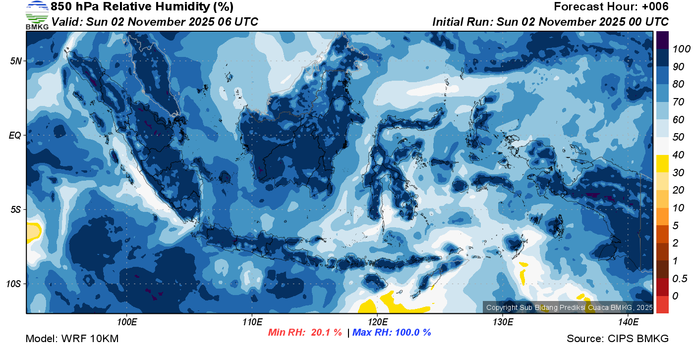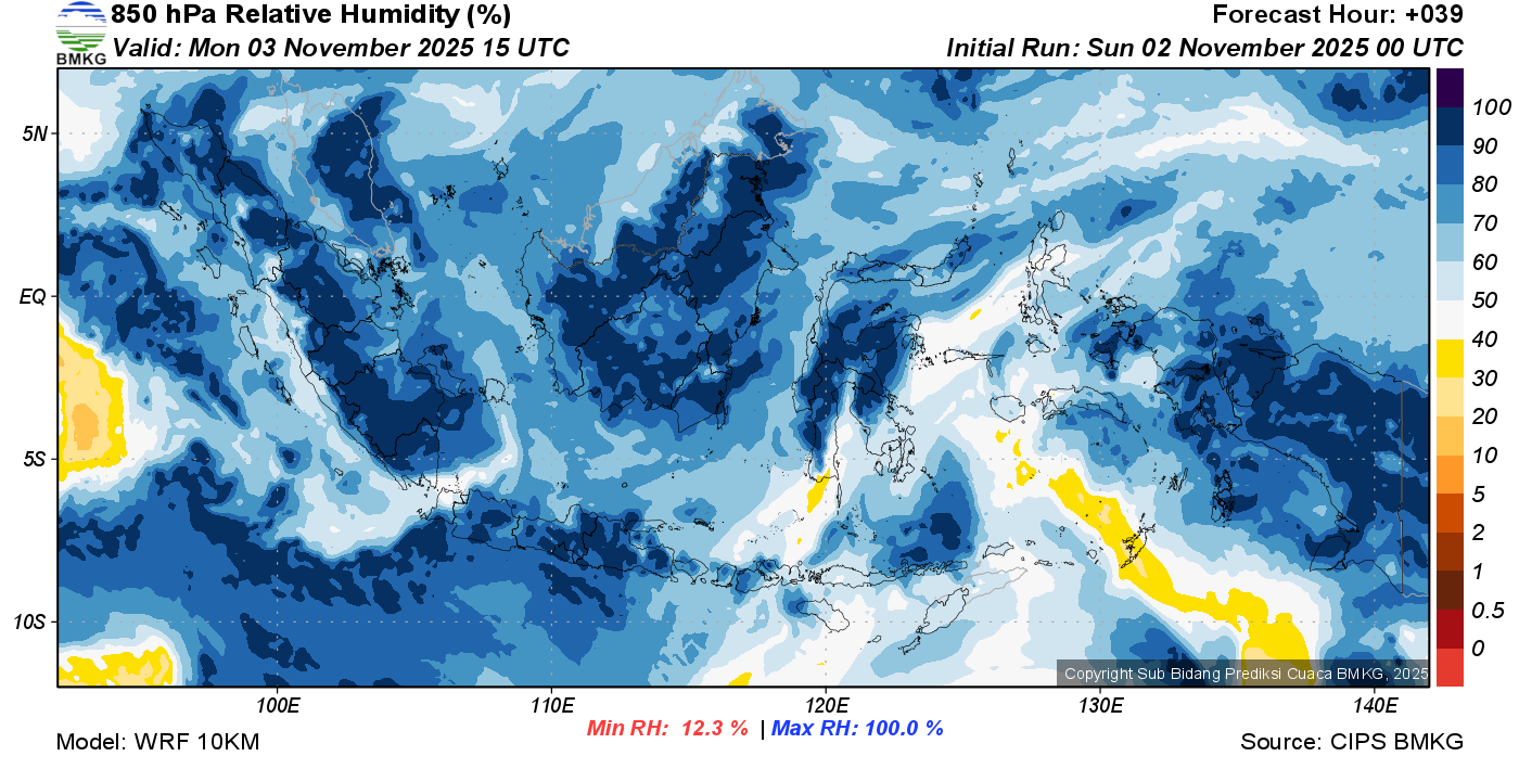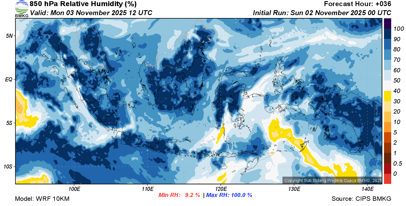 Prediksi Suhu Titik Embun 850 hPa NTT