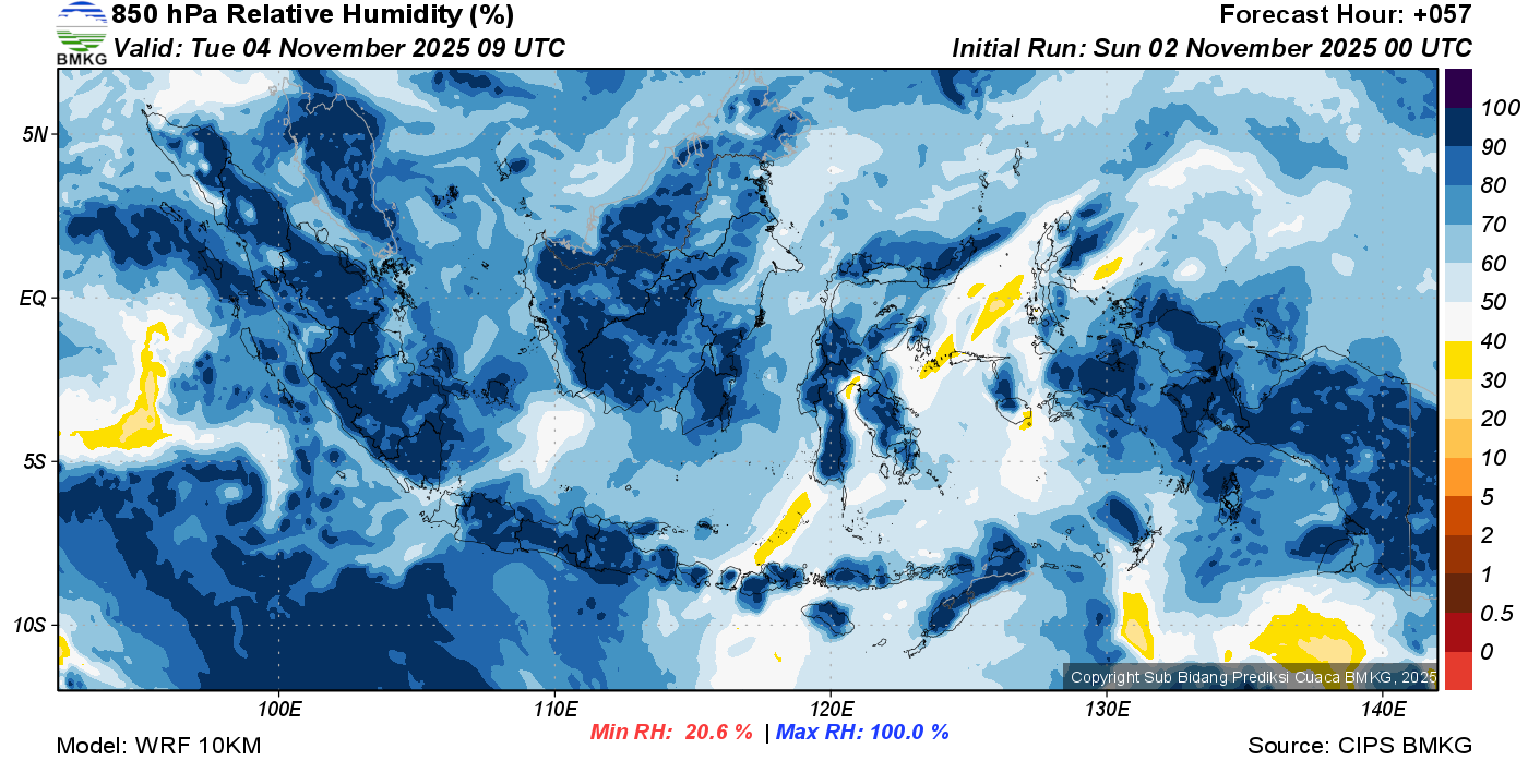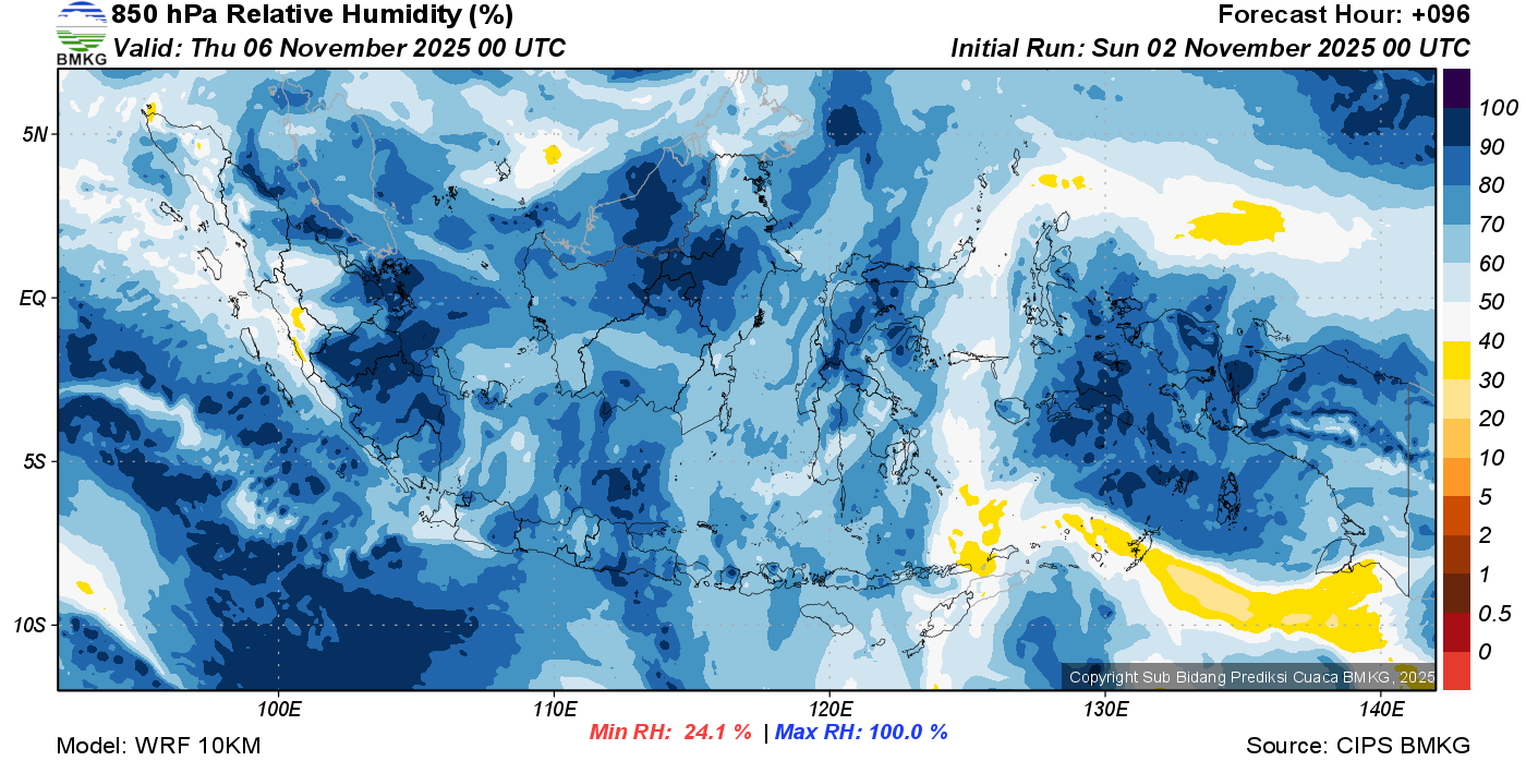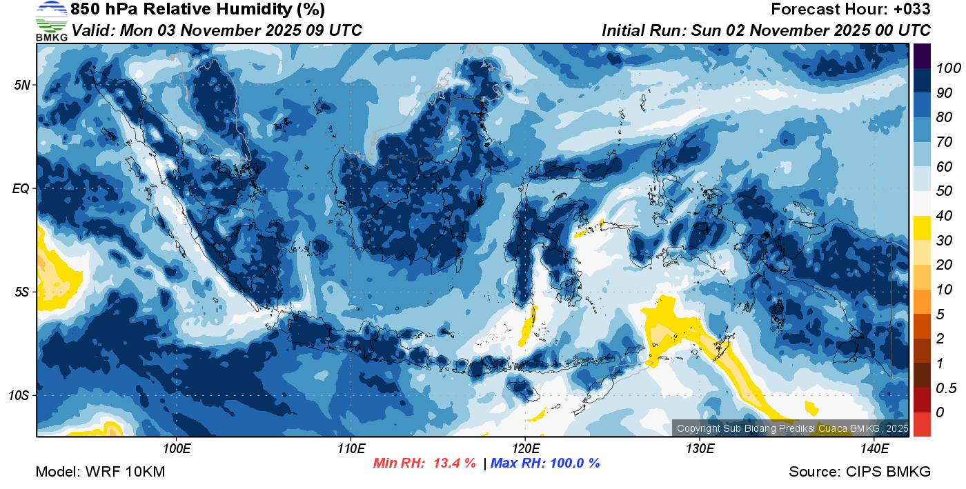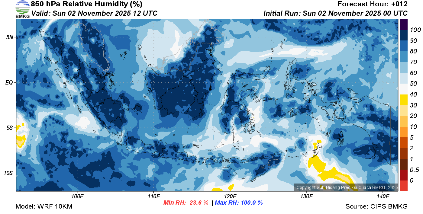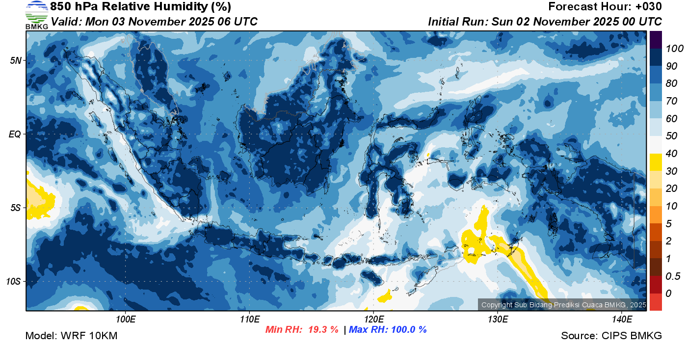 Prediksi Suhu Titik Embun 850 hPa NTT