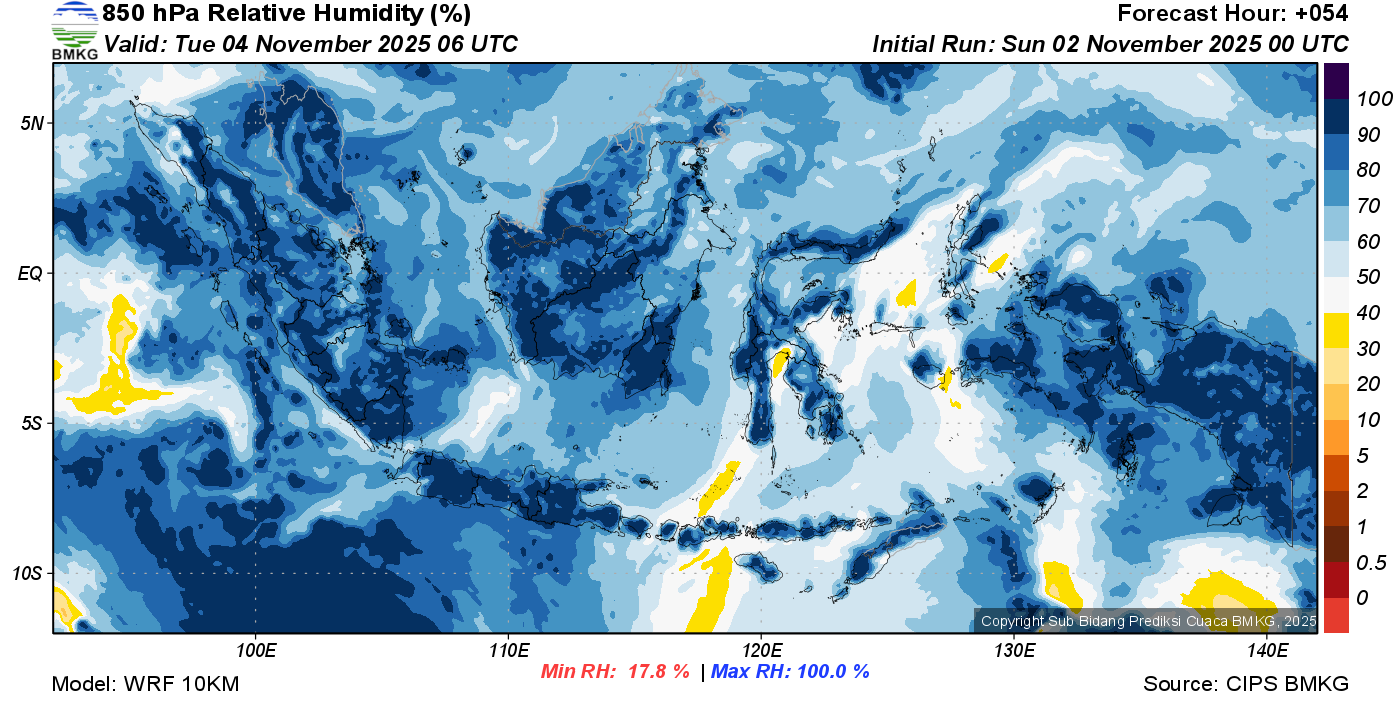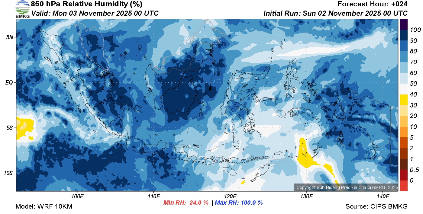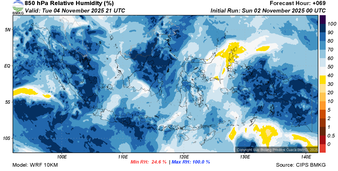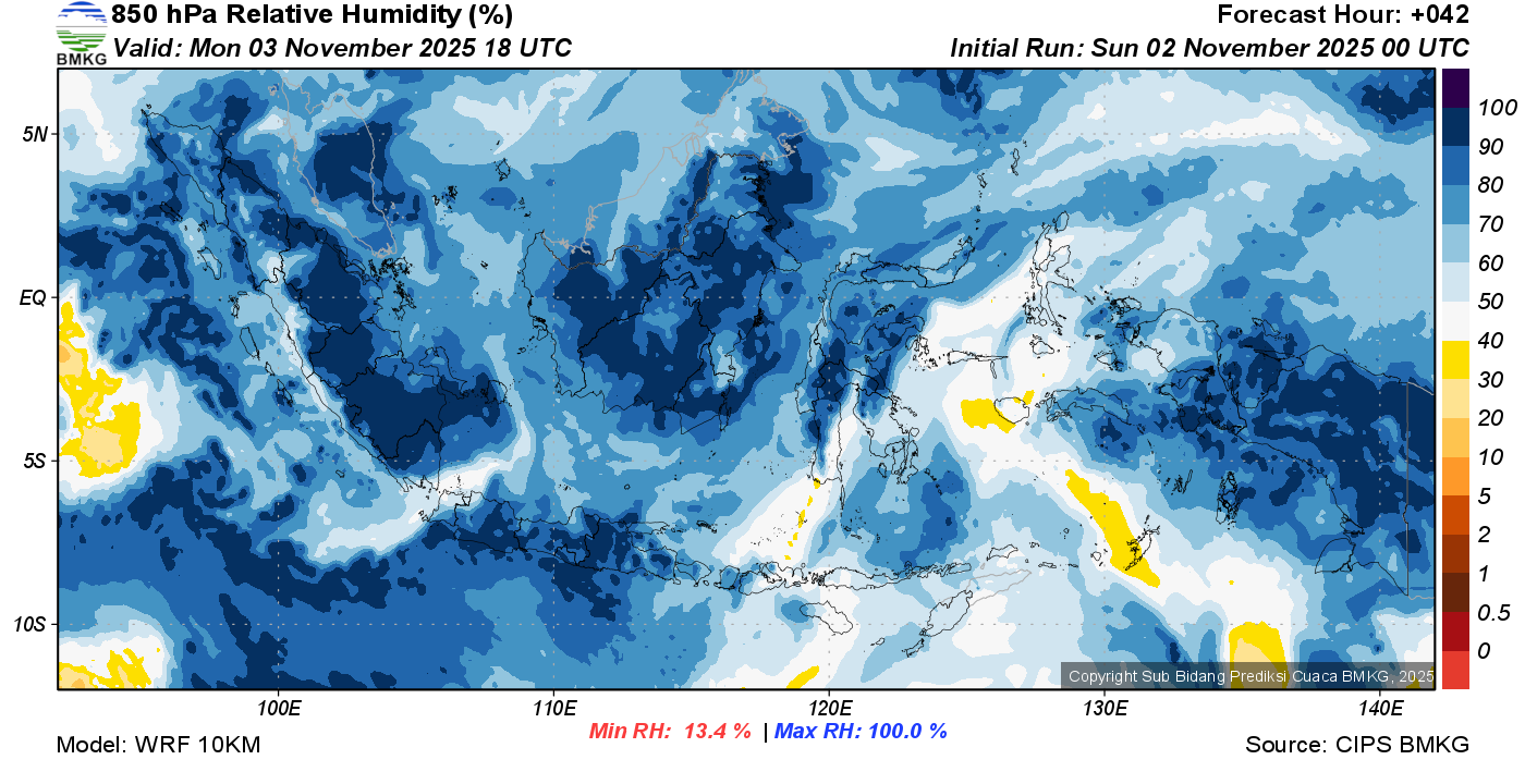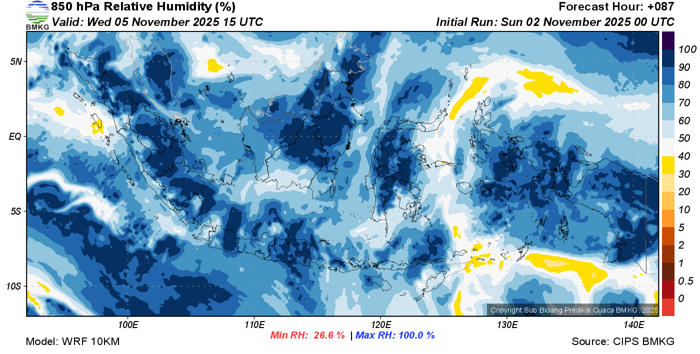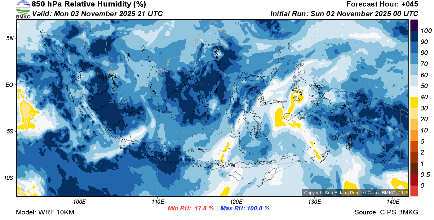 Prediksi Suhu Titik Embun 850 hPa NTT
