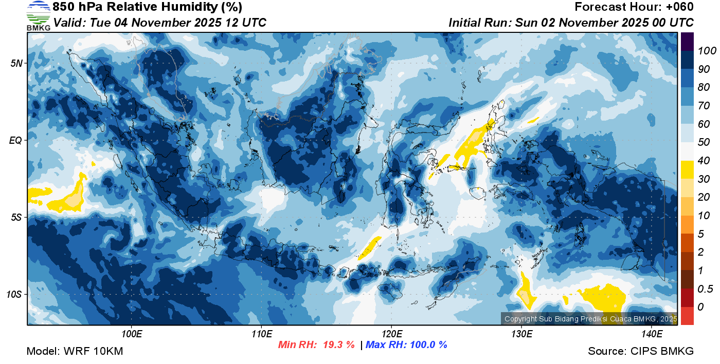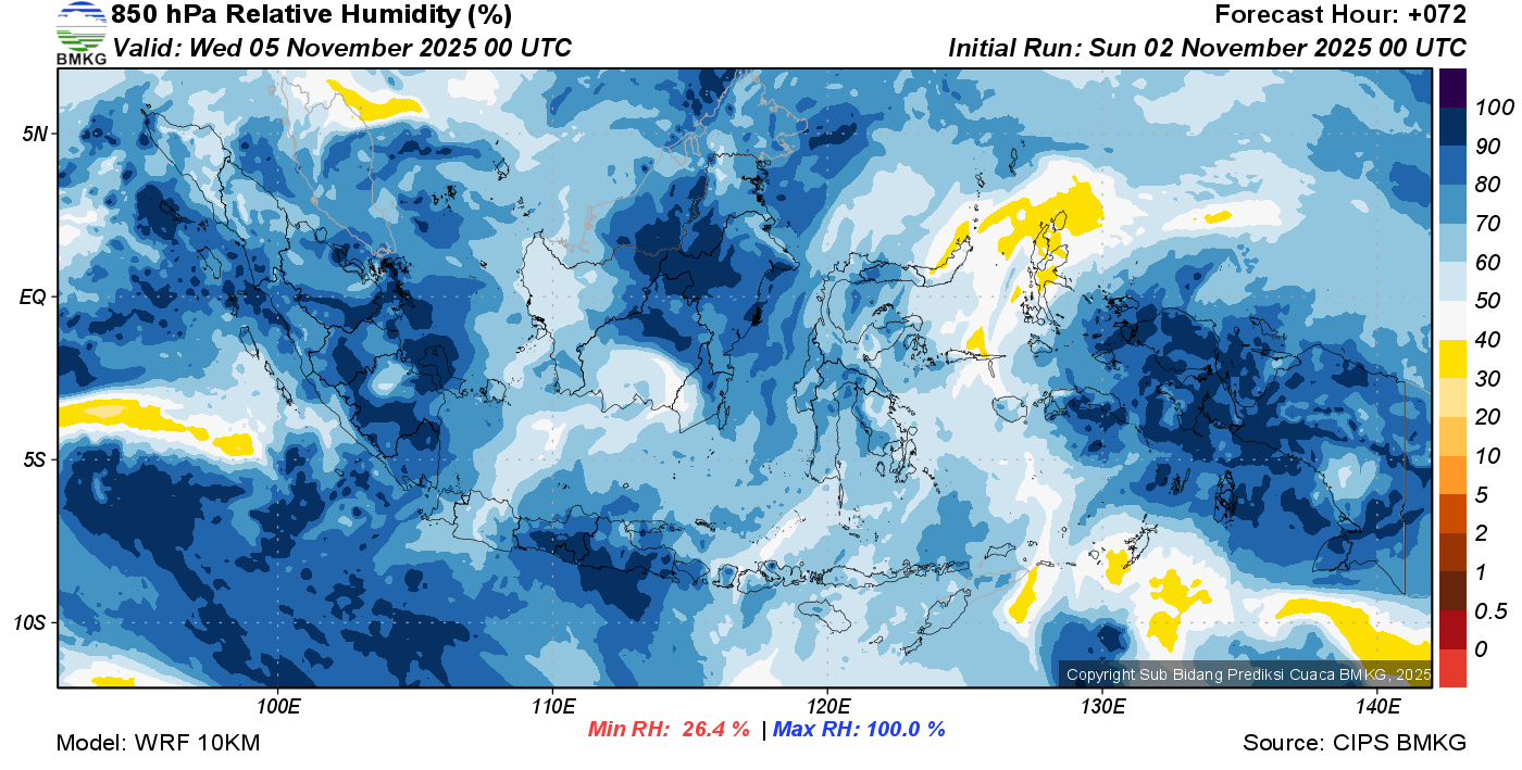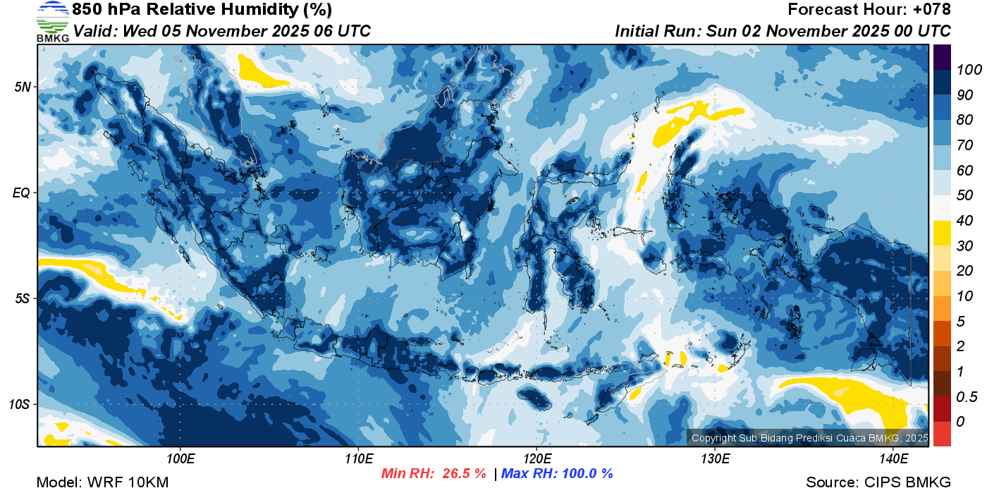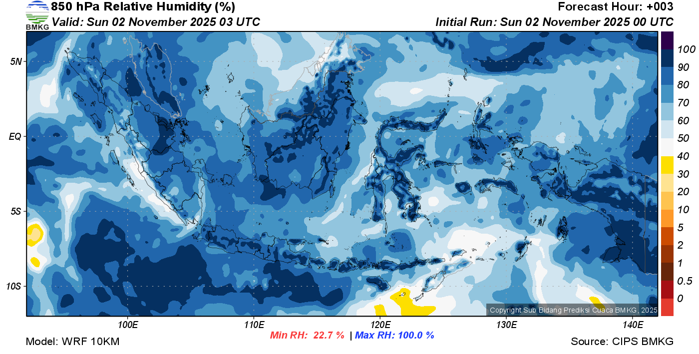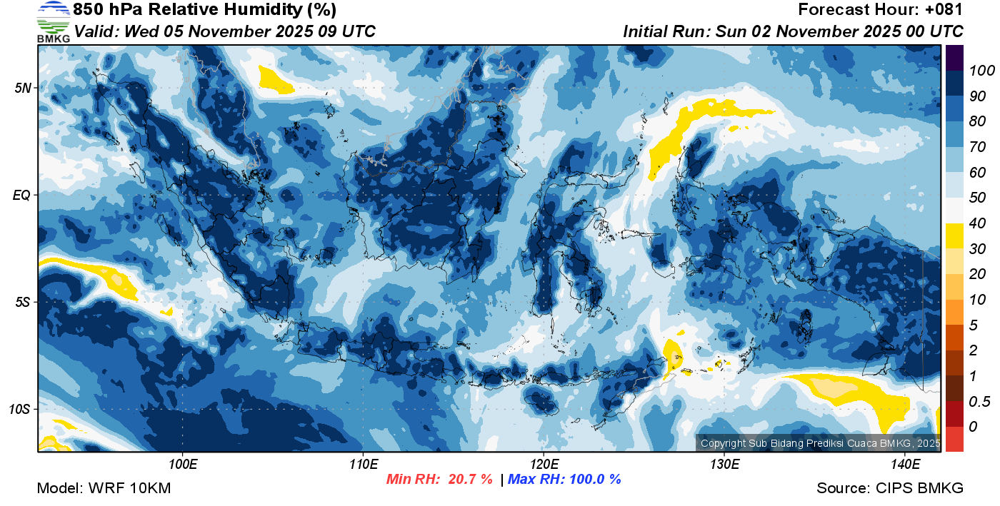 Prediksi Suhu Titik Embun 850 hPa NTT
