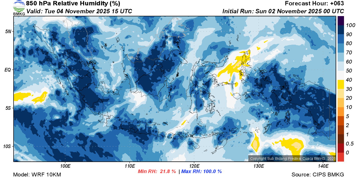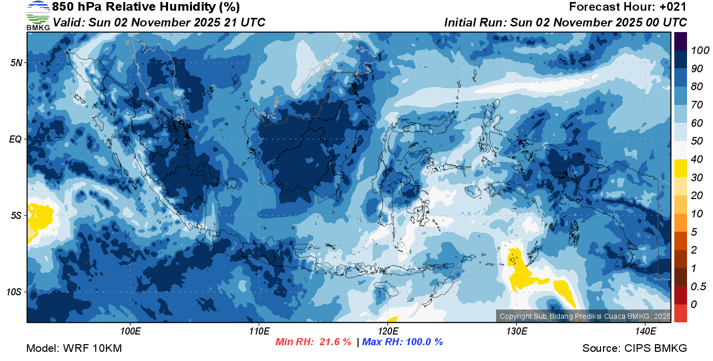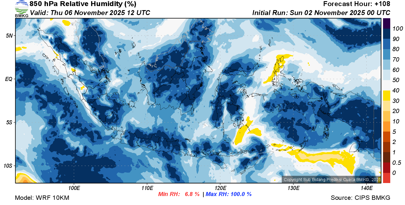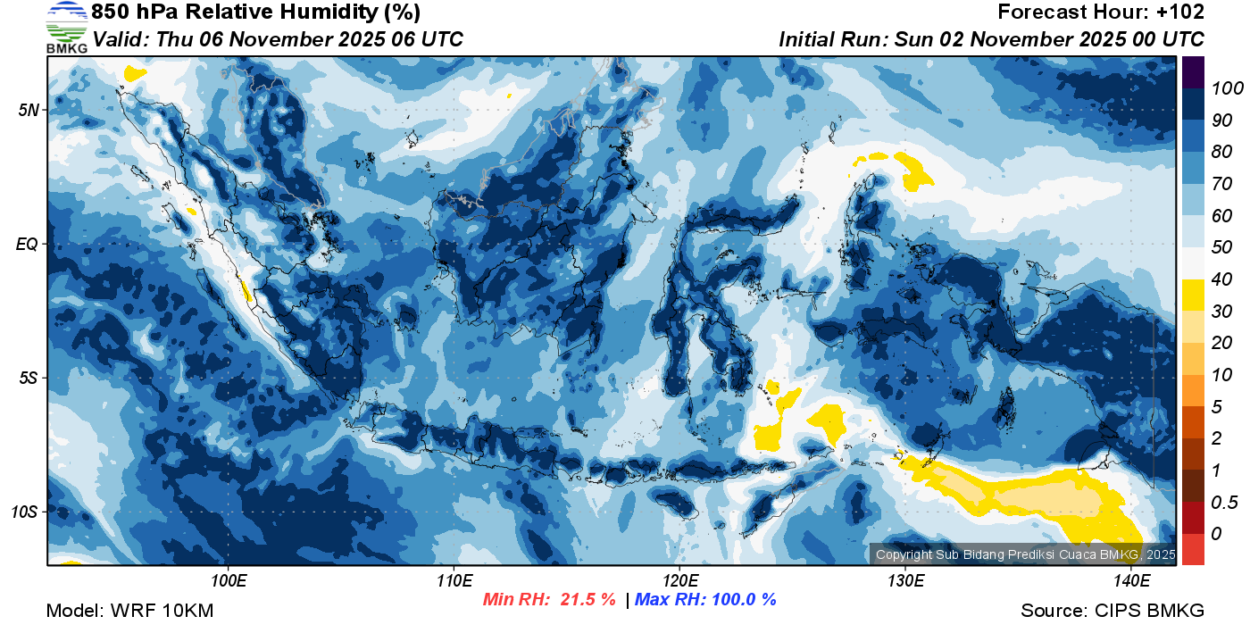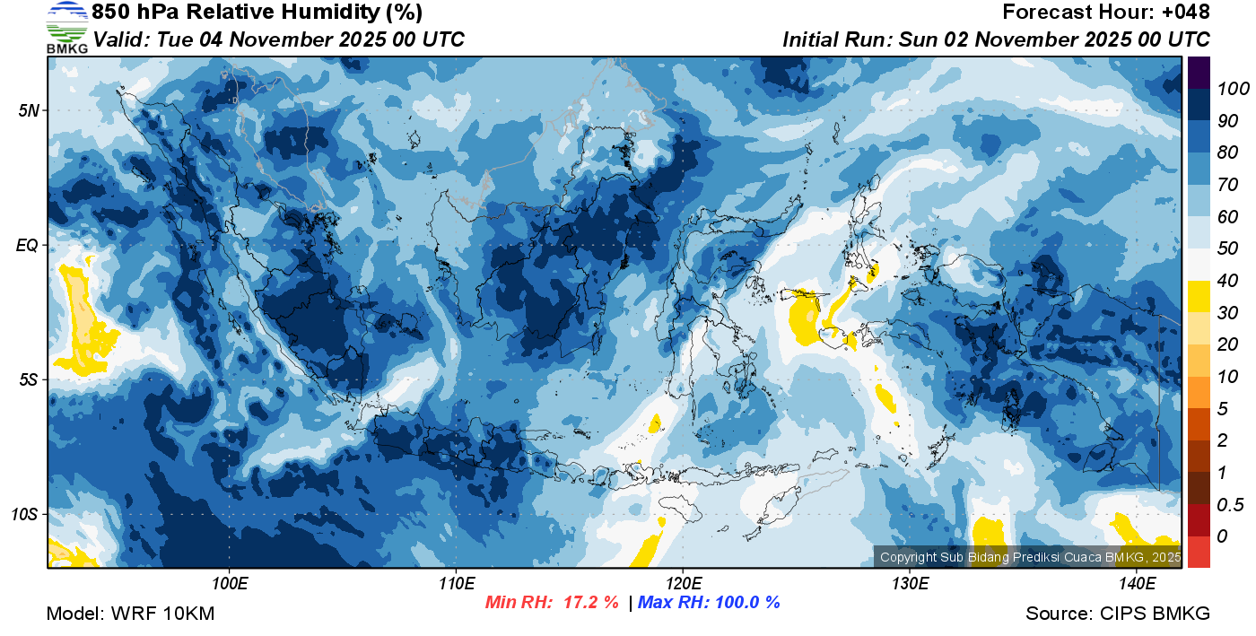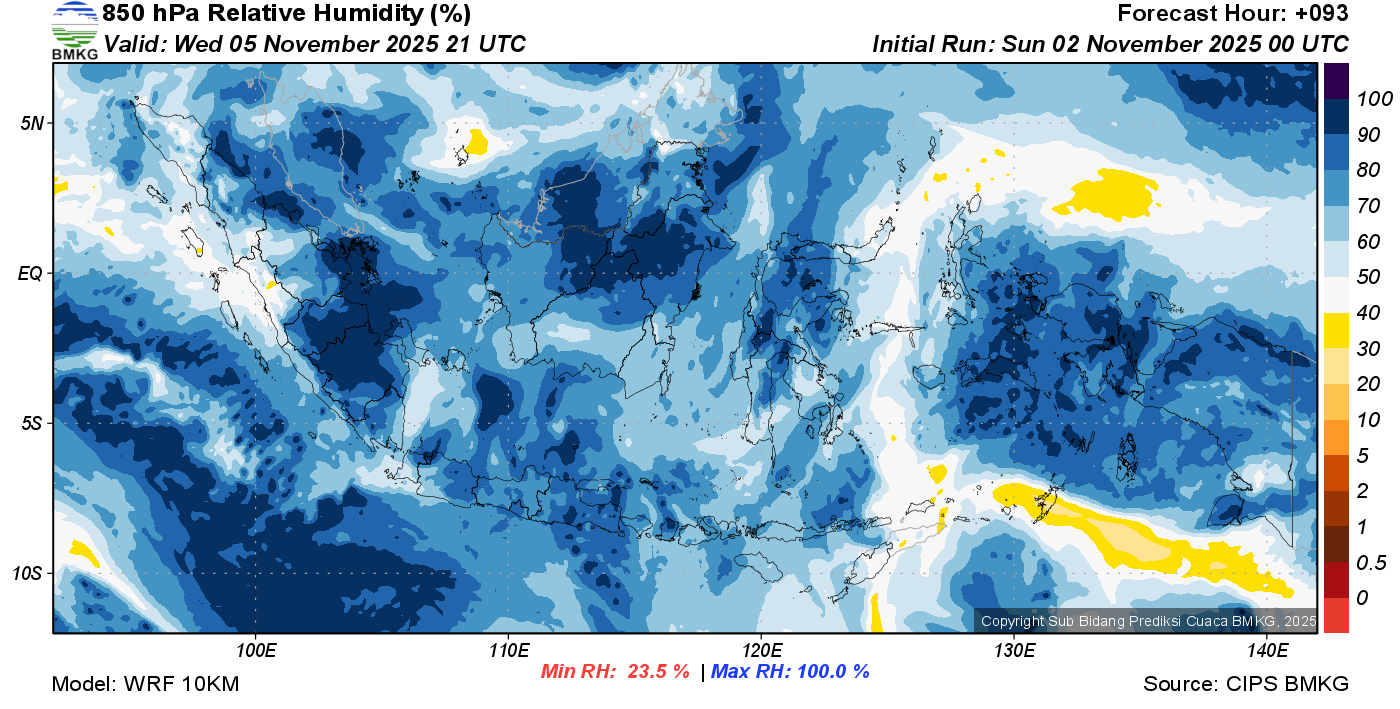 Prediksi Suhu Titik Embun 850 hPa NTT
