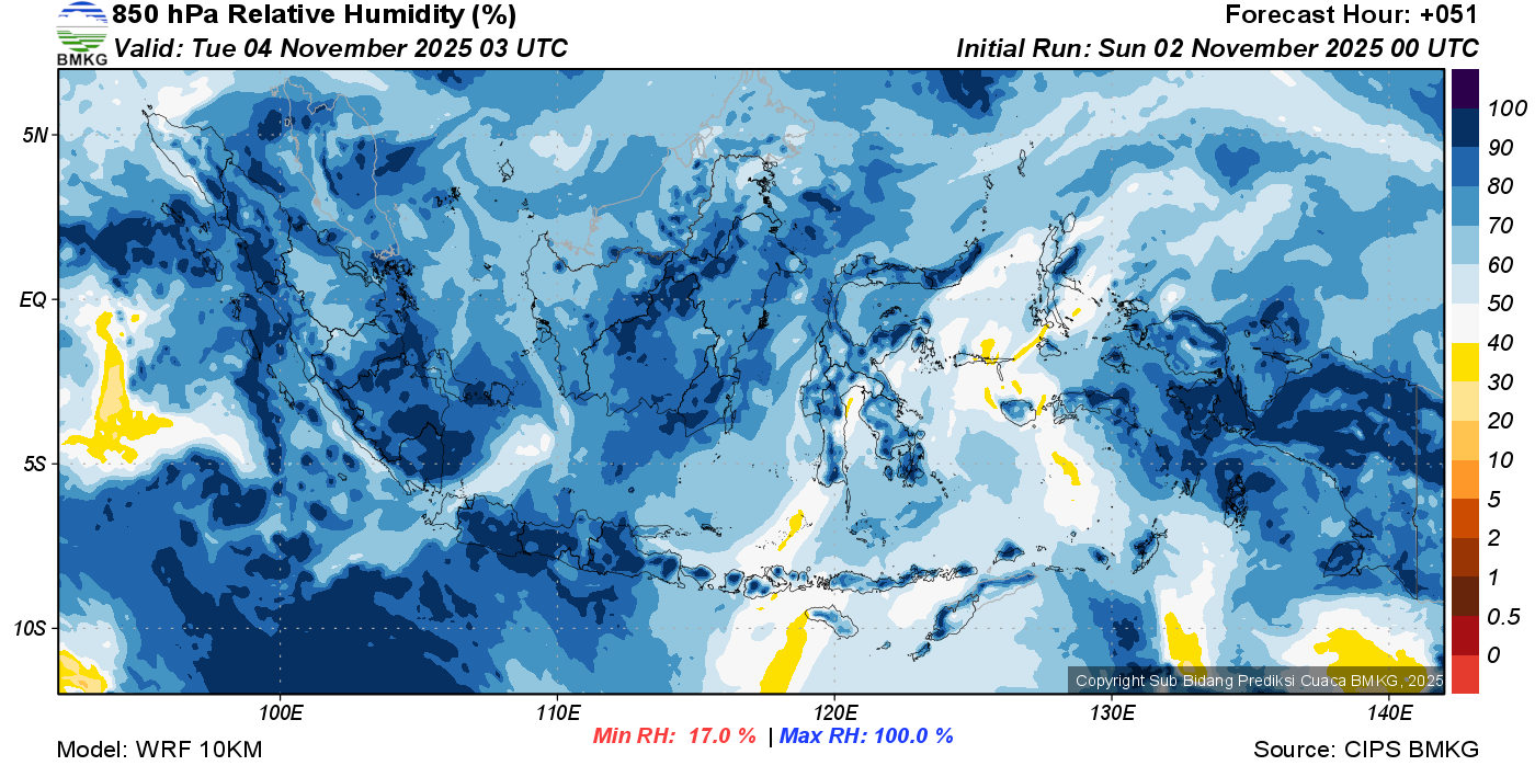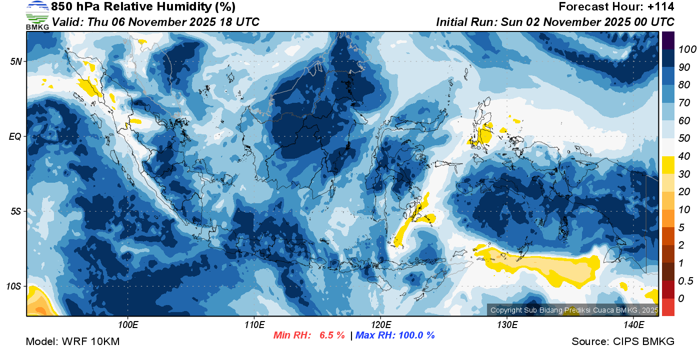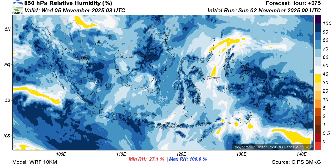Prakiraan Angin Lapisan 850 Gunung Awu