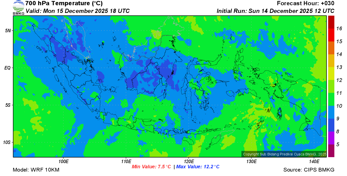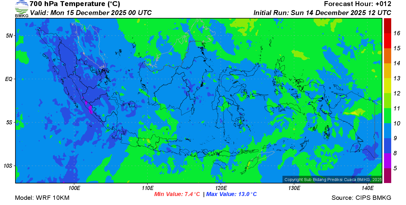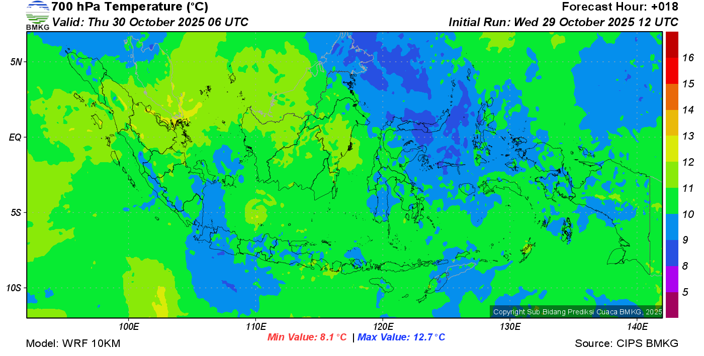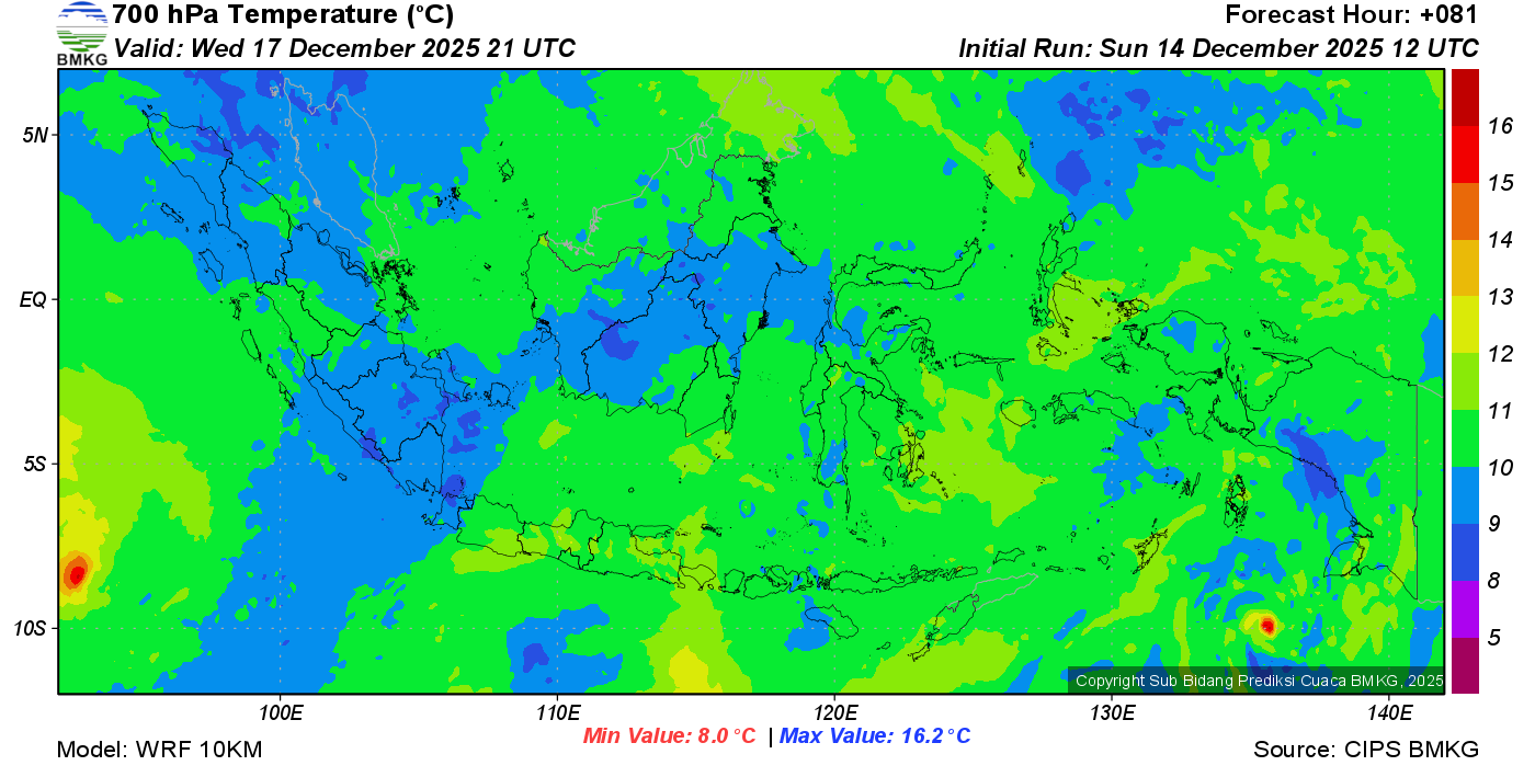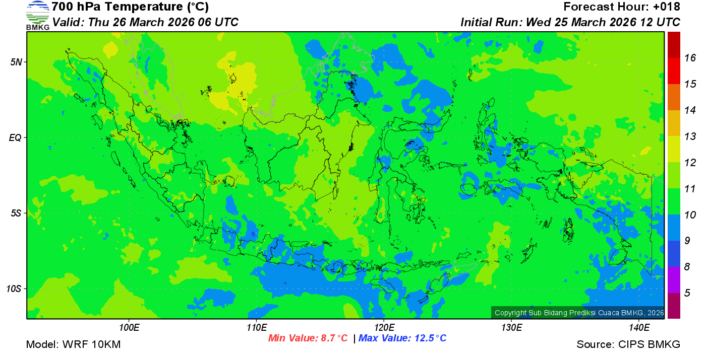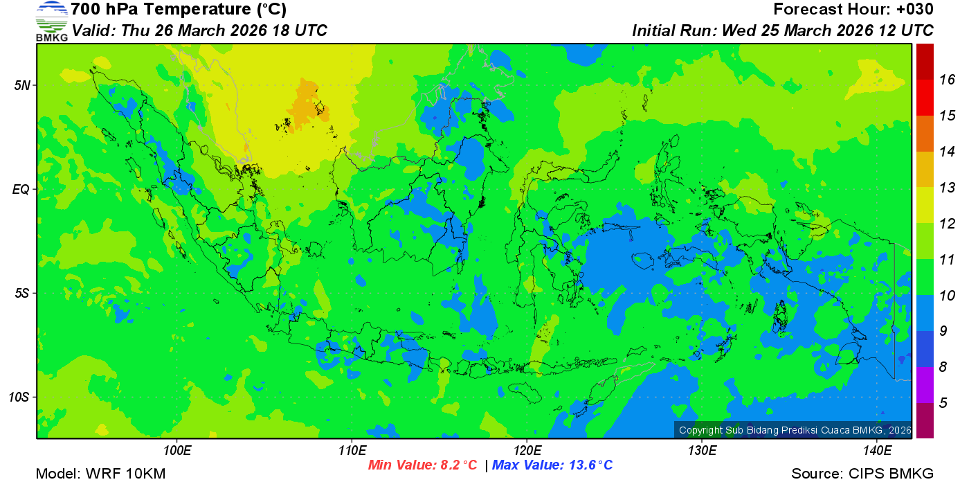 Prediksi Suhu Titik Embun 700 hPa NTT