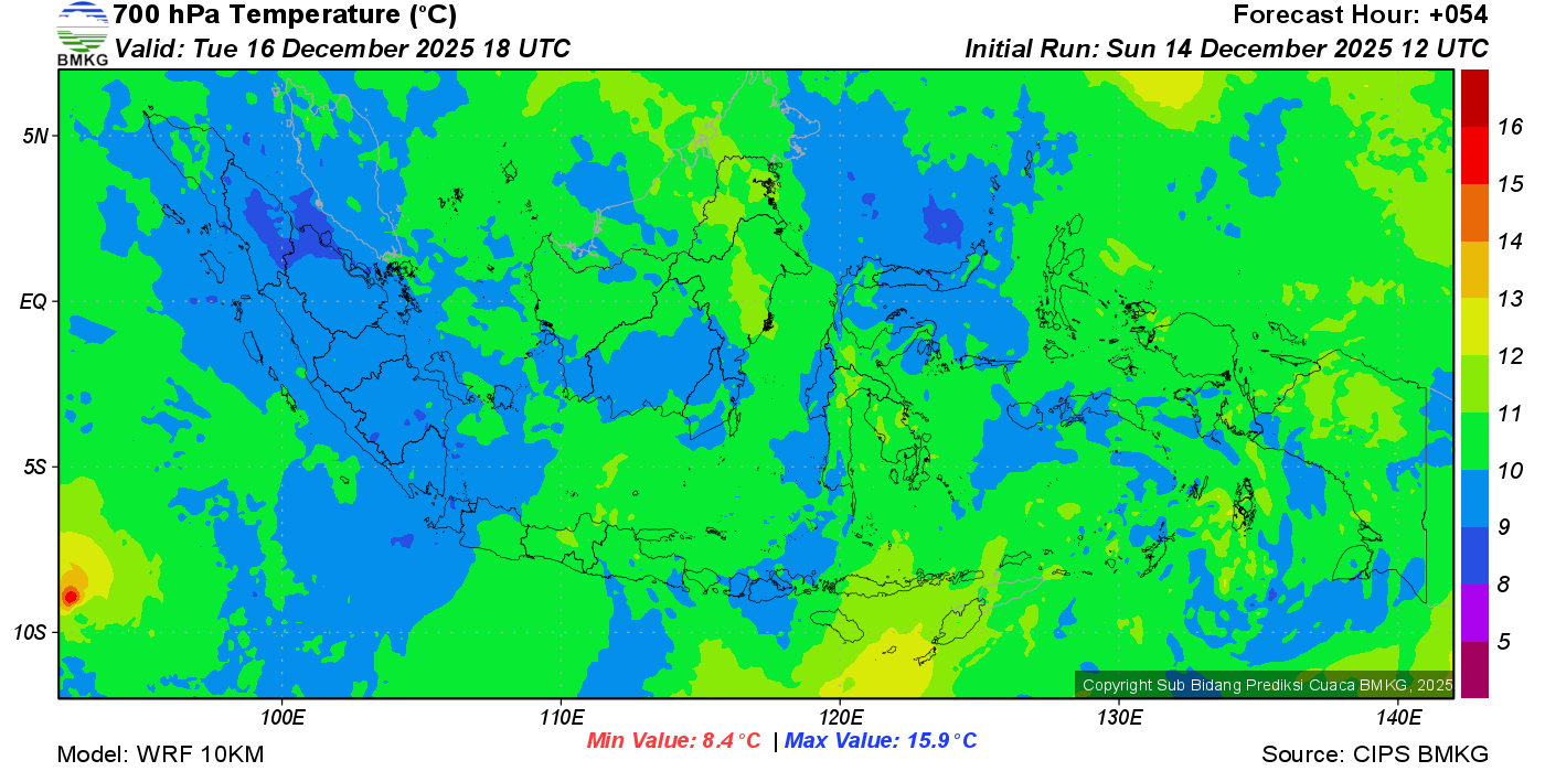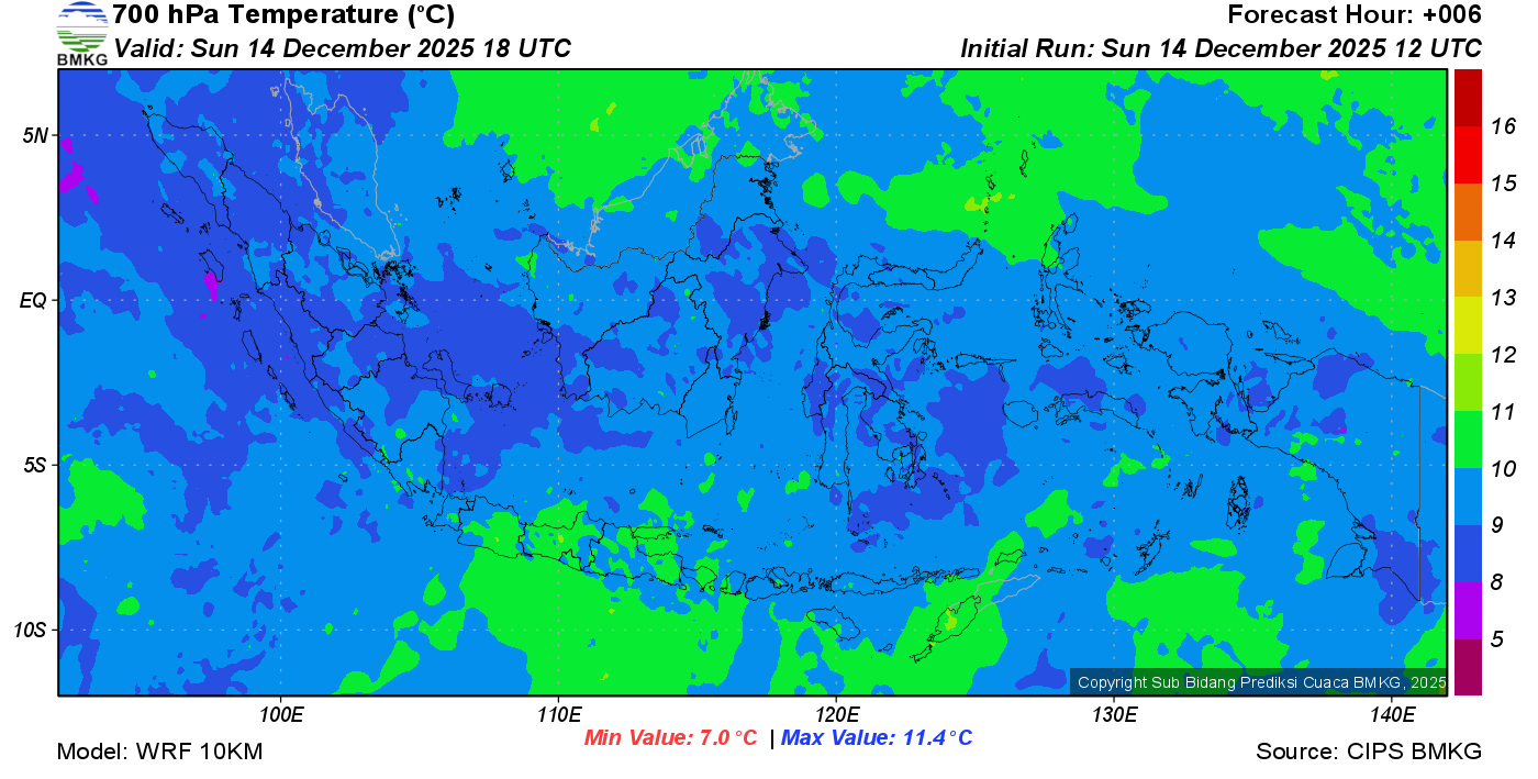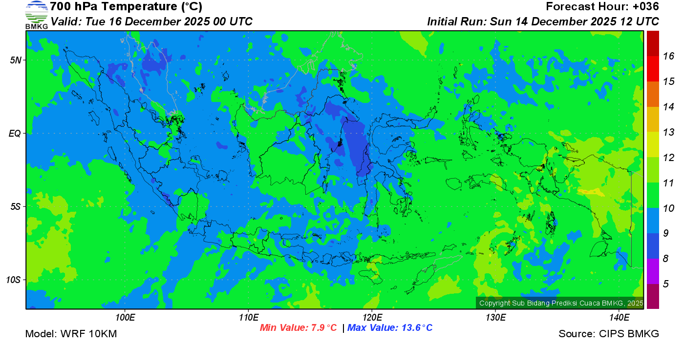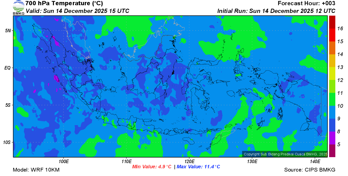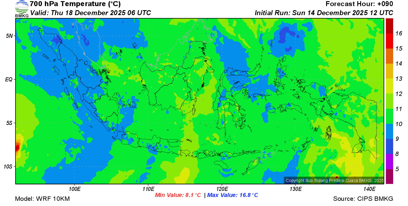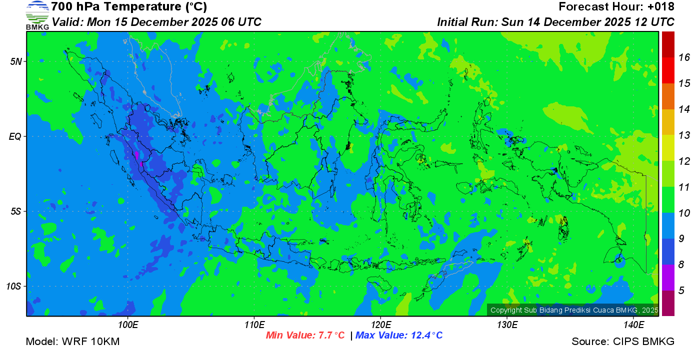 Prediksi Suhu Titik Embun 700 hPa NTT