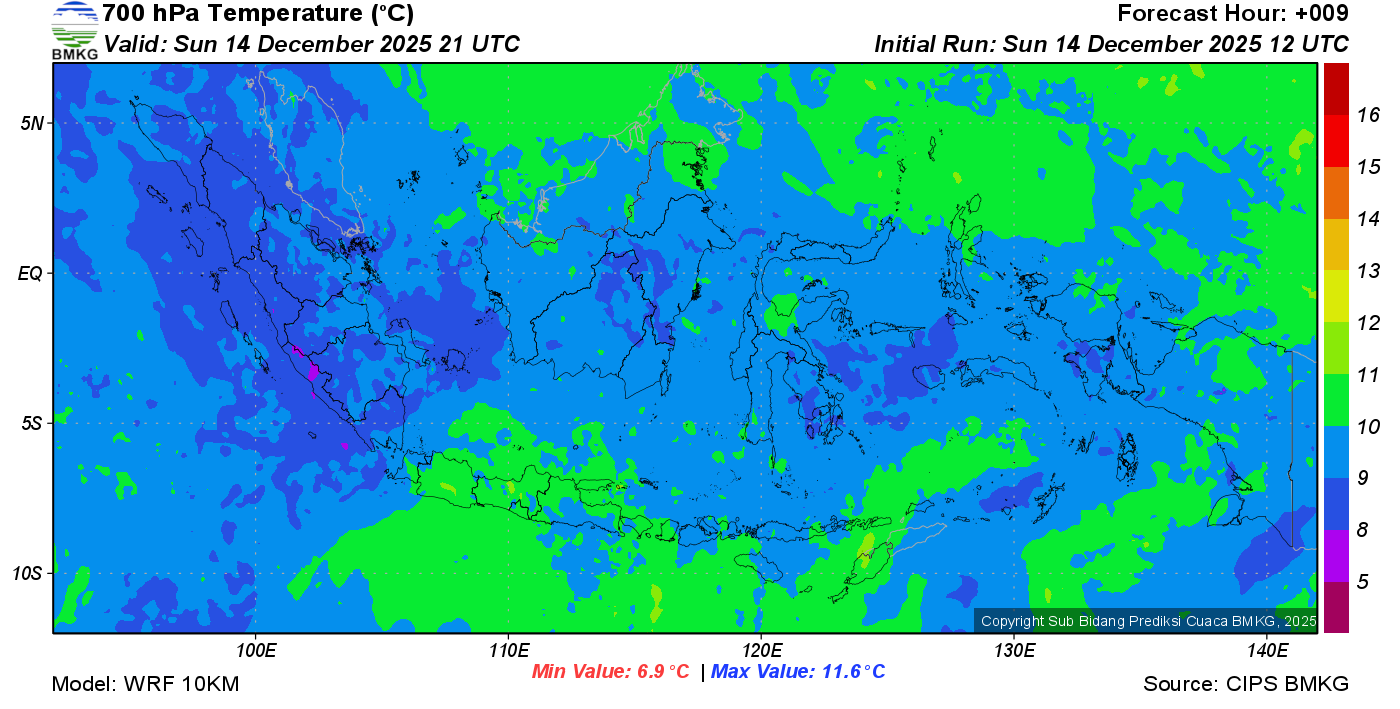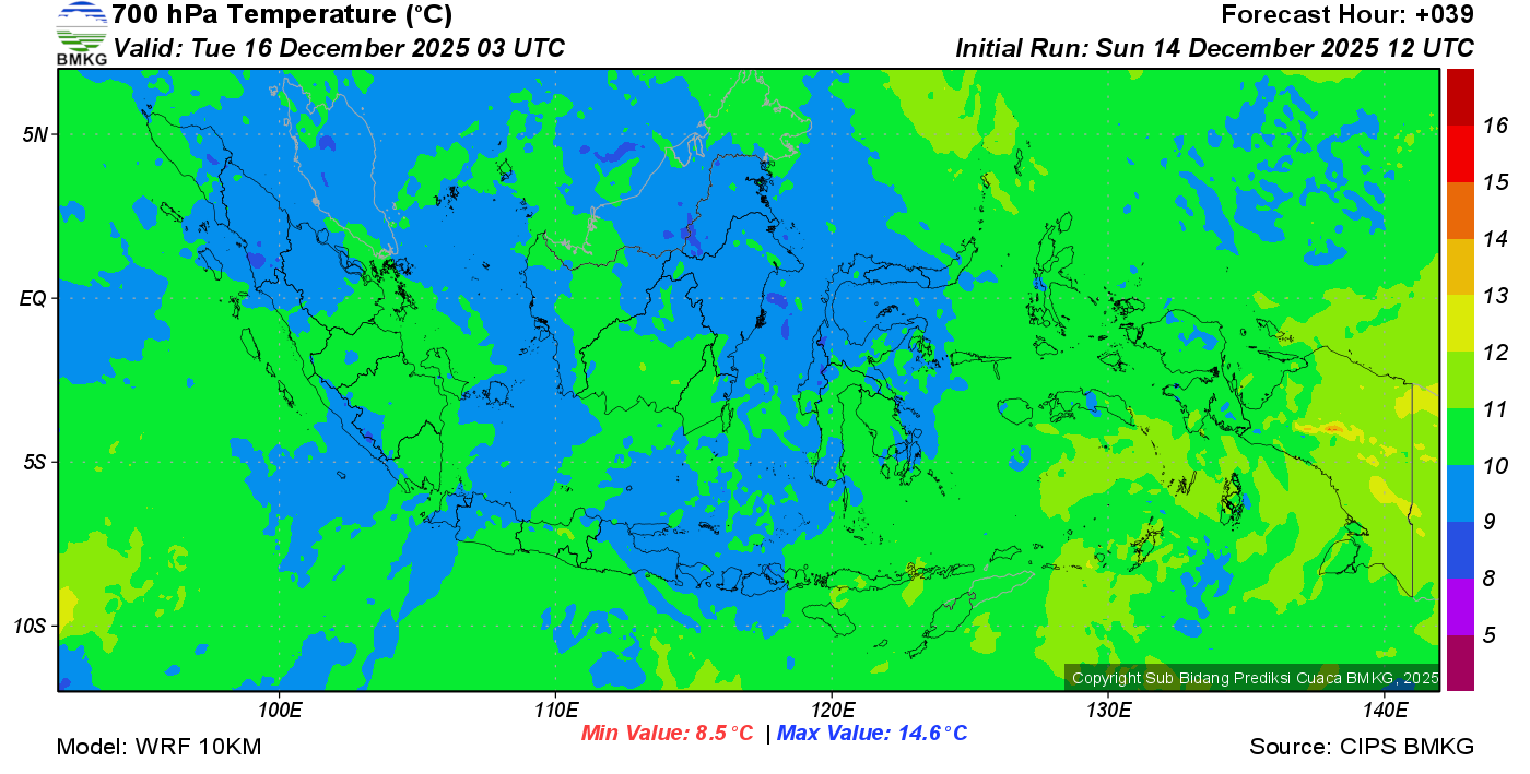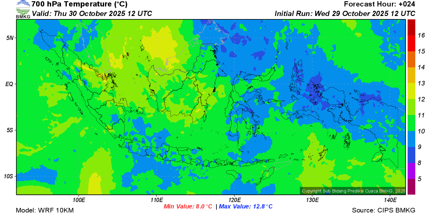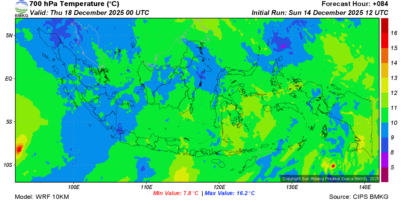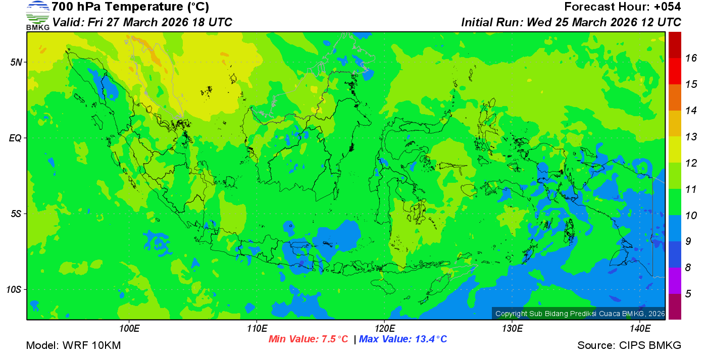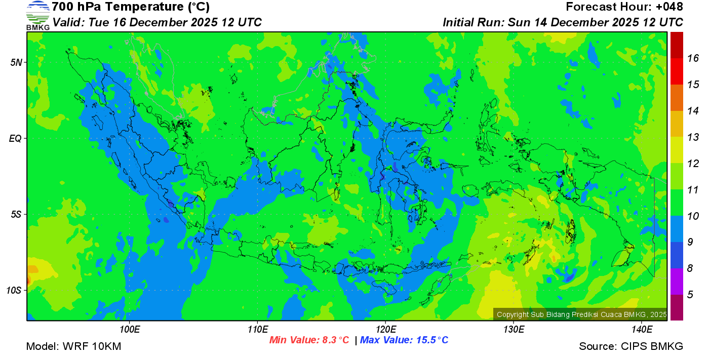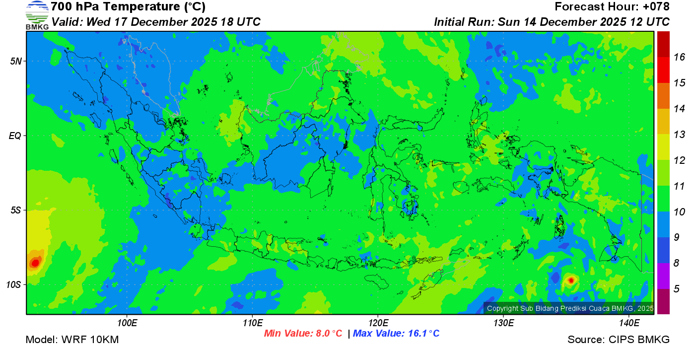 Prediksi Suhu Titik Embun 700 hPa NTT