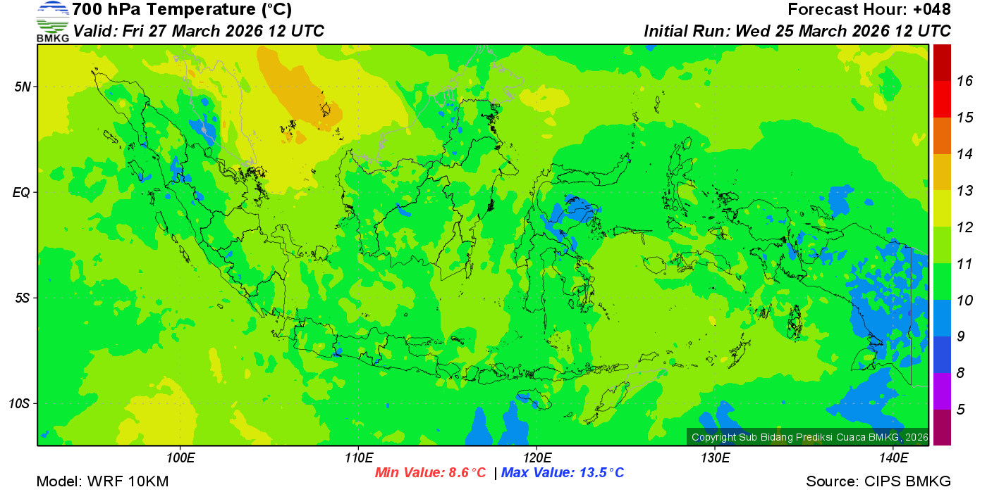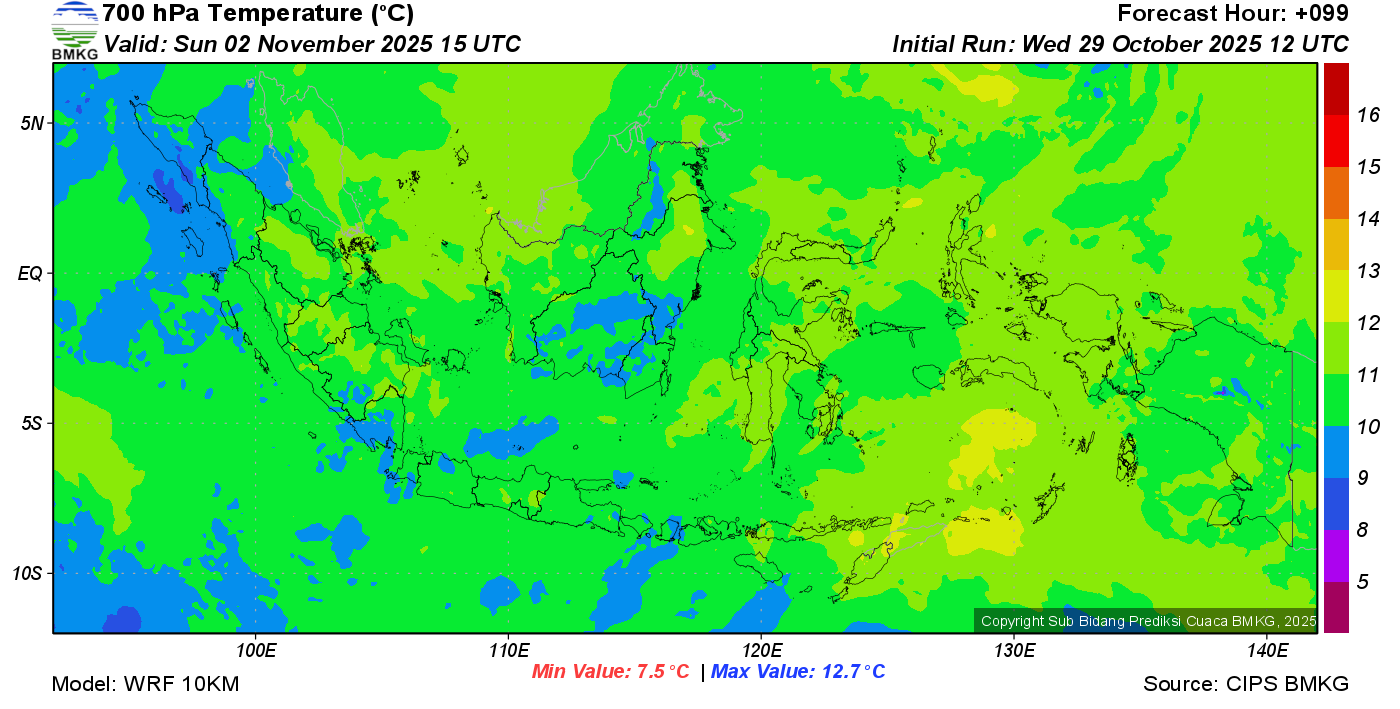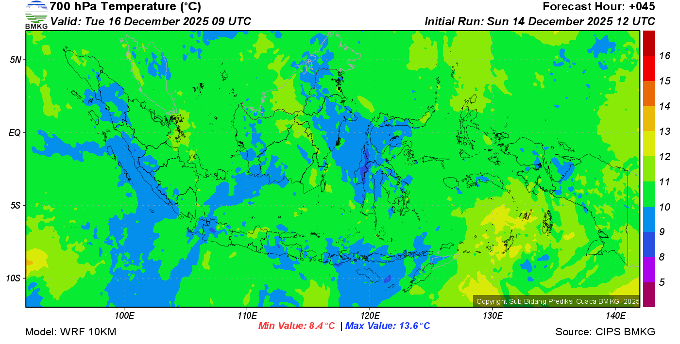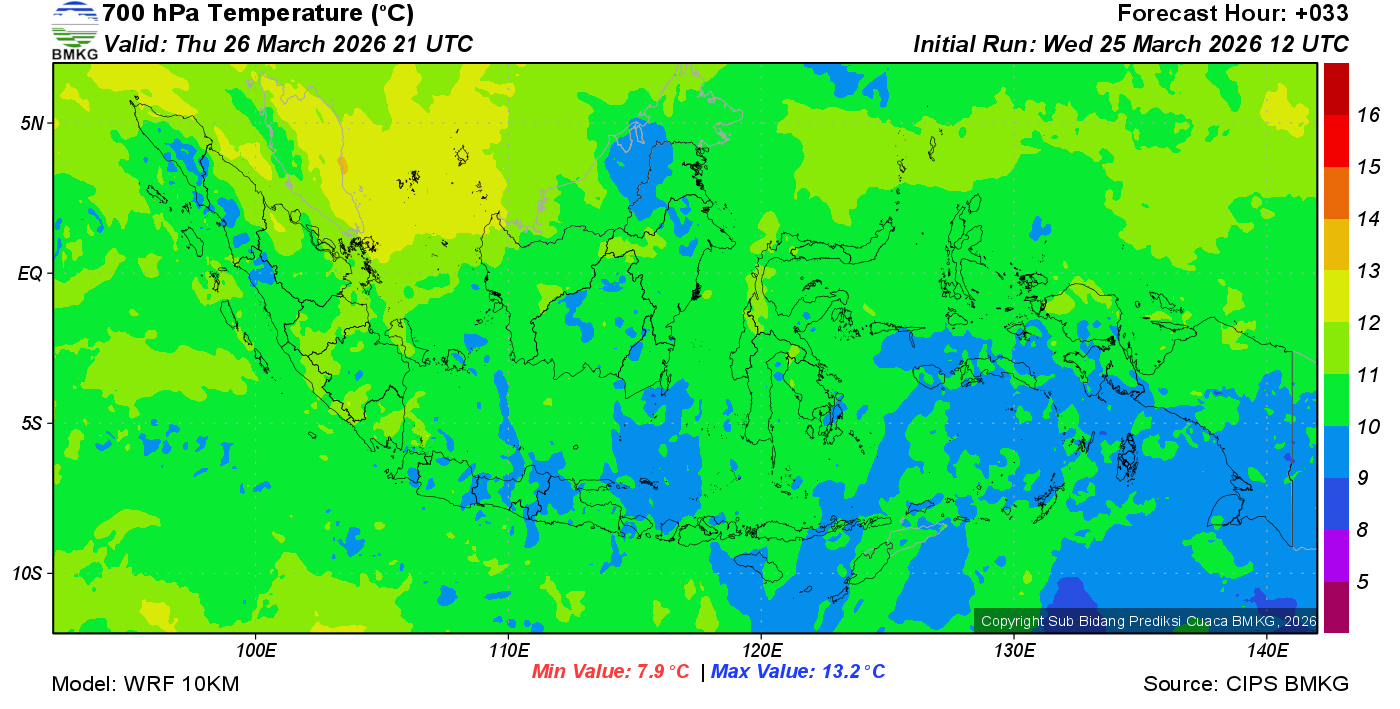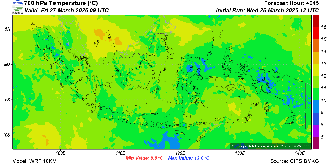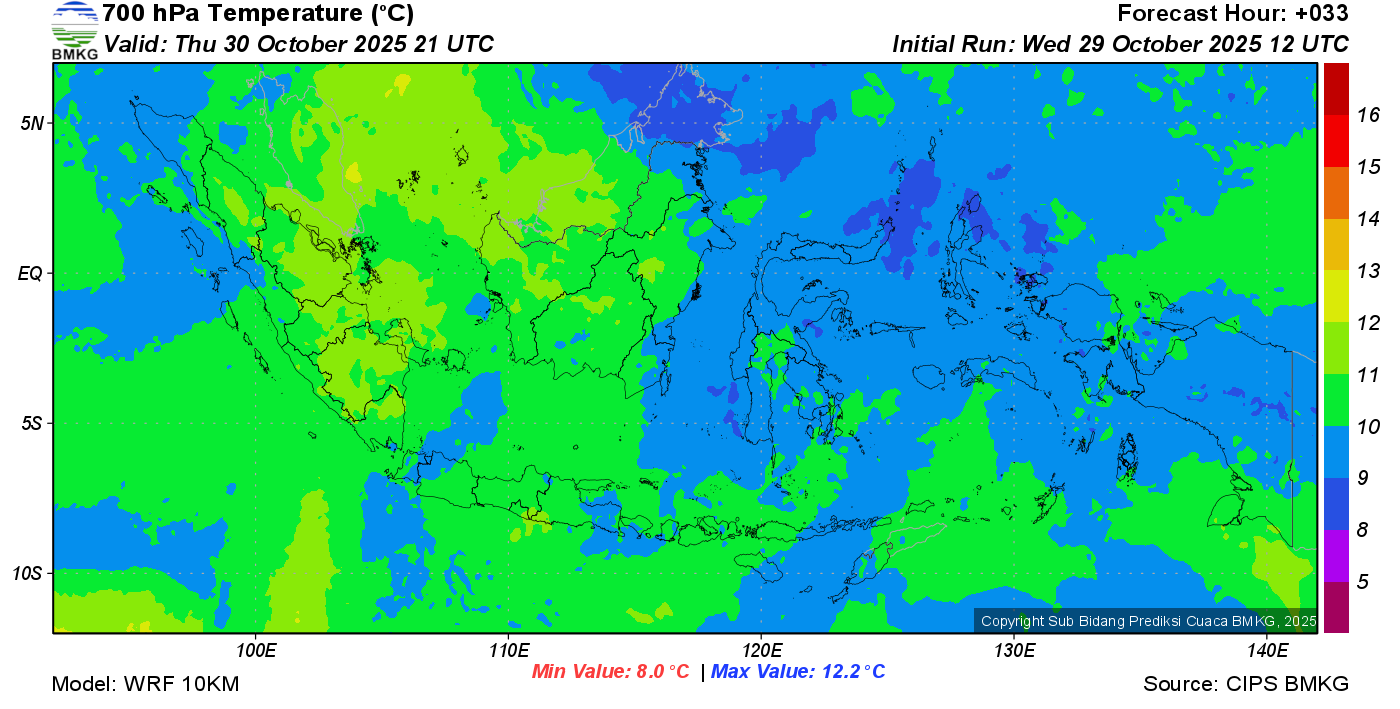 Prediksi Suhu Titik Embun 700 hPa NTT