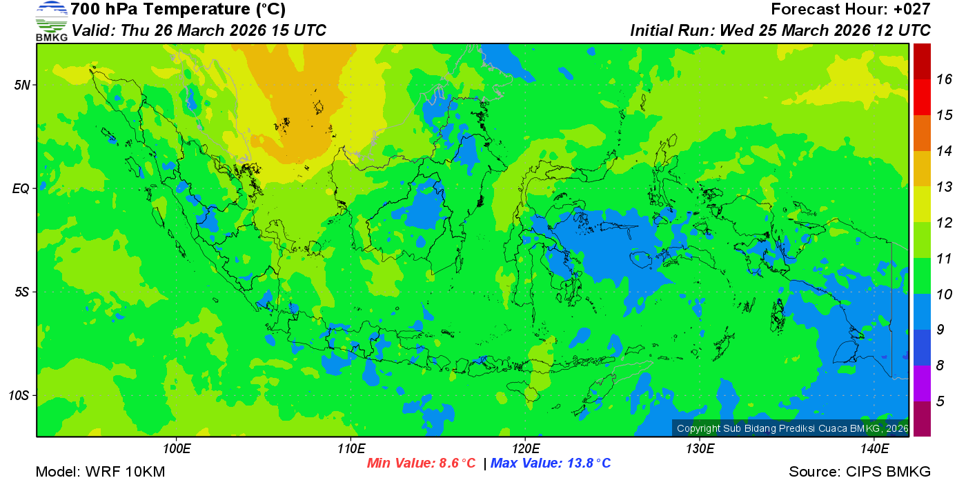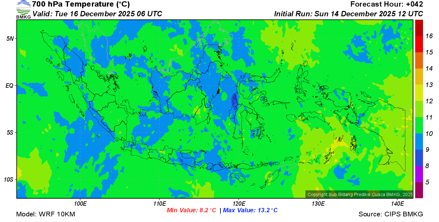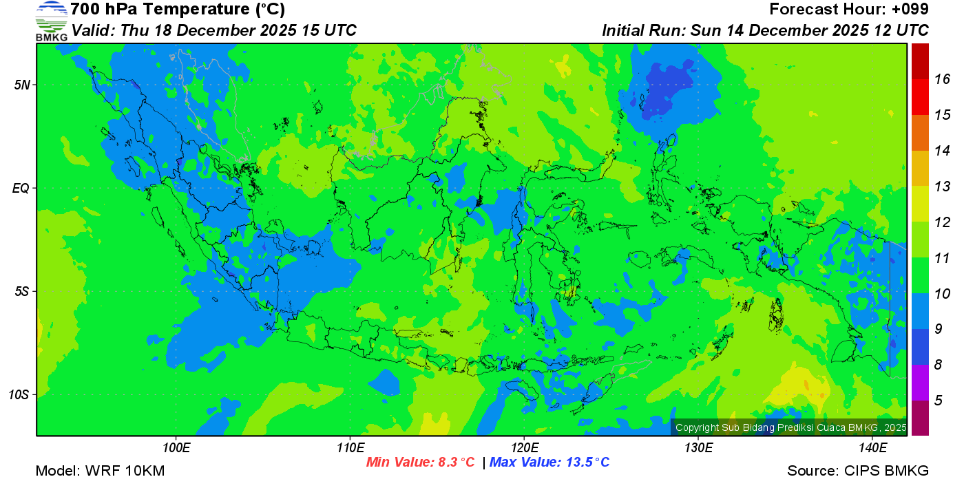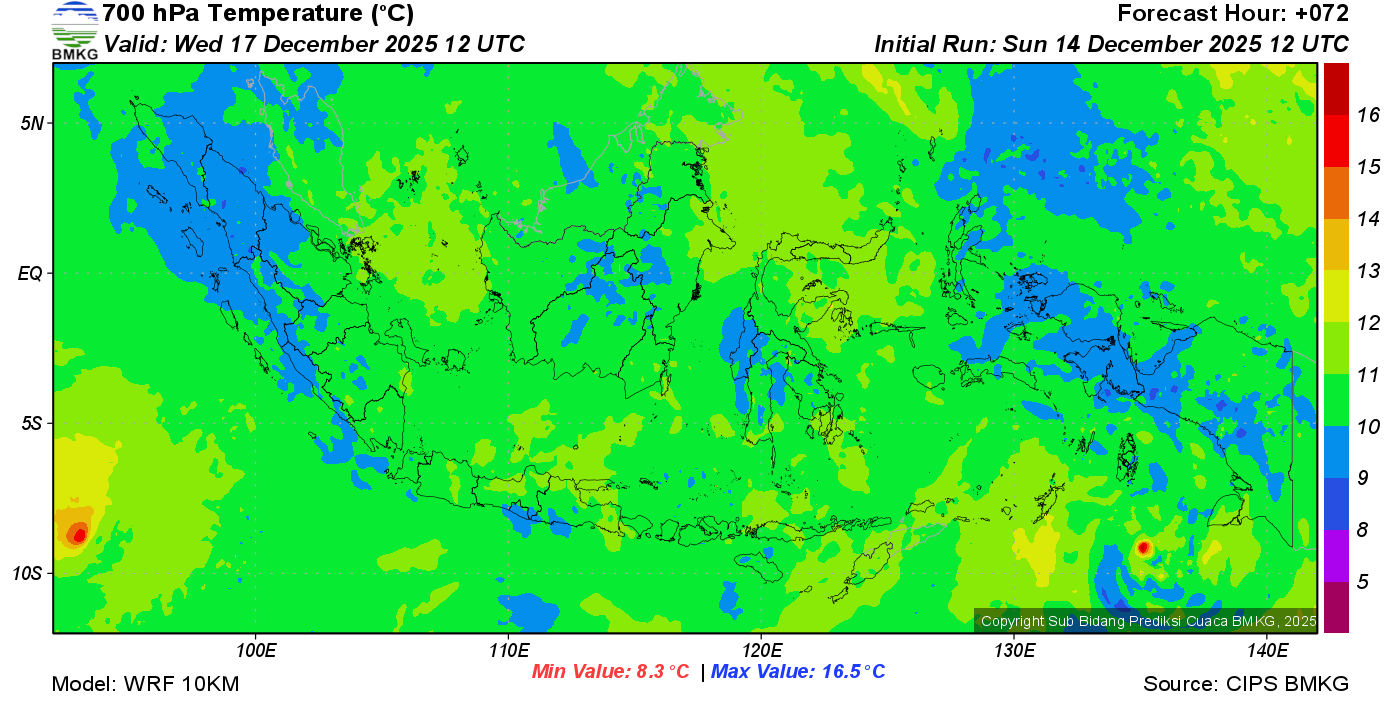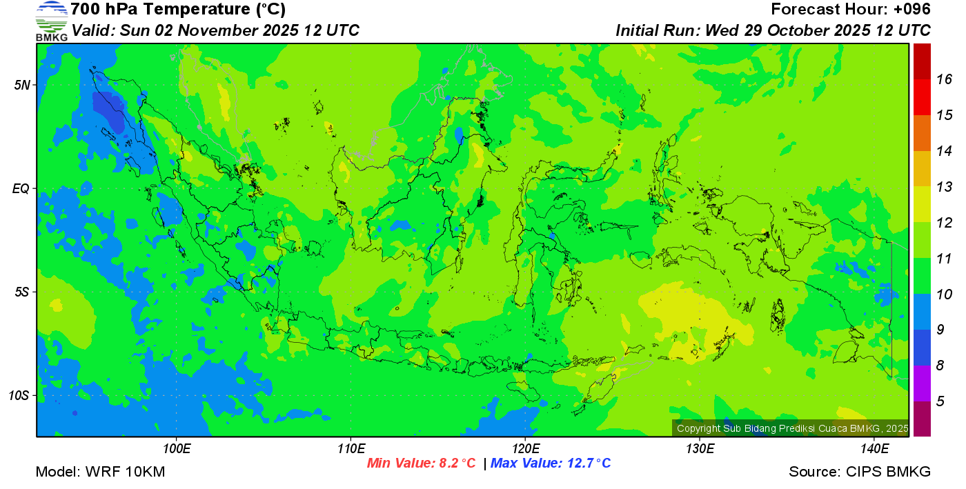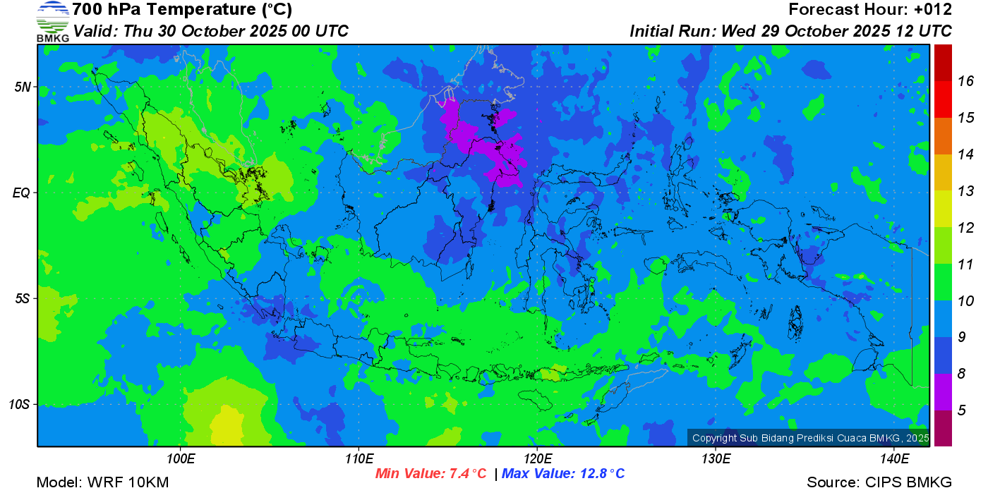 Prediksi Suhu Titik Embun 700 hPa NTT