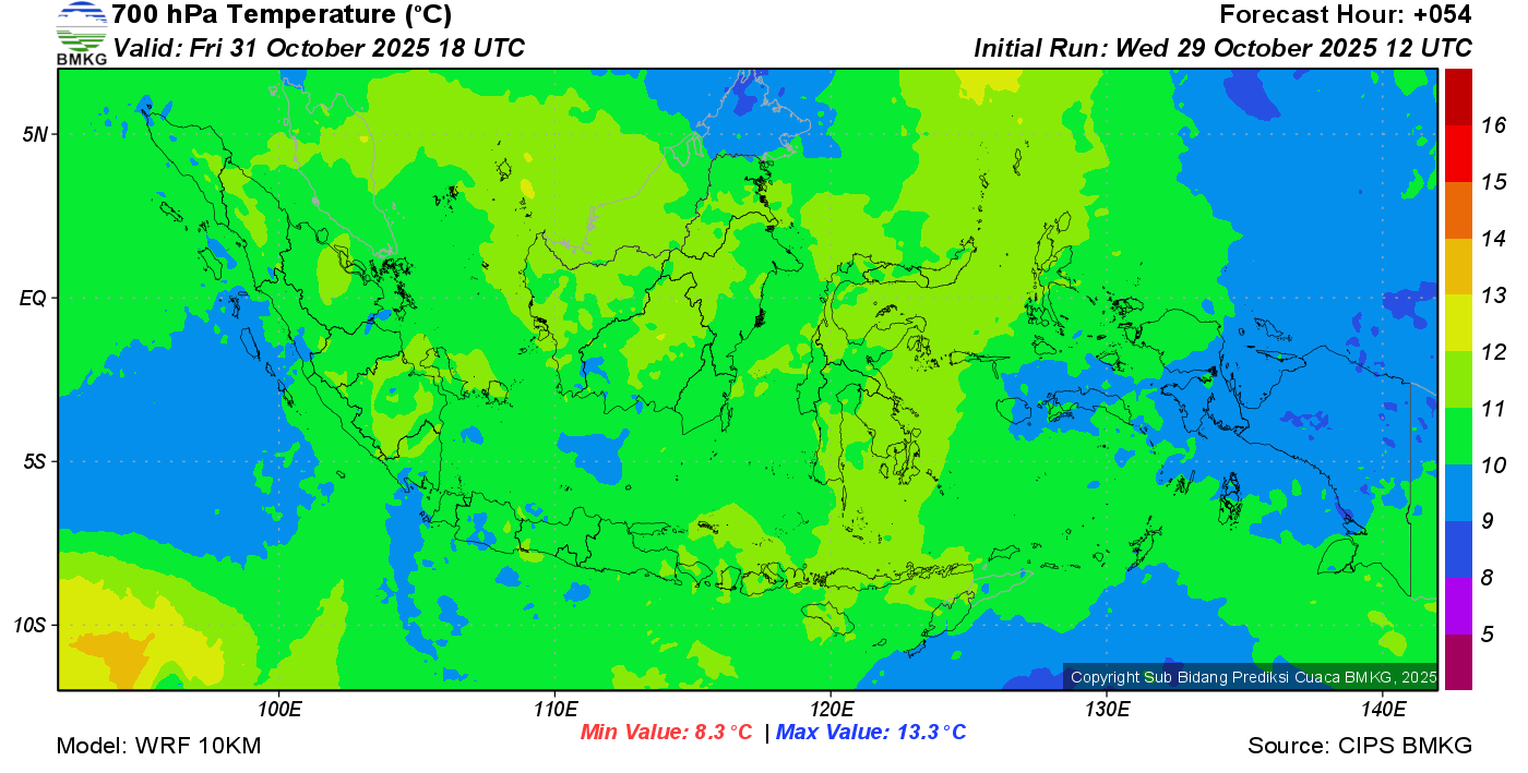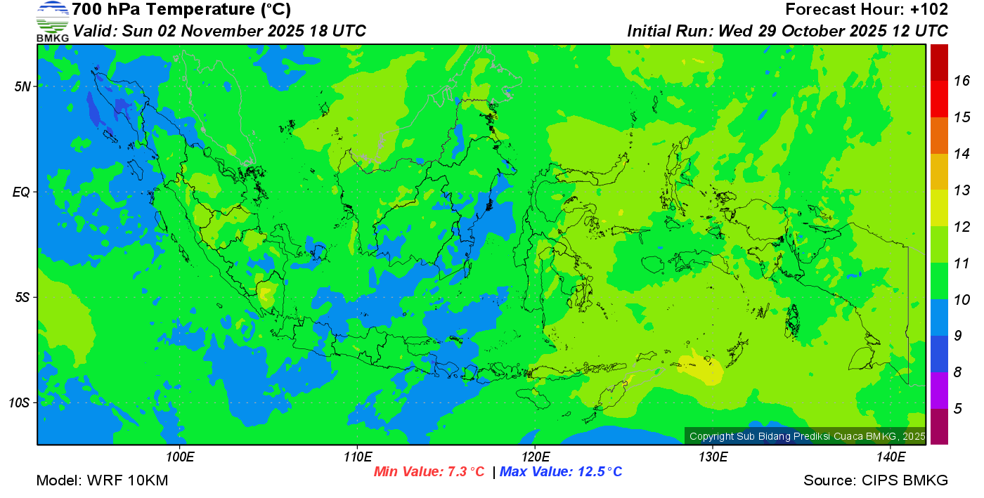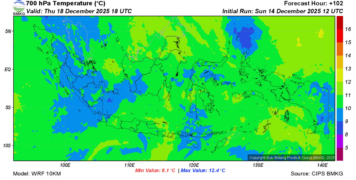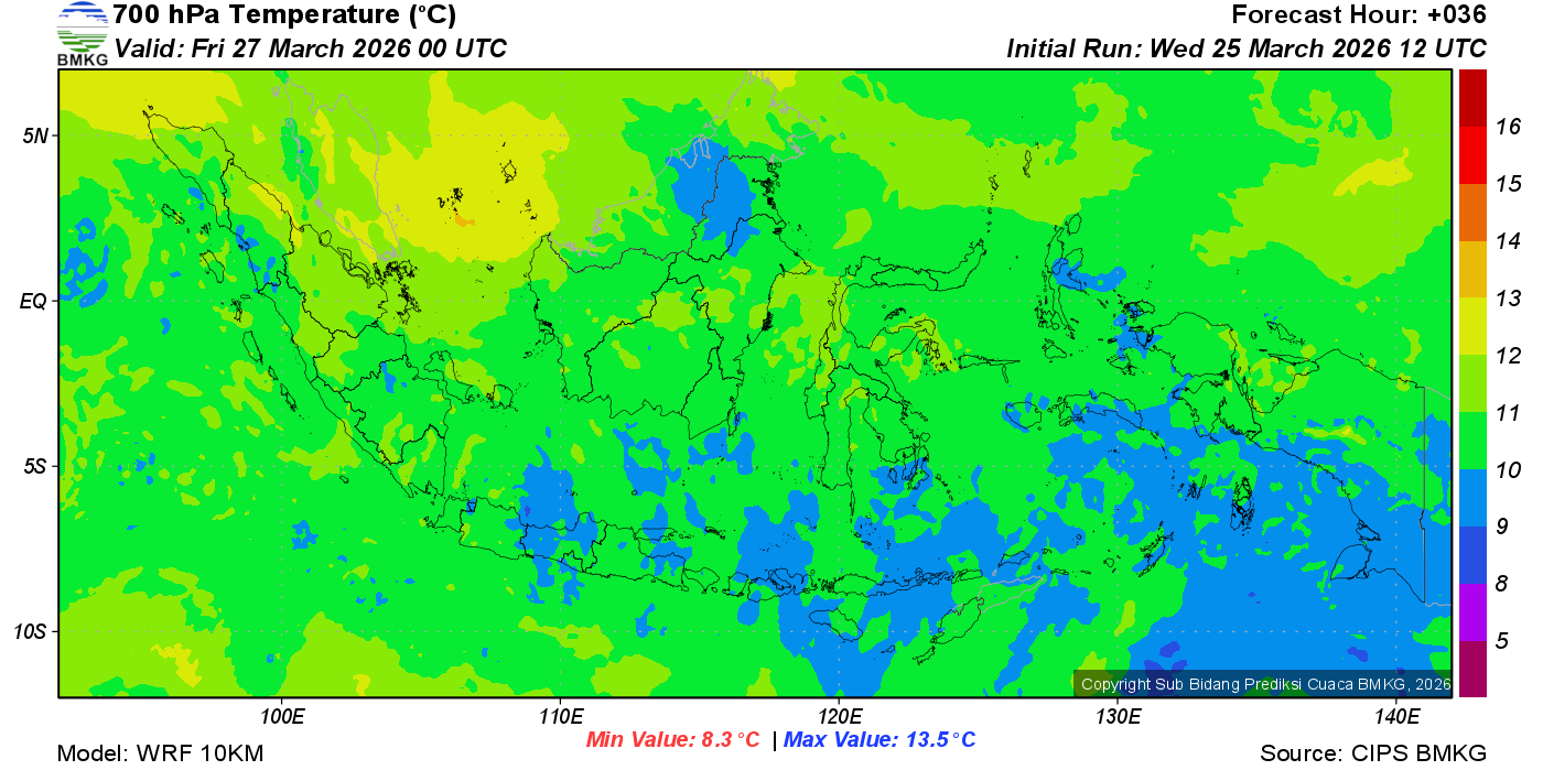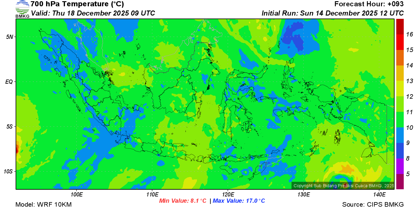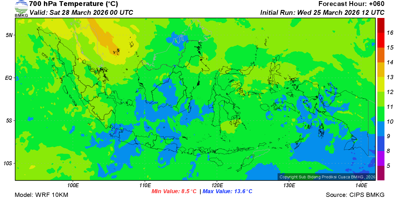 Prediksi Suhu Titik Embun 700 hPa NTT