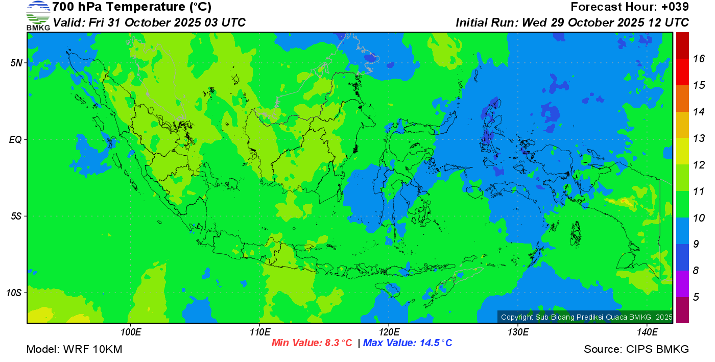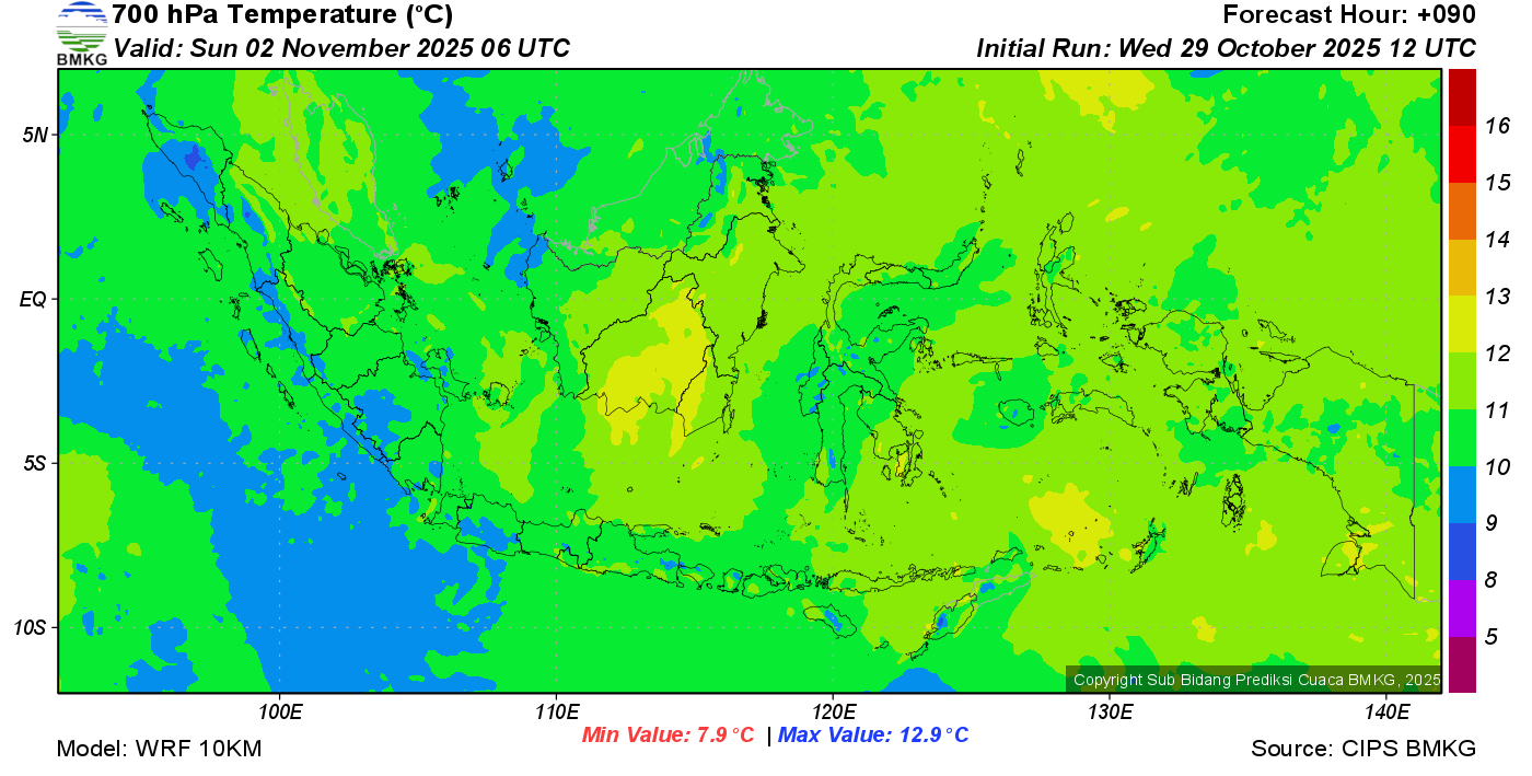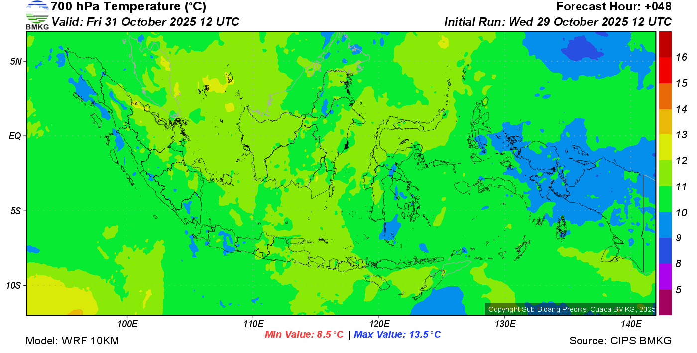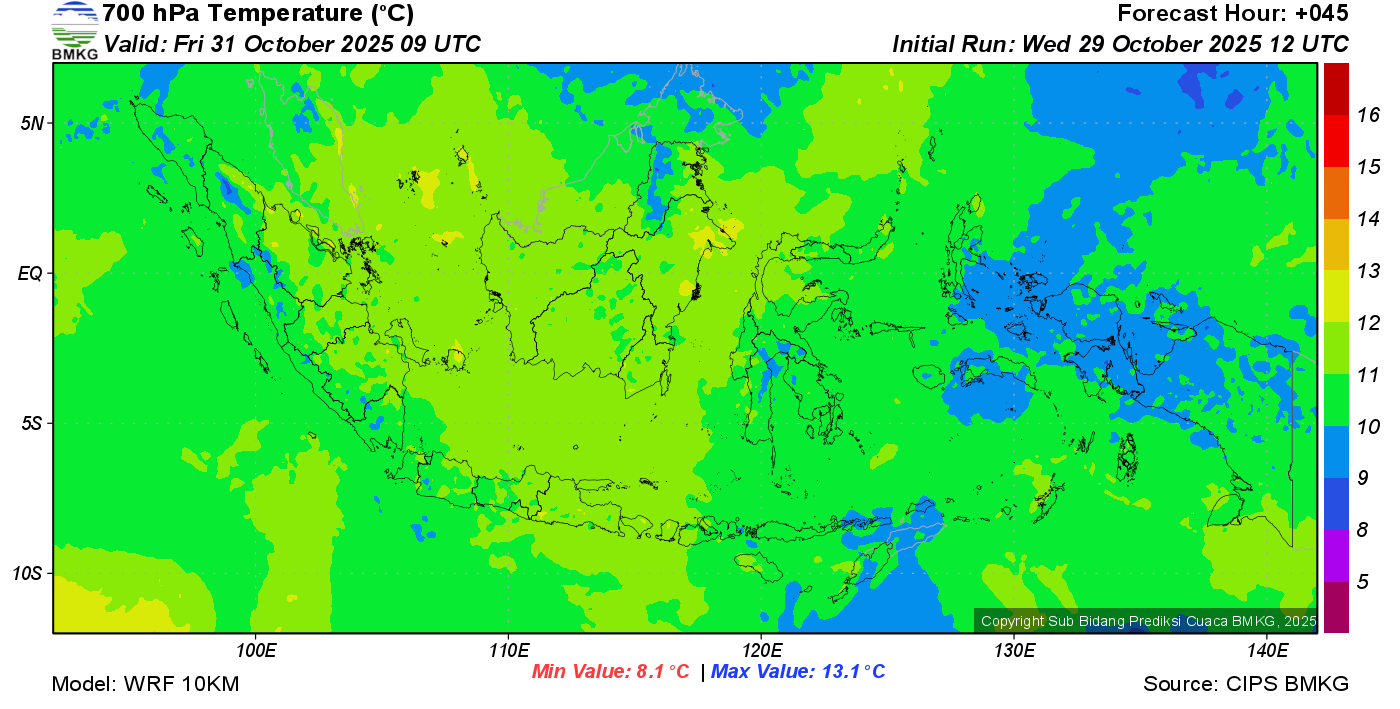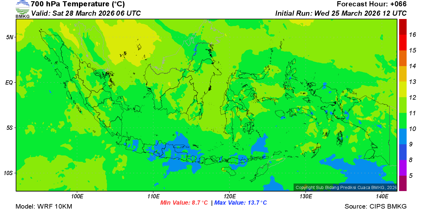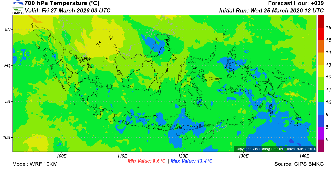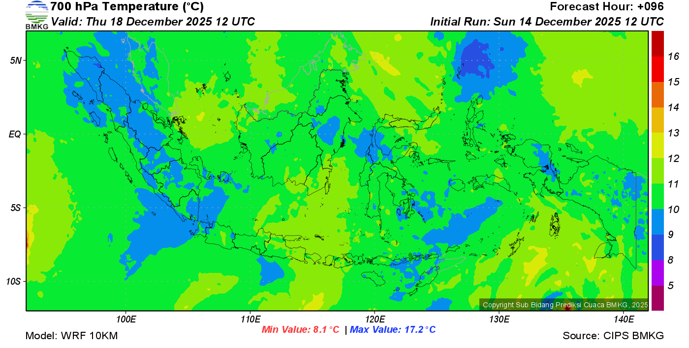 Prediksi Suhu Titik Embun 700 hPa NTT