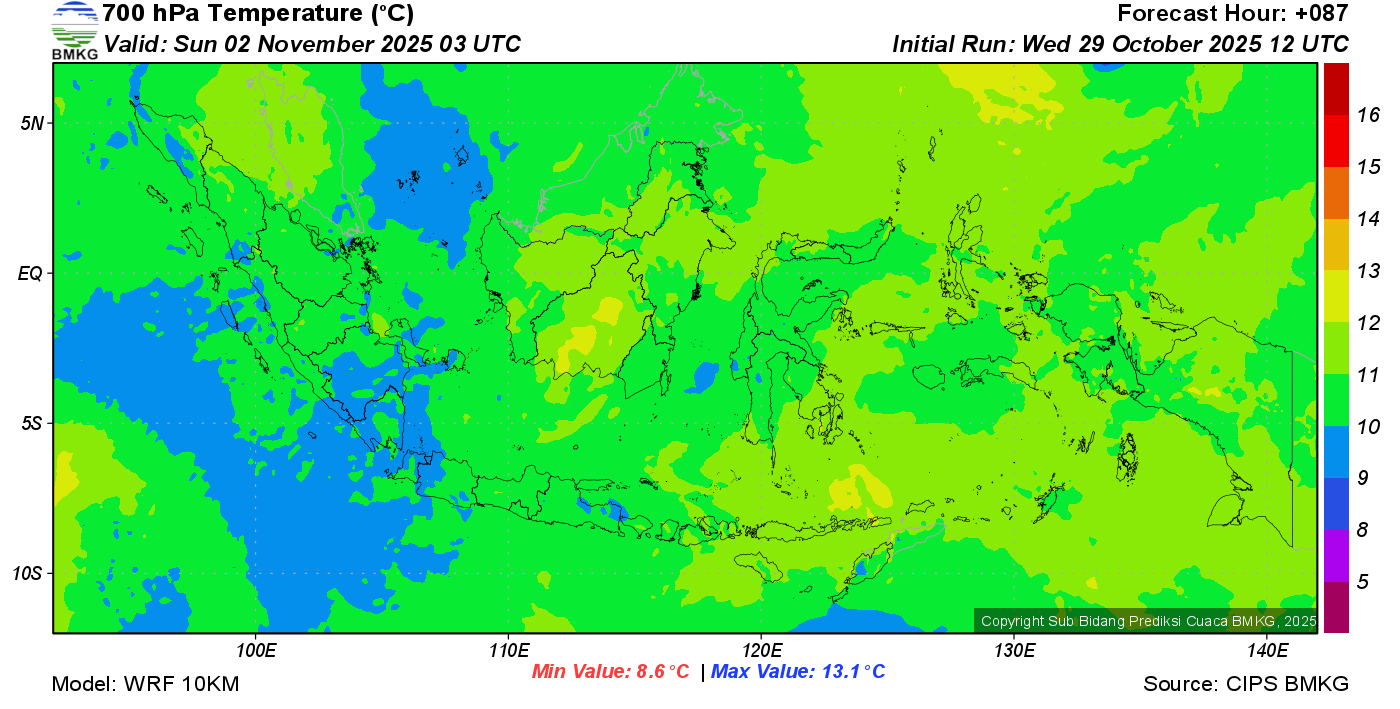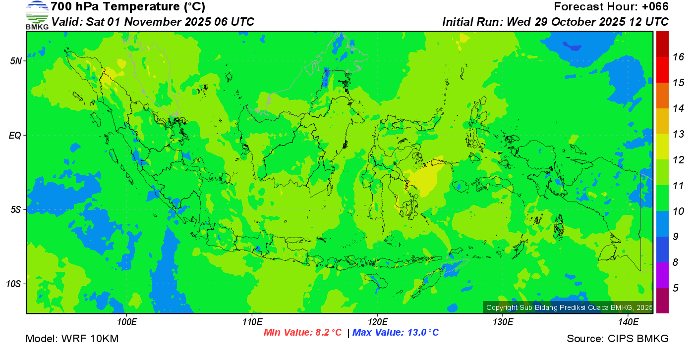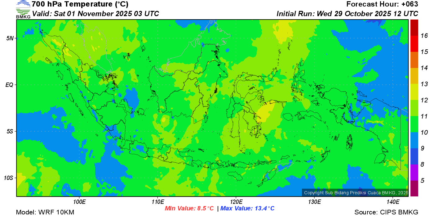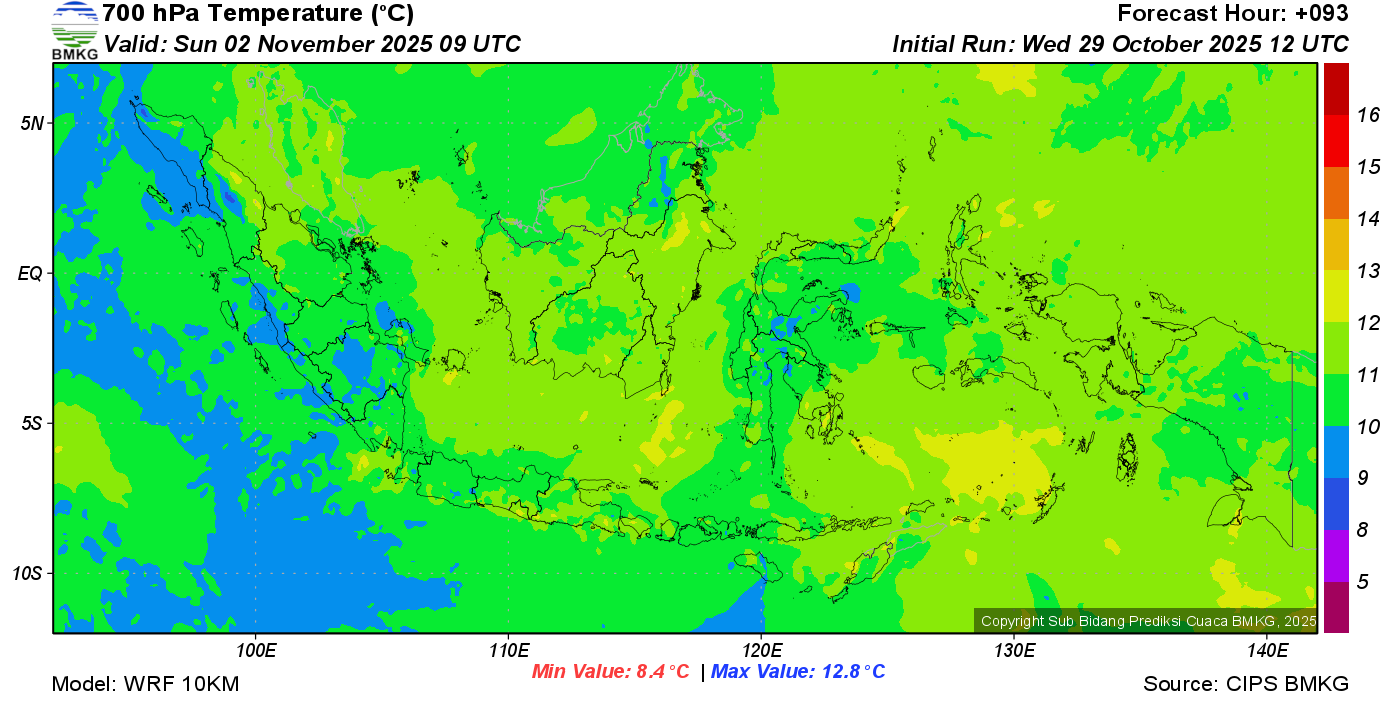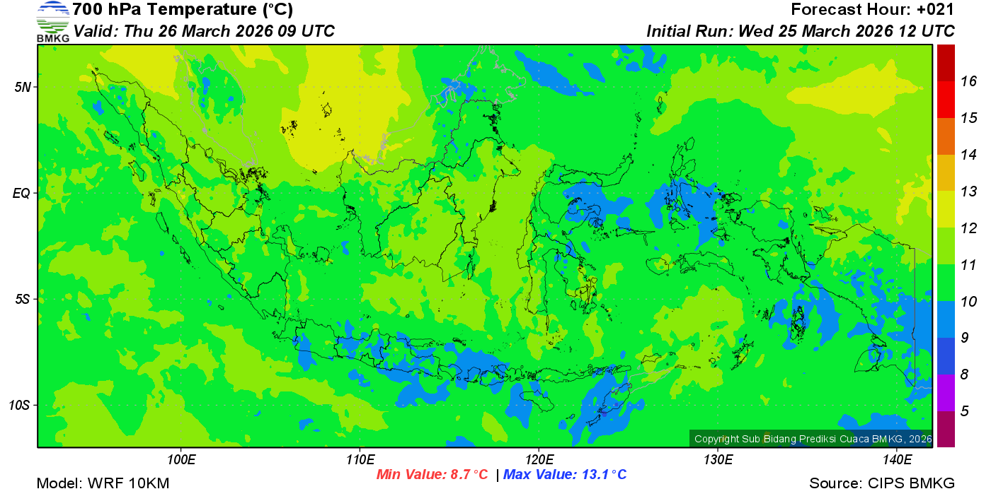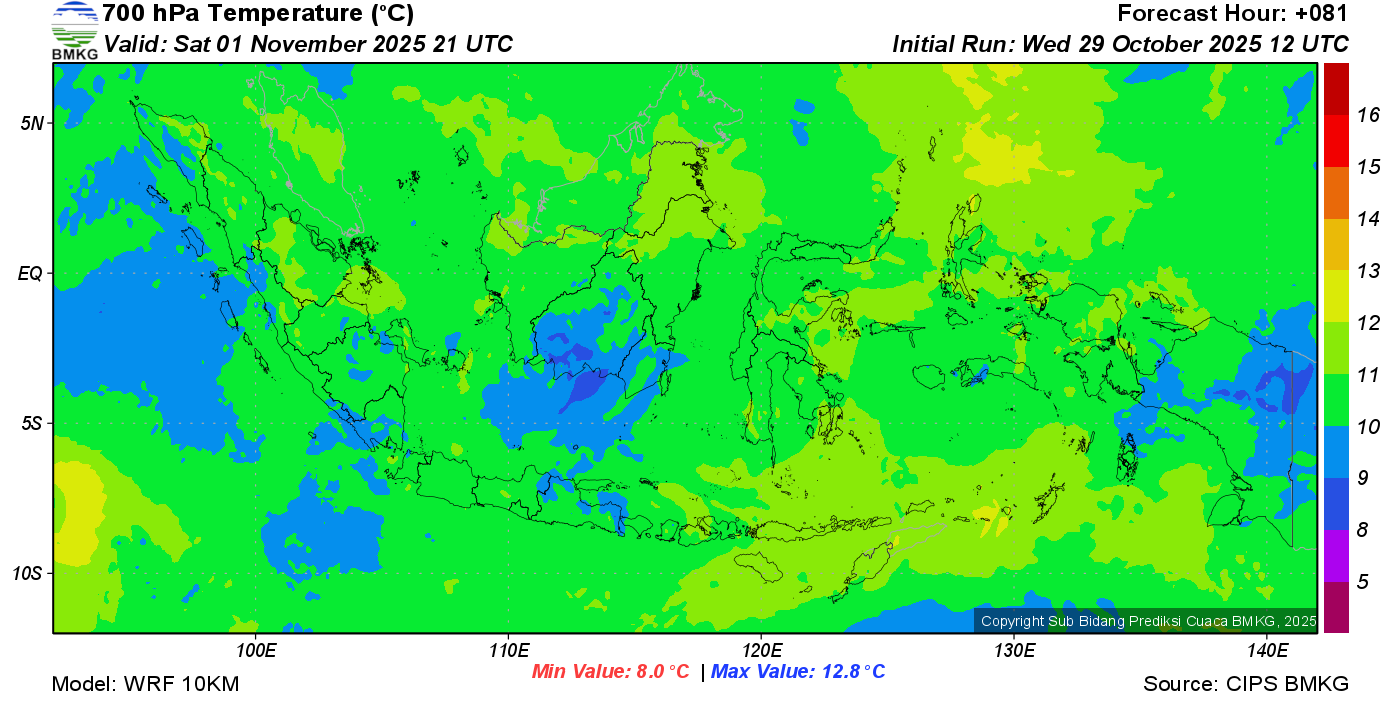 Prediksi Suhu Titik Embun 700 hPa NTT