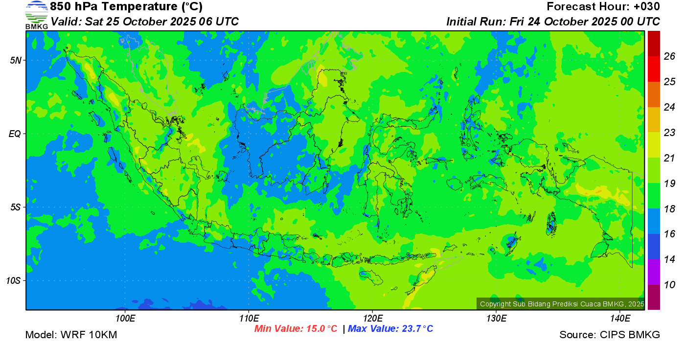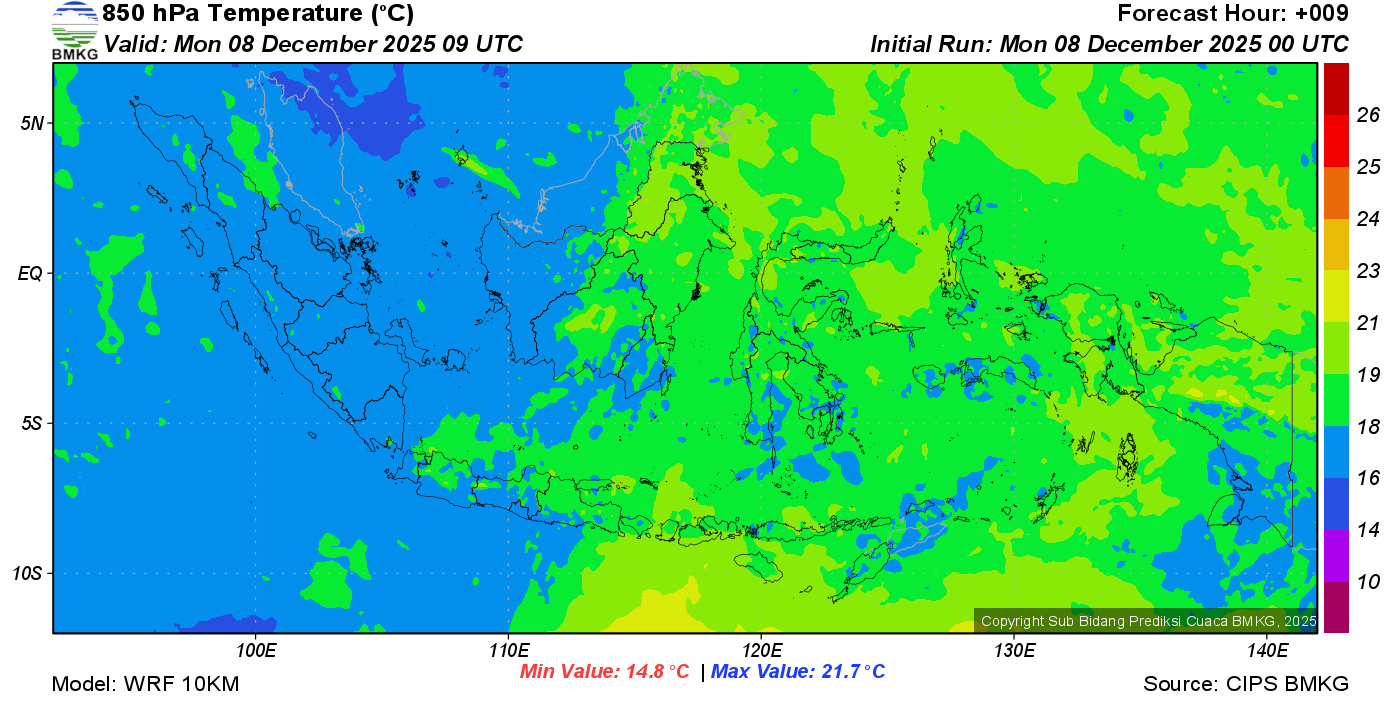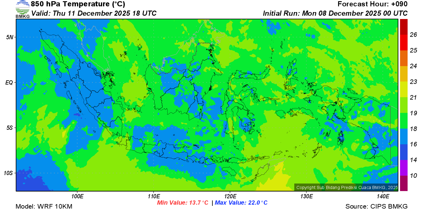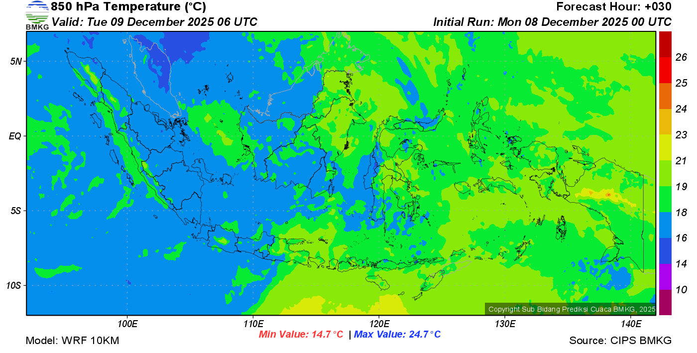 Prediksi Suhu Titik Embun 850 hPa NTT