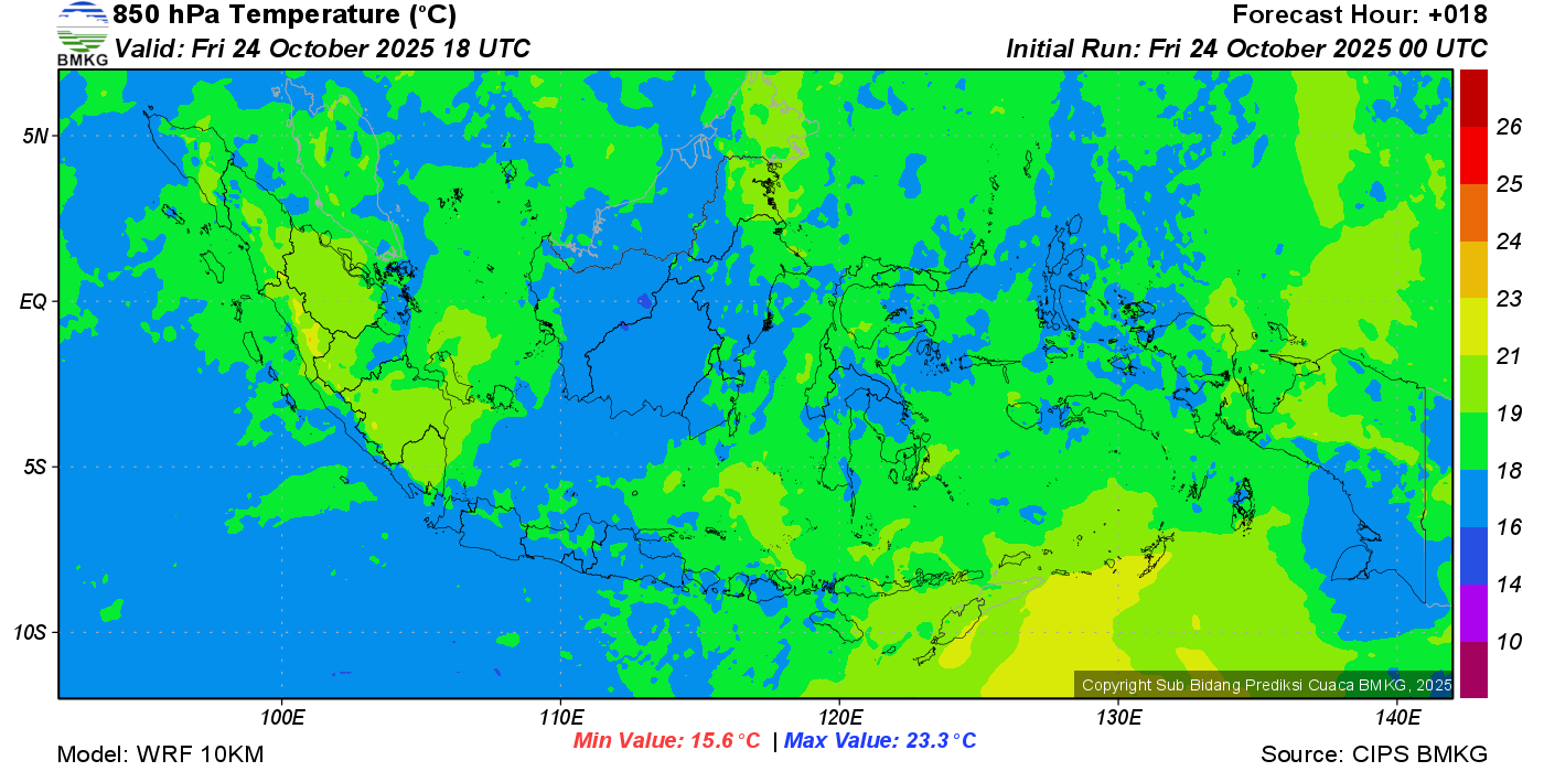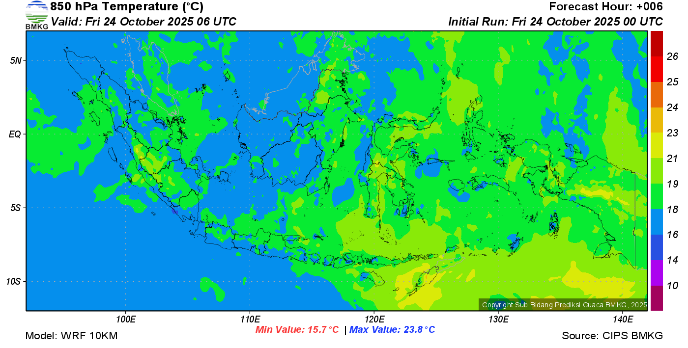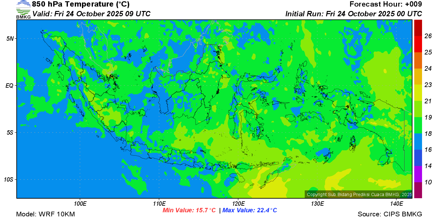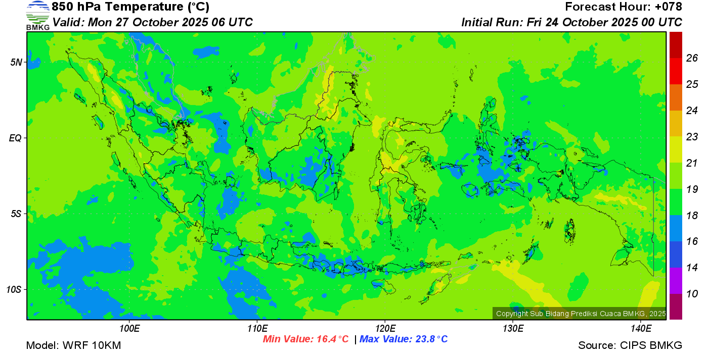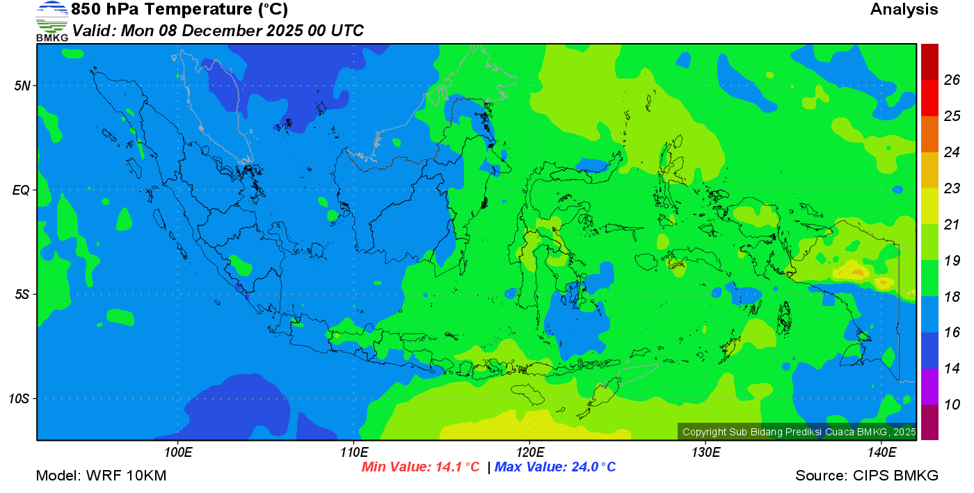 Prediksi Suhu Titik Embun 850 hPa NTT
