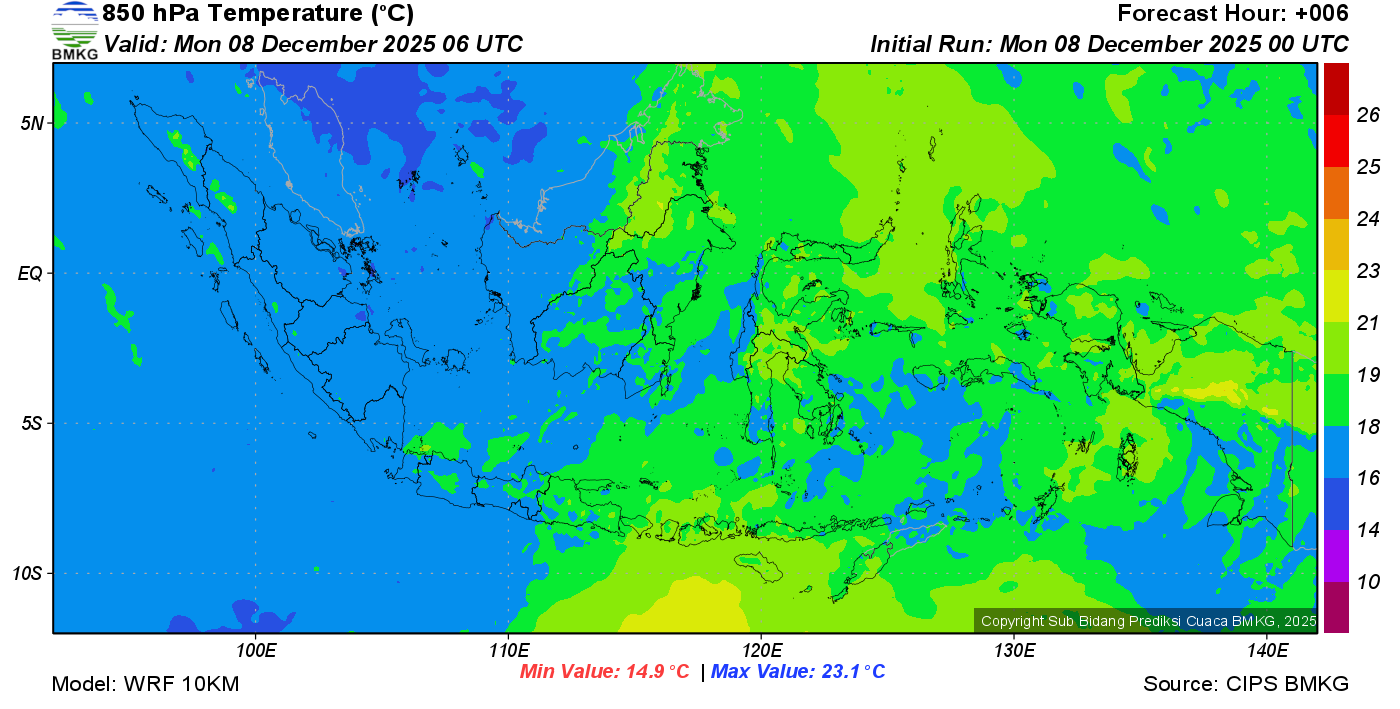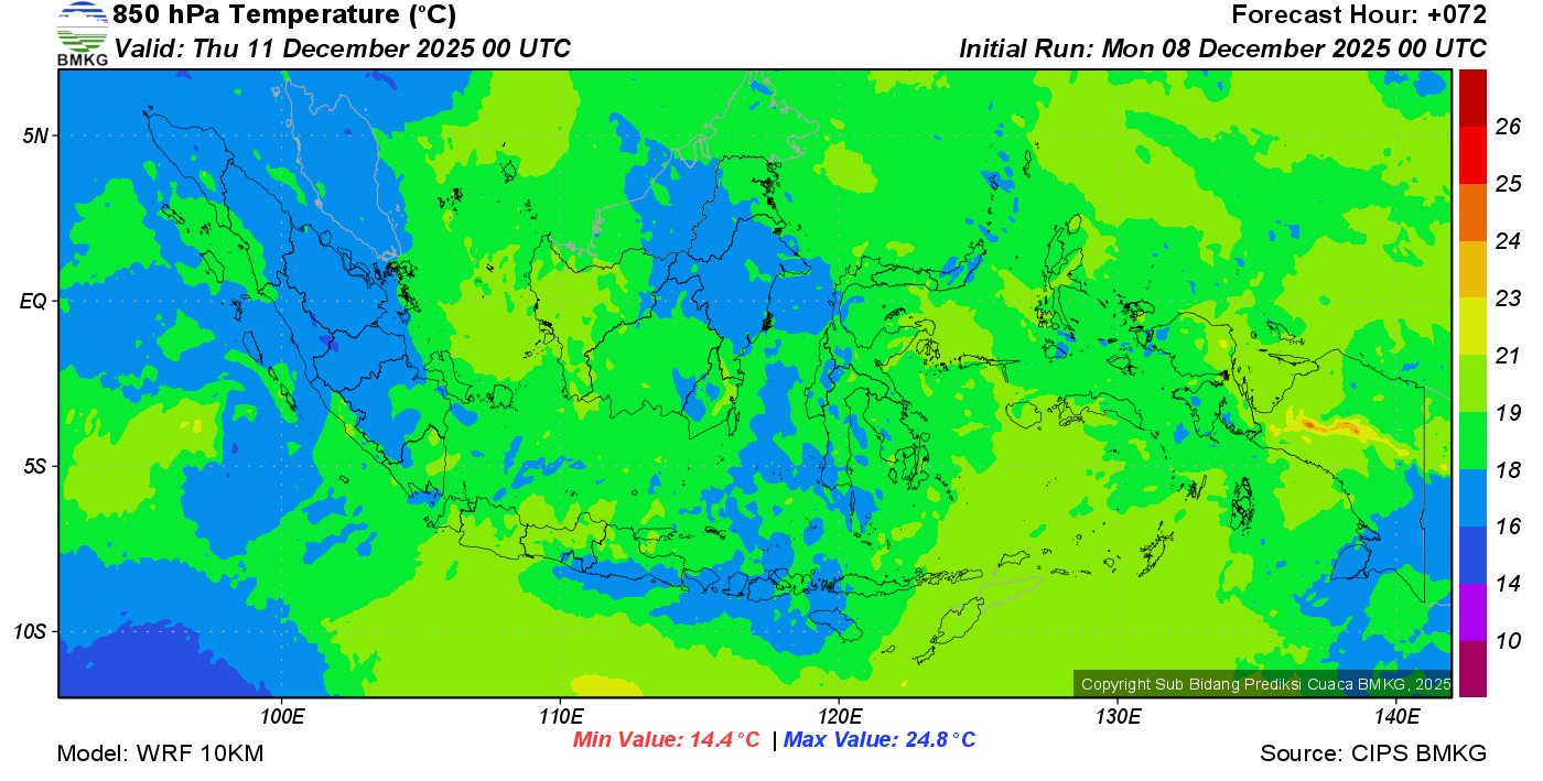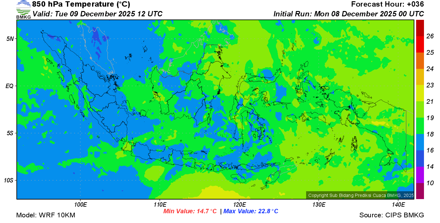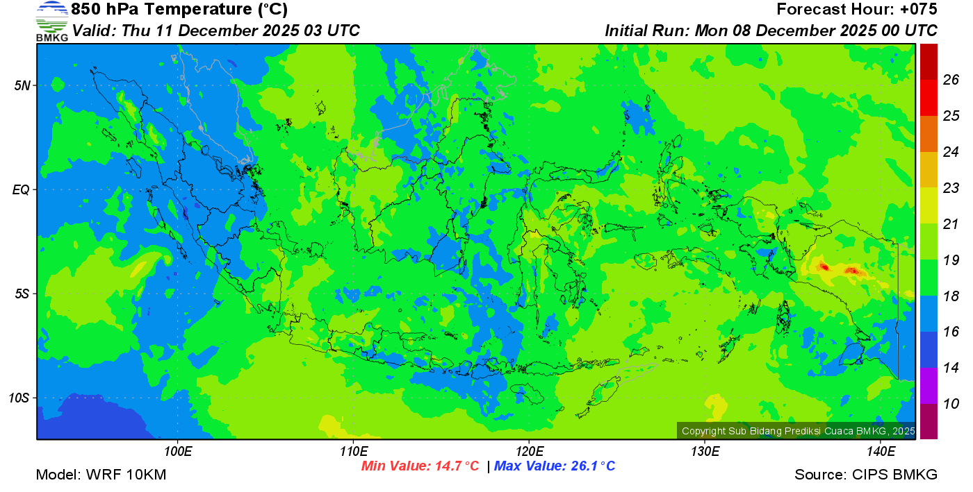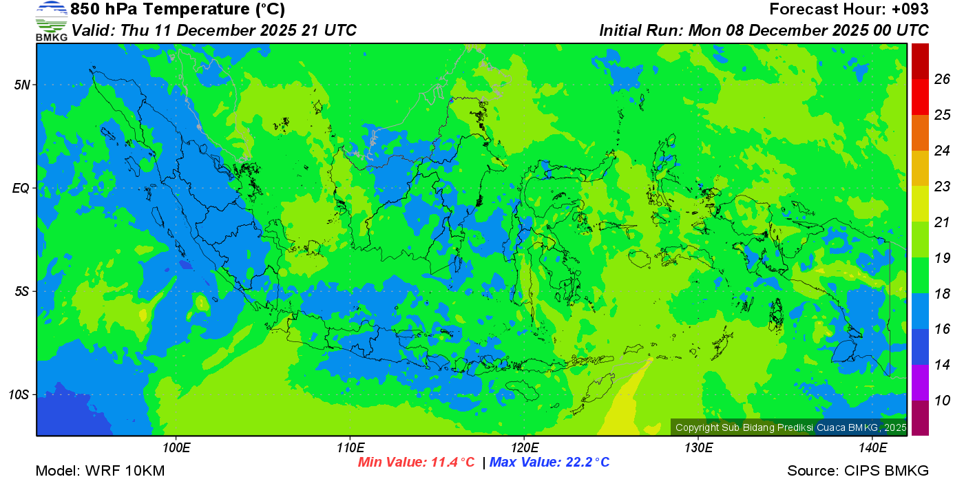 Prakiraan Angin Lapisan 850 Gunung Awu